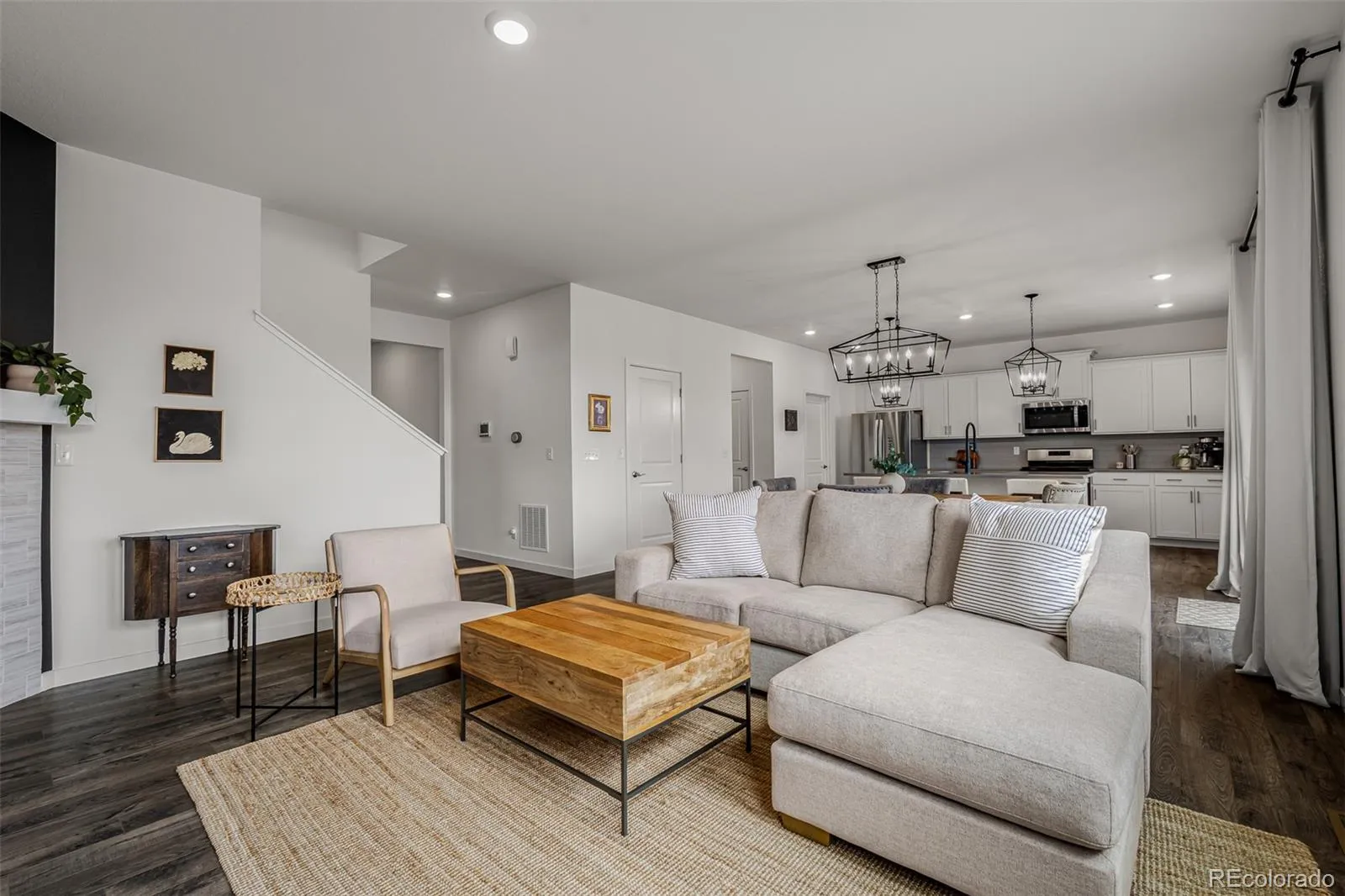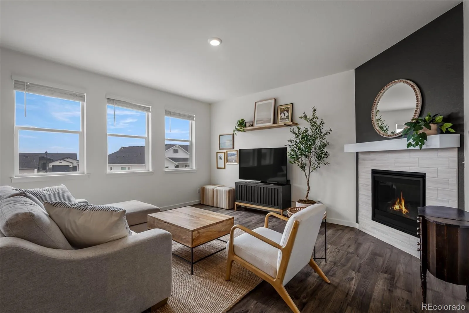 Welcome to this stunning two-story home in the desirable Bradley Ranch neighborhood, offering breathtaking views of Pikes Peak and access to top-rated District 20 schools. From the charming front porch, step inside to find an open-concept main level featuring LVP flooring throughout, seamlessly connecting the living, dining, and kitchen areas. The chef’s kitchen is complete with a gas cooktop, solid surface countertops, and ample cabinetry, flowing effortlessly into the spacious living room anchored by a cozy gas fireplace. A dedicated office provides the perfect work-from-home setup. Upstairs, enjoy a large loft area ideal for a second living space, playroom, or media room. The private primary suite boasts mountain views and a spa-like retreat, while secondary bedrooms offer comfort and flexibility. The unfinished basement provides a blank canvas for future expansion, whether you envision a home gym, theater, or additional bedrooms. Outdoor living is easy with an extended back patio, perfect for entertaining, a fully fenced yard, and plenty of room to relax and take in the Colorado sunshine. Additional highlights include a three-car garage, washer and dryer included, and thoughtful upgrades throughout. Don’t miss your chance to call this beautiful home yours—one of Colorado’s Finest.