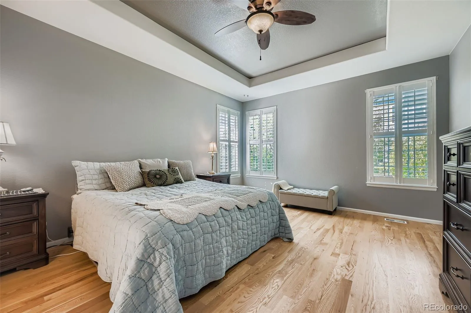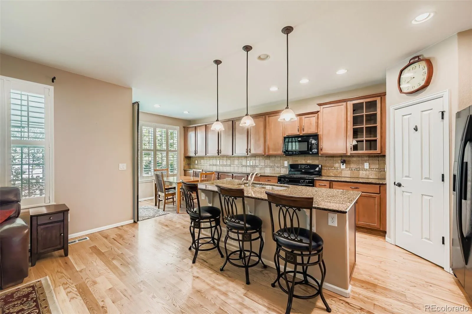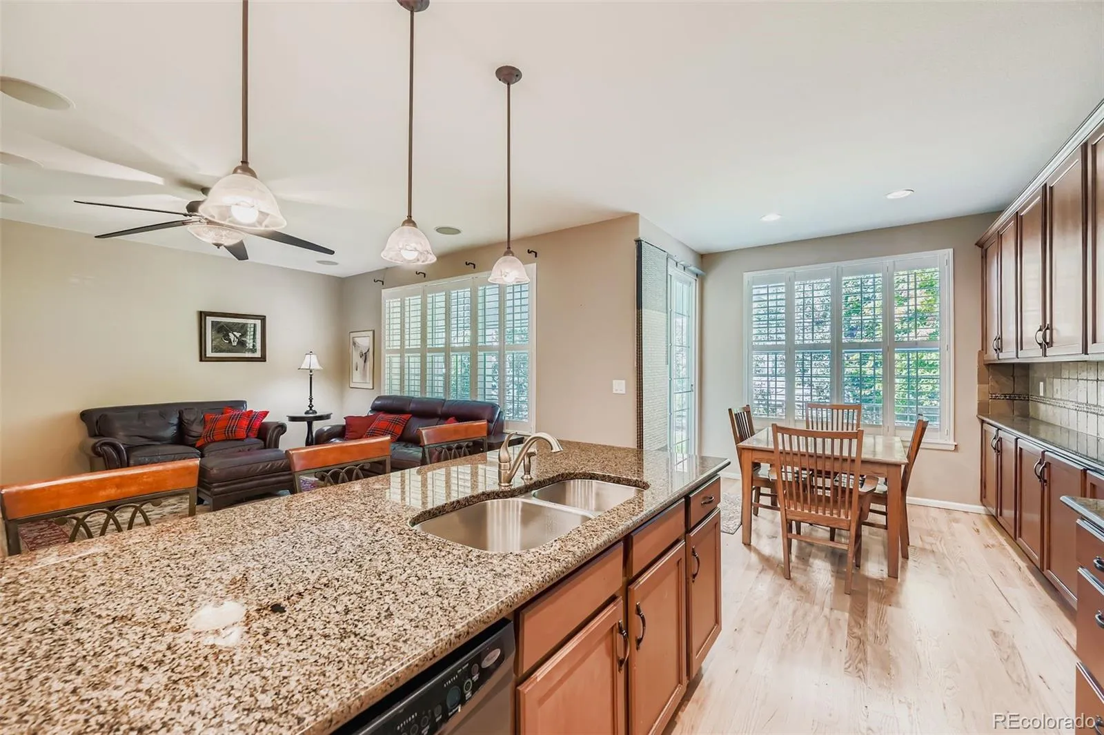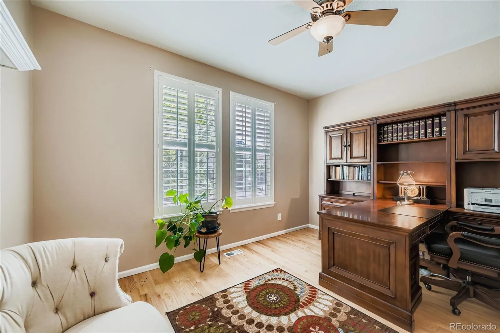 Beautifully maintained 3-bedroom, 3-bathroom, Primary Main Floor Bedroom home in Erie Commons Pool Community*An ideal blend of comfort, convenience, and community. Open-concept layout, the home is both functional and inviting. Private Main Floor Primary Suite Living with Private Upper Secondary Bedrooms & Loft area. Open Family/Kitchen area is a joy for entertaining or to cozy up to the gas fireplace, complete with Island & Breakfast nook, Direct entry to covered concrete patio, beautiful mature landscaping fully fenced. Main Floor Office/Craft Room/Sitting Area*Formal Dining Area*Real Hardwood Floors throughout Main floor*Beautiful Plantation Shutters throughout*Enjoy nearby access to the neighborhood park and pool, Erie Recreation Center, Erie Community Park, and local retail and dining options, in one of Erie’s most sought-after neighborhoods. New roof and gutters 2024*New Exterior Paint 2025. Full spacious unfinished basement provides ample opportunity for expanded living space—ideal for a home gym, recreation room, or additional bedrooms with Egress Windows. The surrounding neighborhood features mature tree-lined streets, enhancing the area’s charm and providing natural shade and beauty. With easy access to I-25, Highway 7, and E-470, commuting between Boulder, Denver, and surrounding areas*Must See Home*Pride of Ownership!