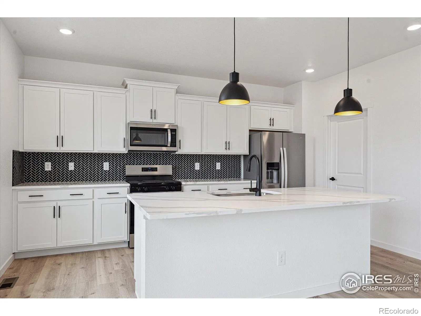 Welcome home to Hansen Farm in SE Fort Collins with no Metro District! The Bridgeport is a stunning two-story home boasting four spacious bedrooms and a huge upstairs loft along with 3 bathrooms! The main floor flex room is perfect for a study, formal dining room, or play area. The kitchen is a chef’s dream, featuring quartz countertops on spacious island, stainless steel gas appliances, and hood vent surrounded by sleek white cabinetry. Hosting events with a breeze in the open concept living. The home includes the front yard and backyard landscaping with irrigation, sod, and rock, as well as A/C, a tankless water heater, and the smart home package! Hansen Farm is conveniently located near all your shopping and recreational needs. Access to the Power Trail is coming soon and makes this home a must see! ***Estimated Delivery Date: November. Photos are representative and not of actual property***