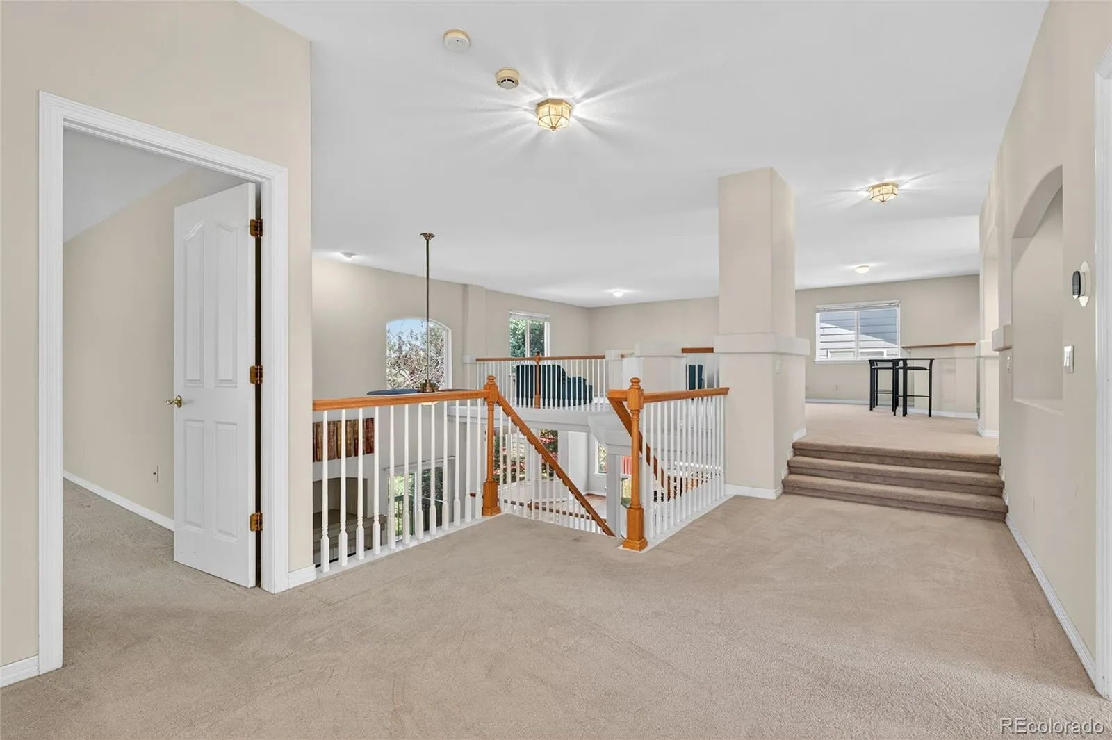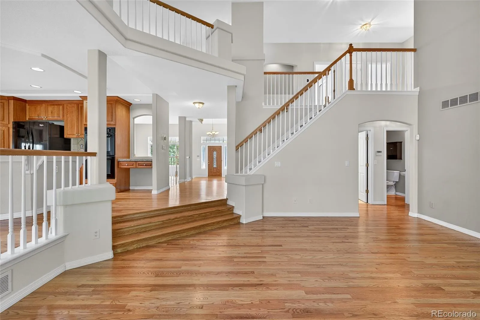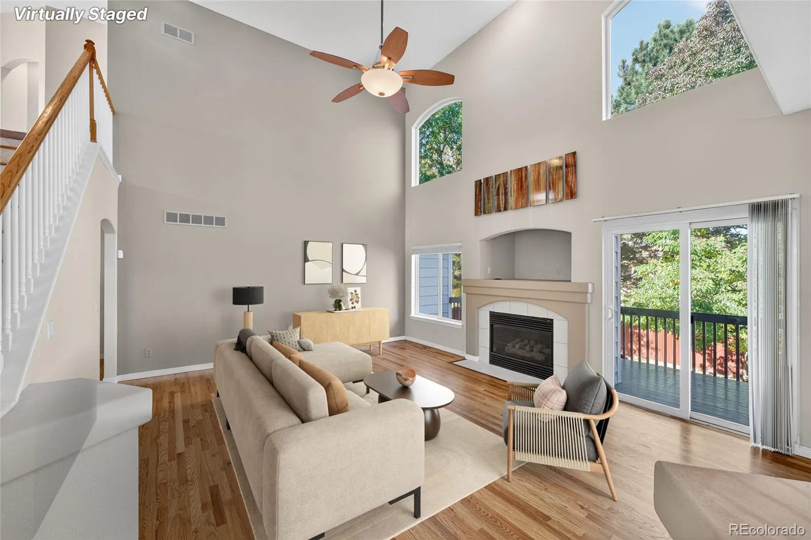 Beautiful Highlands Ranch gem offering incredible space and a prime location at the end of a quiet cul-de-sac. With over 5,400 finished square feet, this home features 4 bedrooms, 5 baths, and multiple formal and informal living areas designed for both comfort and entertaining. Soaring two-story ceilings fill the main level with natural light, highlighting the inviting living room, family room, and a chef’s eat-in kitchen with a gas cooktop, rich wood cabinetry and expansive countertops. Tao Smart Theromstats, one on the main level, and one upstairs, keep the temperature comfortable throughout. The main level primary retreat boasts a luxurious 5-piece en-suite, while the upper level includes a versatile loft. The finished basement adds even more living space with a media room, family room, home theatre or exercise room, a full bath, and a large storage area. Enjoy outdoor living in the spacious backyard surrounded by mature trees for added privacy. Recent updates include solar panels (2022), touchless kitchen faucet (2024), exterior paint (2025), deck stain (2025), and replaced washer and dryer (2022). Additional features include two gas fireplaces, two wet bars, energy-efficient solar, and a private, tree-lined yard. Walk to neighborhood schools, parks, and trails, while also enjoying Highlands Ranch’s highly regarded recreation centers, pools, pickleball courts, and amenities. This is an ideal blend of luxury, space, and community living in one of the most sought-after neighborhoods.