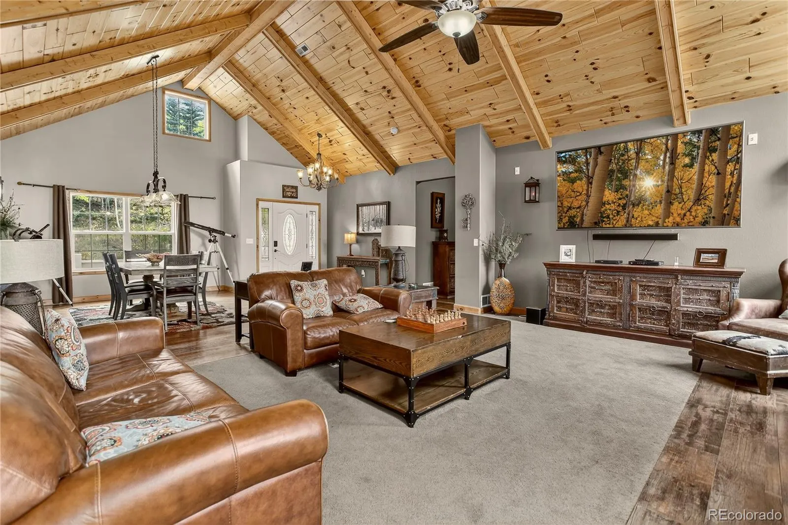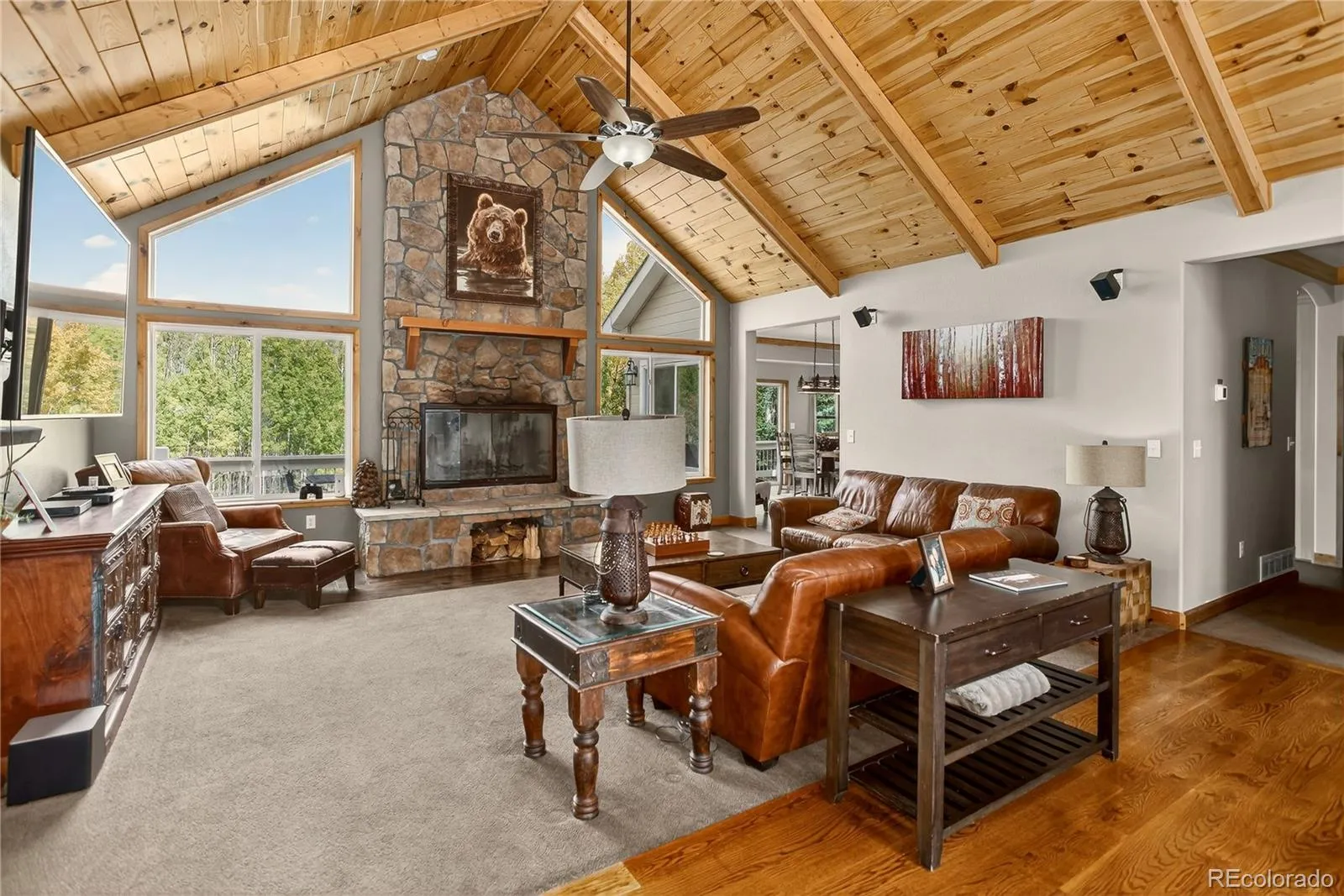 Gorgeous mountain home located in the sought after Silverheels Ranch subdivision. Sitting on 5.5 acres, this amazing setting offers breathtaking natural landscaping, Aspen trees & fire pit. Access to private, stocked fishing ponds and zoned for horse this property offers opportunity for additional custom barn structure or whatever your imagination brings. This beautiful furnished home boasts a cathedral ceiling, and a classic stone fireplace. Imagine preparing for holidays in this wonderful kitchen featuring stainless steel appliances, stone countertop, walk-in pantry, plenty of storage. Off the kitchen is the walkout deck, fresh Mountain air and starry nights awaits. Spacious master bedroom. Downstairs offering cool gaming area, secondary bedrooms with Jacke and Jill bathroom, an additional storage area and handy workshop. Whether your dream getaway home or short-term rental investment, located a quick 30 minutes’ drive Breckenridge ski resort and not too far from Denver makes this the perfect location.