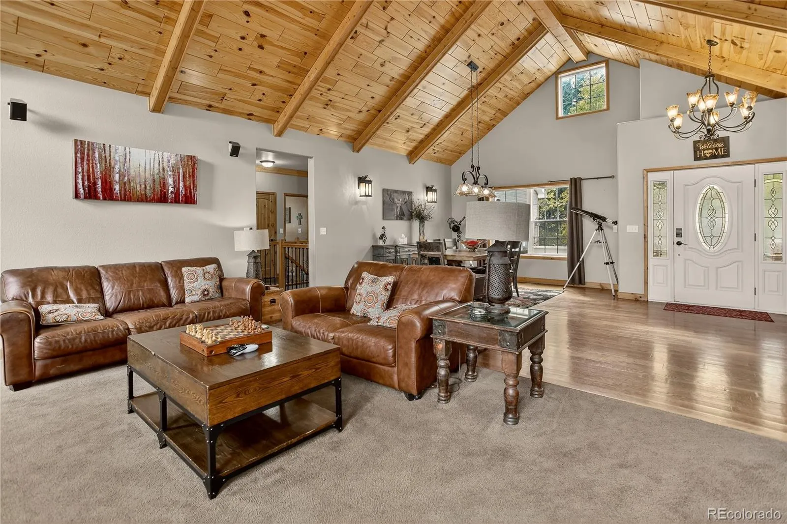 Gorgeous mountain home located in the sought after Silverheels Ranch subdivision. Sitting on 5.5 acres, this amazing setting offers breathtaking natural landscaping, Aspen trees & fire pit. Access to private, stocked fishing ponds and zoned for horse this property offers opportunity for additional custom barn structure or whatever your imagination brings. This beautiful furnished home boasts a cathedral ceiling, and a classic stone fireplace. Imagine preparing for holidays in this wonderful kitchen featuring stainless steel appliances, stone countertop, walk-in pantry, plenty of storage. Off the kitchen is the walkout deck, fresh Mountain air and starry nights awaits. Spacious master bedroom. Downstairs offering cool gaming area, secondary bedrooms with Jacke and Jill bathroom, an additional storage area and handy workshop. Whether your dream getaway home or short-term rental investment, located a quick 30 minutes’ drive Breckenridge ski resort and not too far from Denver makes this the perfect location.