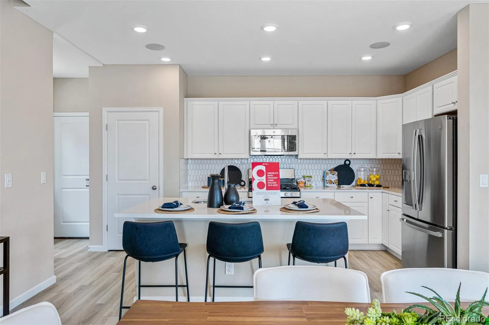 New Construction – Ready Now! Built by America’s Most Trusted Homebuilder. Welcome to the Aurora at 23752 E 33rd Place in The Aurora Highlands! Step inside and discover an open-concept design filled with natural light as the dining area flows into a spacious kitchen with a large island and a cozy great room, perfect for everyday living and entertaining. Upstairs, the private primary suite offers a relaxing retreat with a dual-sink vanity and a roomy shower. A central laundry room, a versatile loft, and two secondary bedrooms with generous closets and a shared bath complete the second floor. Welcome to The Aurora Highlands, a vibrant community in the heart of Aurora, CO, where you can explore scenic trails, enjoy an outdoor pool, parks, and an onsite school, plus future retail and dining options. With its own E-470 entrance, you are just 10 miles from DIA and close to downtown Denver and the Denver Tech Center. Whether you are enjoying your backyard or exploring 21 miles of trails, life here is all about connection and convenience. Additional highlights include: built-in appliance package, loft, and an additional sink in the second bathroom upstairs. Photos are for representative purposes only.