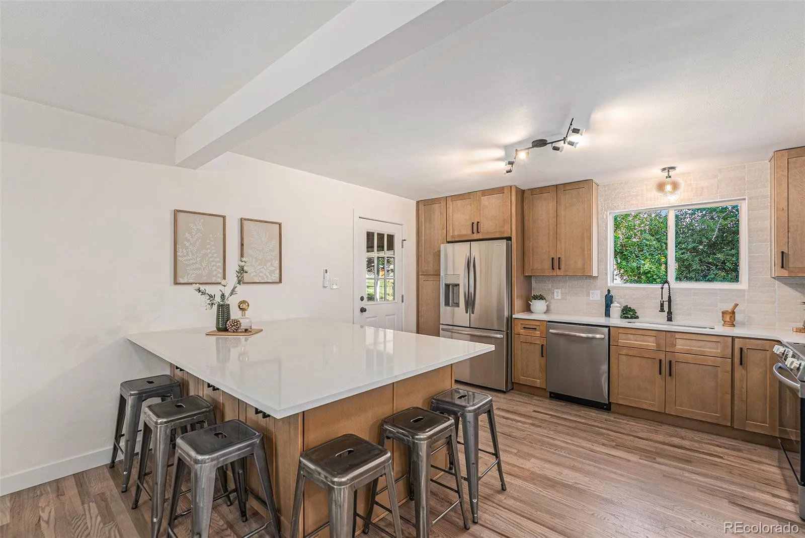 This beautifully renovated 6-bedroom, 3.5-bathroom home blends timeless character with modern updates in a prime Arvada location. Step into a bright, open layout with refinished original hardwood floors and a brand-new kitchen featuring quartz countertops, stainless steel appliances, and a large island separating the kitchen from the dining area. From the kitchen, walk out to a covered back patio overlooking a fully fenced backyard that’s a blank slate for your landscaping vision. Enjoy the cozy fireplace in the living area and the convenience of main-floor laundry.