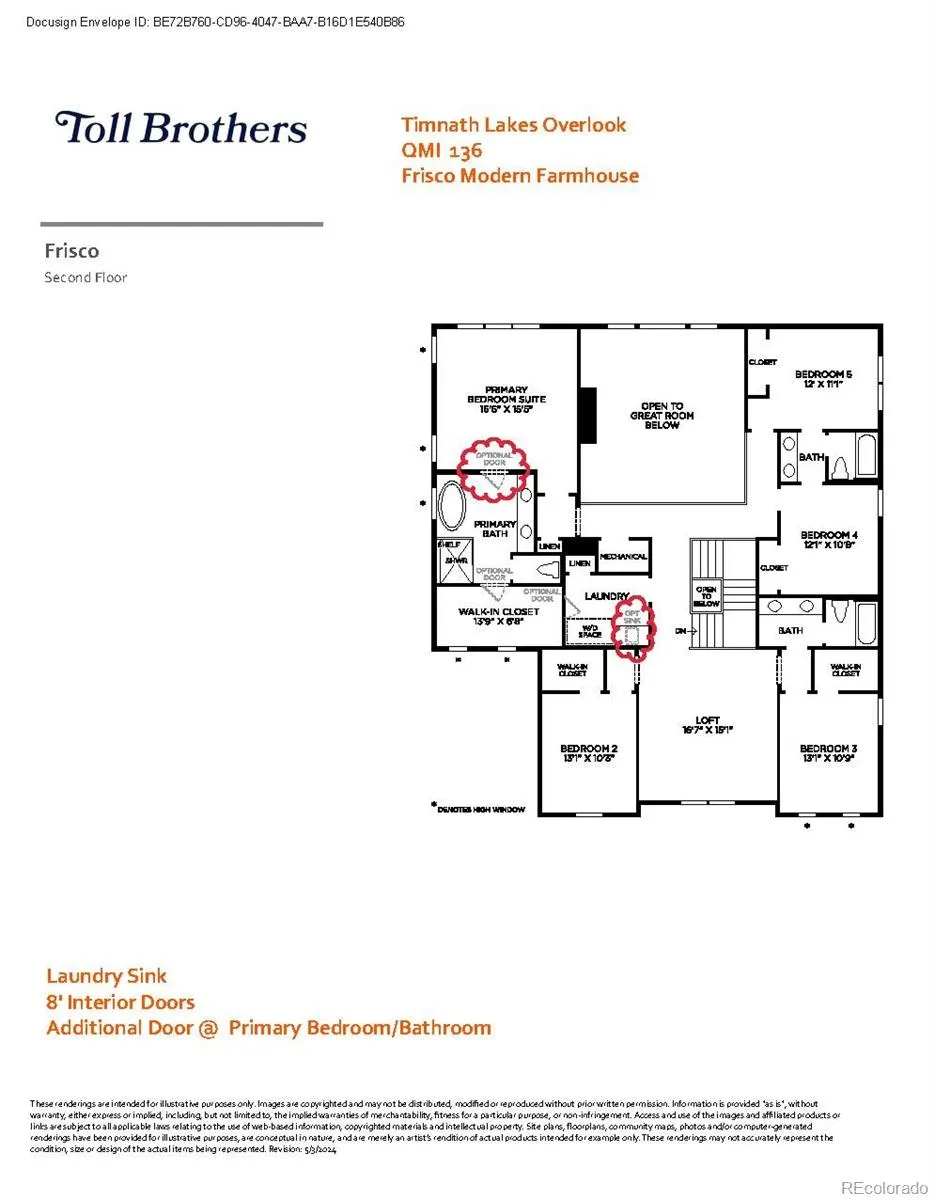 Brand New Toll Brothers Home – Frisco Modern Farmhouse – Ready January 2026. Room for everything and everyone! The open living floorplan allows for gathering larger groups, while a separate dining room, main floor flex room, second floor loft, and spacious unfinished basement offer auxiliary space for offices, workouts, hobbies and more. Luxurious designer finishes include gorgeous tile, countertops, Yorktowne solid-wood-door cabinetry, KitchenAid appliances, Shaw flooring, and Kohler fixtures. 8′ interior doors accentuate the 9′ ceilings. A main-floor guest suite with walk-in shower is convenient and practical. Large basement with 9’ ceilings offers storage or future finished potential. Near I-25, shopping, schools, Poudre- River trail, Timnath Lakes trails and paddleboarding/fishing, and walk to downtown Timnath! Come check out this amazing home and location today!