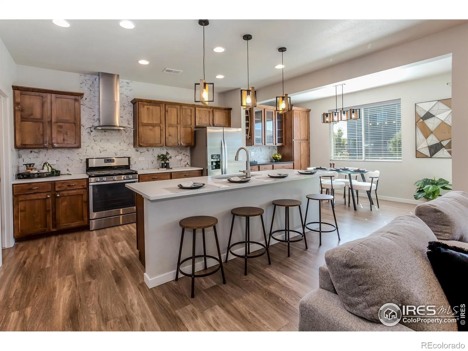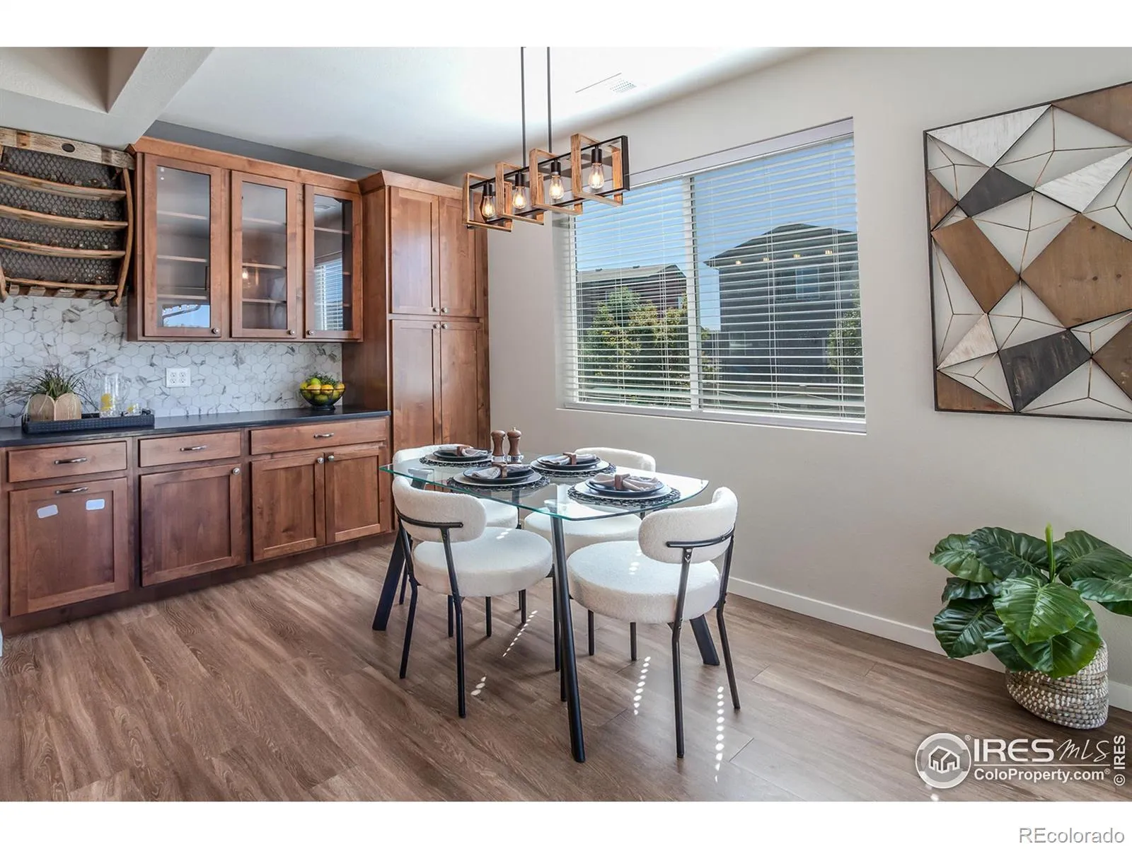 Only one owner and beautifully maintained, this “Yellowstone” is the most spacious & versatile floor plan in Timbervine, designed by local builder – Hartford Homes. With its open layout, modern finishes, & thoughtful details, it’s perfect for those who want a contemporary home in a quiet neighborhood – just 10 mins to Old Town & 5 mins from I-25. The exterior blends clean lines, stylish brickwork, large windows, & a welcoming front porch. Inside, a private office sits off the entry, followed by a half bath & a spacious living area anchored by a cozy gas fireplace. The living room flows seamlessly into the chef’s kitchen, featuring a 5-burner gas range with hood, in-island microwave, breakfast bar, walk-in pantry, & alder cabinets with upgraded pull-outs & hardware. The current owners elevated the design with all new tile that runs counter-to-ceiling tile behind the stove. The butler’s pantry is a stunning and super practical upgrade that extends into the dining room, complete with contrasting quartz counters, custom wine rack, & extra storage. The dining area comfortably seats 8+, opening out to a spacious covered back porch, back yard, & HOA maintained greenbelt – an ideal spot for morning coffee or evening gatherings. A mudroom / drop zone connects the oversized garage (576 sq ft) to the main floor. An upgraded open rail staircase leads you upstairs to a loft that serves as a second TV/game room or hangout space – separating the private primary suite from the guest rooms. The roomy primary retreat features a huge walk-in closet, custom sliding barn door, walk-in shower, & dual sinks with ample counter space. Two generously sized guest rooms share a full bath, while the fabulously updated laundry room adds storage and folding stations. New carpet, upgraded lighting throughout, & spaces designed for both entertaining & everyday comfort – this home combines style, function, & convenience. Low HOA & no Metro Tax. Click on video/virtual tour for great guided tour.
