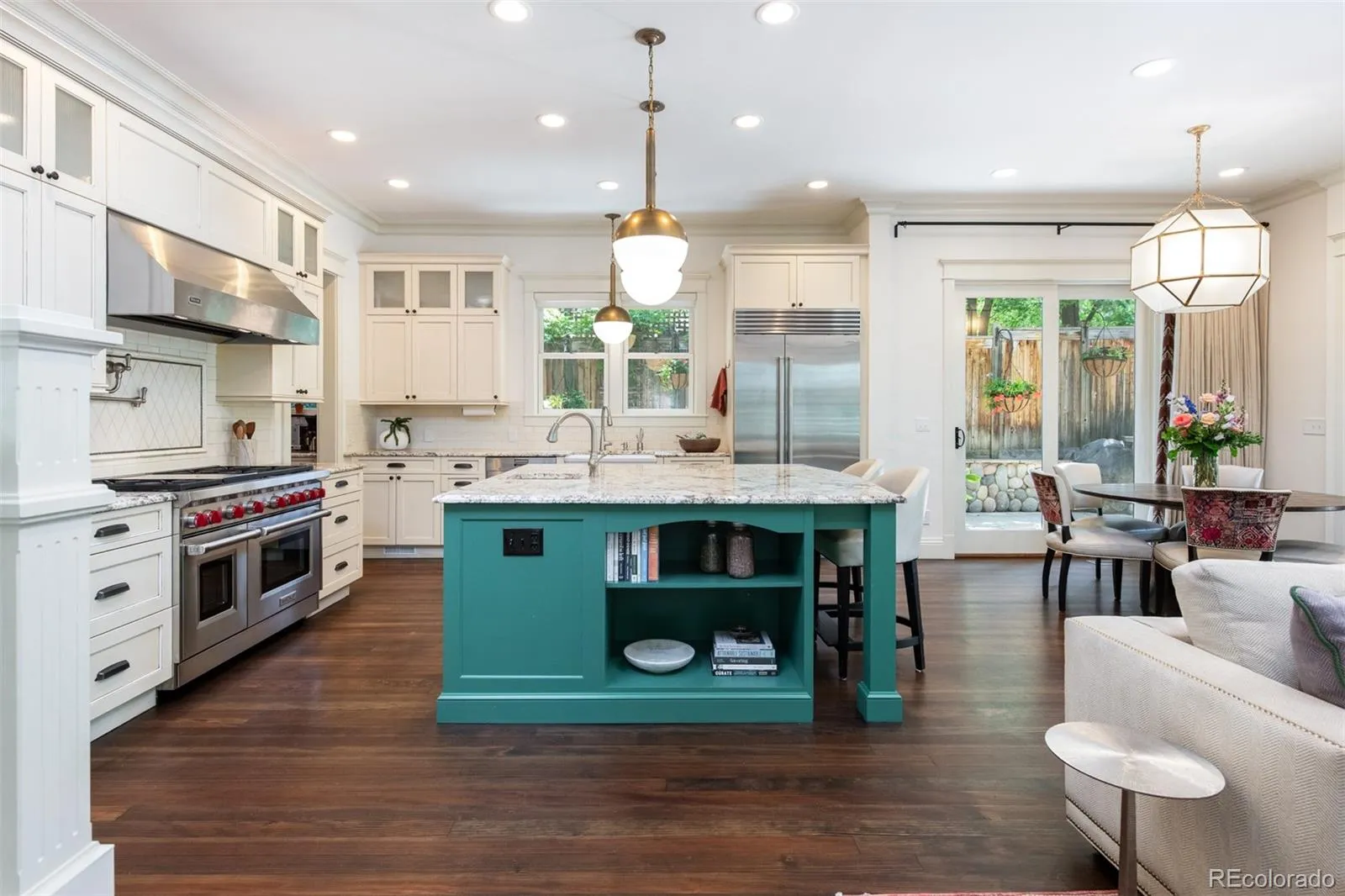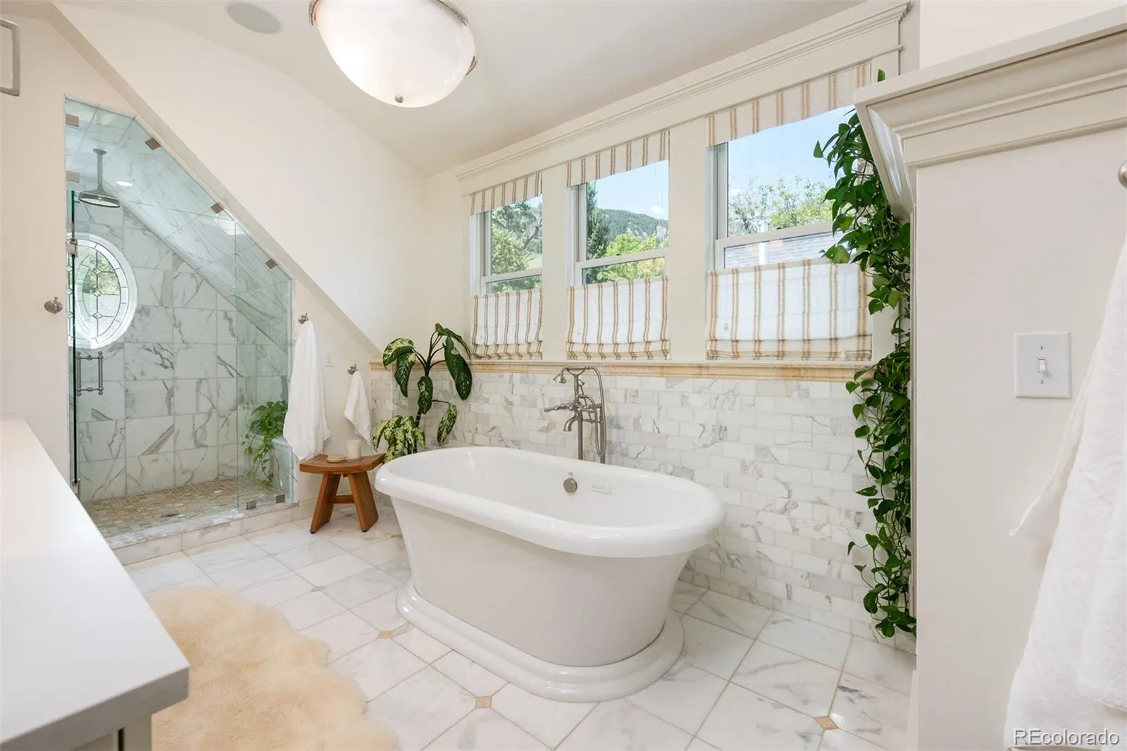 Located on one of Boulder’s most iconic, tree-lined streets, this architecturally rich residence effortlessly blends timeless charm with elevated modern design. Thoughtfully curated and beautifully finished, the main level features sustainably refinished hardwood floors, soaring ceilings, and a striking gourmet kitchen outfitted with a new Sub-Zero refrigerator, Wolf range, and a marble-topped island ideal for gatherings. Refined living and dining spaces exude warmth and character with custom built-ins, designer lighting, and multiple fireplaces.Upstairs, the vaulted primary suite offers a true retreat, complete with its own fireplace, a private balcony, and sweeping Flatiron views. Two additional bedrooms are filled with light and comfort, each enjoying access to a beautifully appointed bath-one en suite, the other just a few steps away. A whimsical “secret” bonus room adds charm and flexibility for imaginative play or clever storage.The lower level expands the living experience with impressive ceiling height, a bright media room, custom shelving, glass-enclosed home office, and a private guest suite with a spa-like bath.Outdoors, the magic continues. The professionally landscaped backyard is a lush and tranquil sanctuary with a newly paved patio, serene waterfall feature, plumbed-in BBQ, and multiple entertaining spaces-plus a storybook two-story playhouse with sandbox and a full sprinkler system for year-round vibrancy. A detached cottage with vaulted ceilings, a kitchenette, and powder room offers flexible bonus space-perfect for a gym, office, studio, guest quarters or teen hangout-while the detached garage boasts epoxy floors and built-in storage. Just moments from top cafes, award-winning restaurants, boutique shopping, Chautauqua Park, and endless hiking trails, this is quintessential Boulder living at its finest.