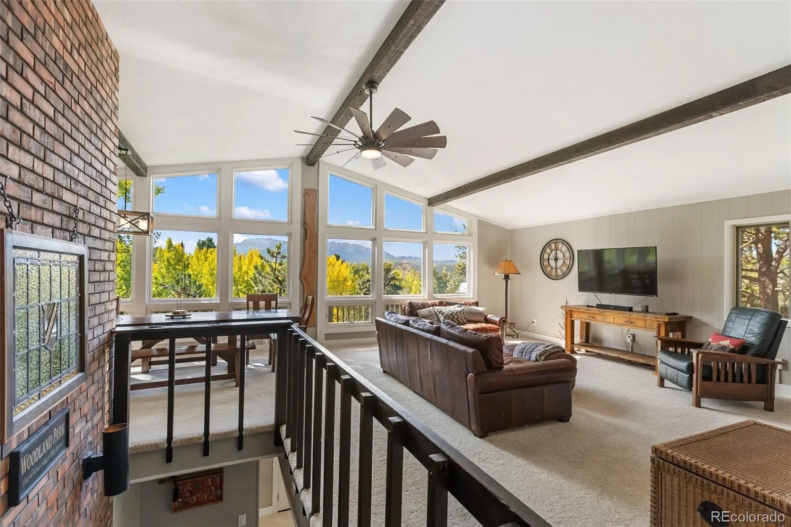 Welcome to this spacious and functional raised ranch home in the city of Woodland Park, perfectly positioned to capture one of the most breathtaking views of Pikes Peak and the Front Range. Situated on a quiet, private 1.11-acre lot (including adjacent 1/2 acre parcel), this 5-bedroom, 3-bath home offers a rare blend of space, comfort, and natural beauty—ideal as a full-time residence or peaceful mountain retreat. The vaulted great room and dining room on the main level are filled with natural light and frames one of the most picturesque Pikes Peak views in the area—especially now as the golden fall colors mingle with deep green evergreens. Enjoy the scenery from the great room wall-of-windows, full-length back deck that spans the entire home, and a walk-out from the master suite, which features a private bath and direct access to the outdoors. The open kitchen includes a breakfast nook, ideal for enjoying your morning coffee with the stunning mountain views. Two cozy wood-burning fireplaces—one on each level—create a warm and inviting atmosphere throughout the seasons. The fully finished lower level offers a large family room and wet bar, additional bedrooms, and plenty of space to relax or entertain. Whether you’re looking for a full-time residence or a serene mountain hideaway, this home offers the best of both worlds. Enjoy quiet evenings fireside, or sip morning coffee overlooking the mountain beauty, this home delivers the best of mountain living—just minutes from all the amenities of Woodland Park. Don’t miss your chance to own this one-of-a-kind property with unmatched views and timeless charm.