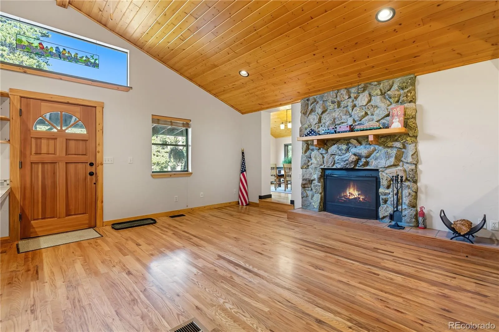 This gorgeous home, where the pride of ownership is evident throughout, offers two separate living quarters with a beautiful custom kitchen on the main level with stainless steel appliances, stone counters & solid wood cabinetry, where the family room with a wood-burning stove makes this space absolutely perfect for quiet winter evenings. A non-conforming bedroom and a freshly updated bathroom on the main floor offer additional convenience and versatility. Upper level features timber finished vaulted ceilings, lots of natural light, double pane wooden windows, custom solid wood kitchen cabinets with lots of built-in organizers, stainless steel appliances, spacious island is sized for some real cooking after a day outdoors, while bedrooms offer calm privacy. Newly updated dining room & stunning living room create such an incredible entertainment space to celebrate the holidays. Fire pit behind the house is great for star gazing with a glass of wine. The studio shed on the expansive wrap around deck provides a great additional space for your creative hobbies or storage. There is car garage door, but it can fit up to 4 cars & has a workshop for true car enthusiasts. This beautiful mountain retreat is located in the desirable St. Mary’s Glacier community, just around the corner from a spectacular lake, with glacier views and alpine trails. Wake up to the cool air among evergreens, enjoy a cup of coffee on your lovely front porch, then wander down to the lake for a quiet paddle or fishing. If you crave a change of pace – historic Idaho Springs awaits within a short drive into town, with it’s local breweries, coffee shops, hearty eats & boutiques. If you’ve been looking for a true mountain escape – this gorgeous mountain home delivers the Colorado lifestyle at its very best. Do reach out for a tour before this rare gem is gone!