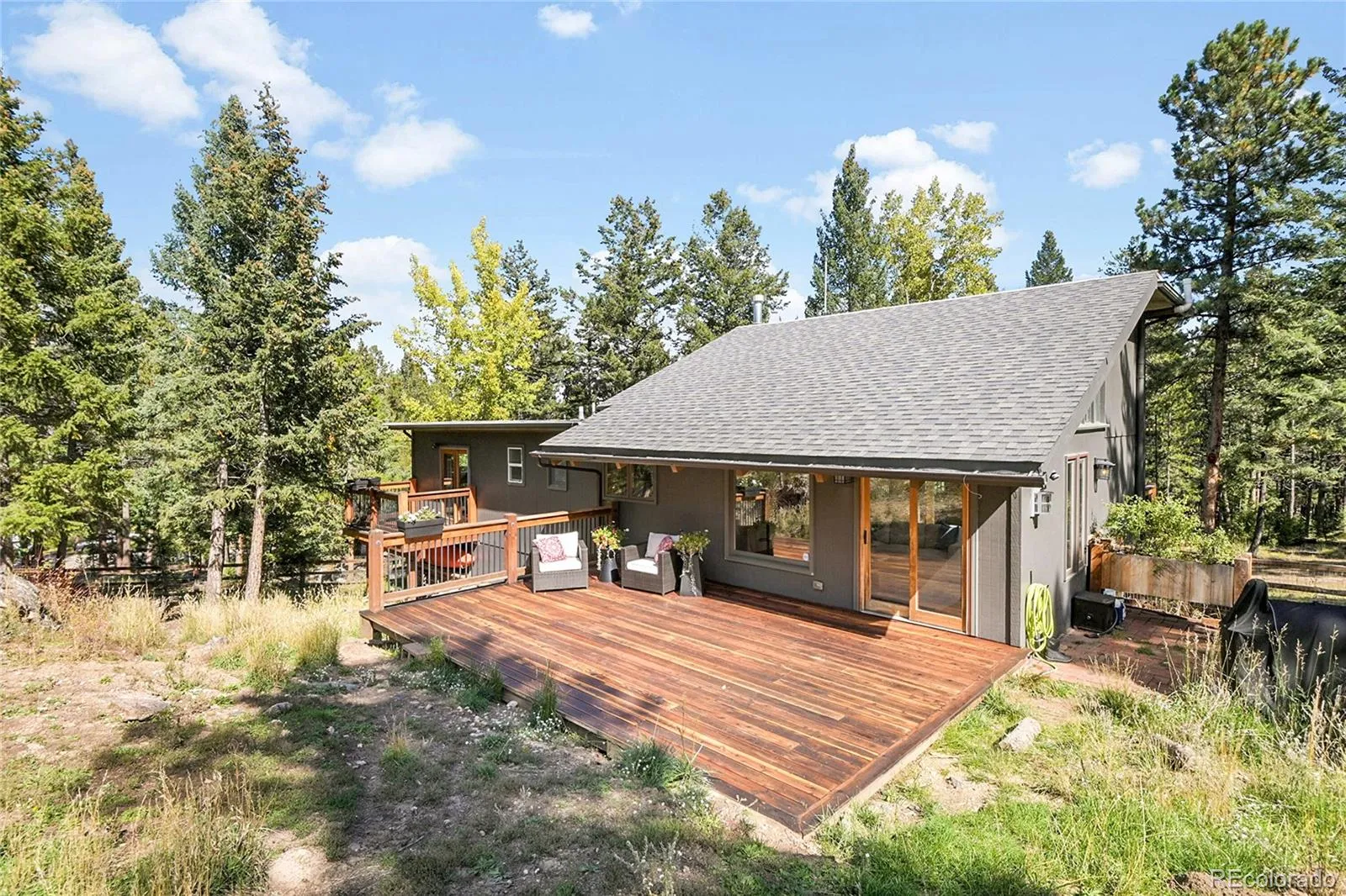 Best Listing under $800k in Evergreen Meadows. Welcome to 8077 Centaur Drive, a beautifully updated mountain retreat nestled on a serene 2-acre flat lot with a pull through driveway, domestic well and frequent elk sightings. Surrounded by towering trees, quaint rock outcroppings, and privacy, this property offers the perfect blend of tranquility and convenience. Fresh paint, new carpet, updated bathrooms and new appliances make this home move-in ready, while 4 well maintained redwood deck invites you to relax and soak in the mountain air. The fully fenced yard is ideal for pets, play, or gardening, and there’s ample space for RV parking. Whether you’re hosting family, enjoying quiet mornings, or planning your next adventure, this home has it all. Located just minutes from hiking and biking at Flying J Ranch and the charm of downtown Evergreen, you’ll enjoy easy access to both recreation and community. Details: 6 person/3 bedroom septic, Excel electric & gas, Starlink internet, Mountain View Waste, Voluntary HOA.