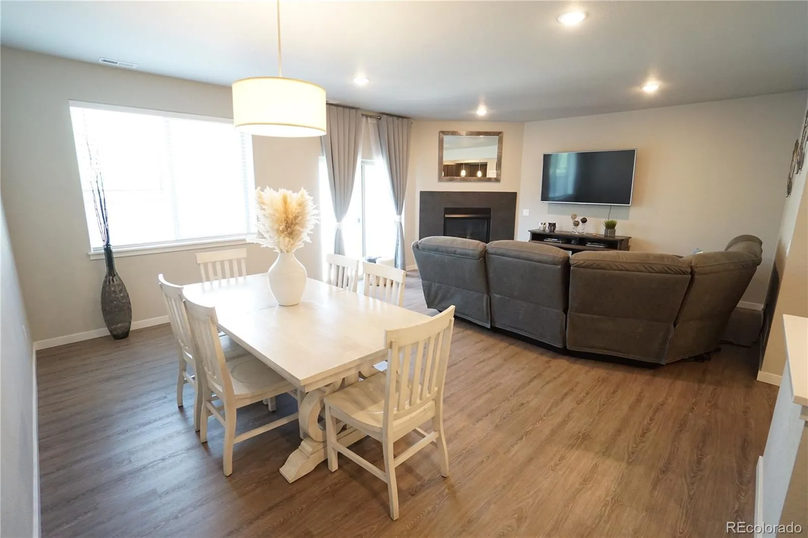 Welcome to the desired Sub-area of East Side landing in District 49! This End Unit Townhome offers three bedrooms, three bathrooms and a two-car garage with plenty of privacy. You can feel the meticulous care this owner has taken as soon as you walk in the door. Main level offers an open concept with wood flooring throughout and plenty of natural light. Upgraded Kitchen with large island, granite countertops with beautiful tile backsplash. Enjoy your gas fireplace for the upcoming winter and your air conditioner in the hot summers. If you’re looking for the feeling of a brand-new townhome look no further! The oversized primary bedroom offers Pikes Peak and Rocky Mountain views, a walk-in closet, double vanity sinks with granite countertop and a walk-in shower with seating. Your laundry room is conveniently located on the upper level with all the other bedrooms. Large loft area when going upstairs to design how you see fit! Great location near powers, shopping, Peterson AFB and much more. Come view this immaculate home for yourself or your family it will not disappoint!