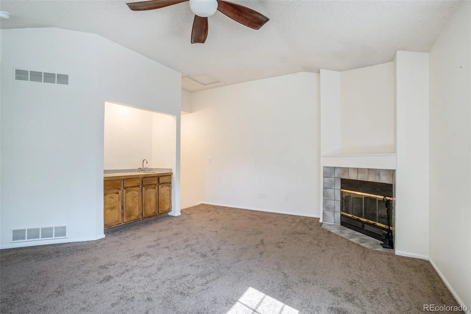 Welcome to this stunning 2 bedroom, 2 bathroom rare end-unit townhome, where comfort meets elevated living. As you enter the main level, you’re welcomed by vaulted ceilings that create a bright, open, and airy atmosphere throughout the living space. Elegant vinyl plank flooring adds a modern touch and enhances the seamless flow, making this level ideal for both everyday living and entertaining. The open-concept layout allows for versatile furniture arrangements, while large windows flood the home with natural light, highlighting the spaciousness of the design. The kitchen offers abundant cabinetry and generous countertop space, making meal prep both easy and efficient. The main-level bedroom is generously sized and conveniently located near a full ¾ bathroom—an ideal setup for guests or multi-generational living. Upstairs, a spacious open loft features a cozy wood-burning fireplace and a built-in wet bar, offering endless possibilities for use as a second living area, home office, gym, or entertainment space. The upper-level primary suite is a true retreat, complete with vaulted ceilings, a private en-suite bath, and ample closet space. The large, unfinished basement presents an opportunity to customize the space to suit your needs—whether it’s a media room, home theater, additional bedrooms, or extra storage. Recent updates include a newer roof, new vinyl siding, and newer windows, ensuring both comfort and energy efficiency. An oversized attached 2-car garage provides plenty of space for parking and storage. Ideally located near parks, shopping, and entertainment, this home offers the perfect balance of privacy, style, and convenience.