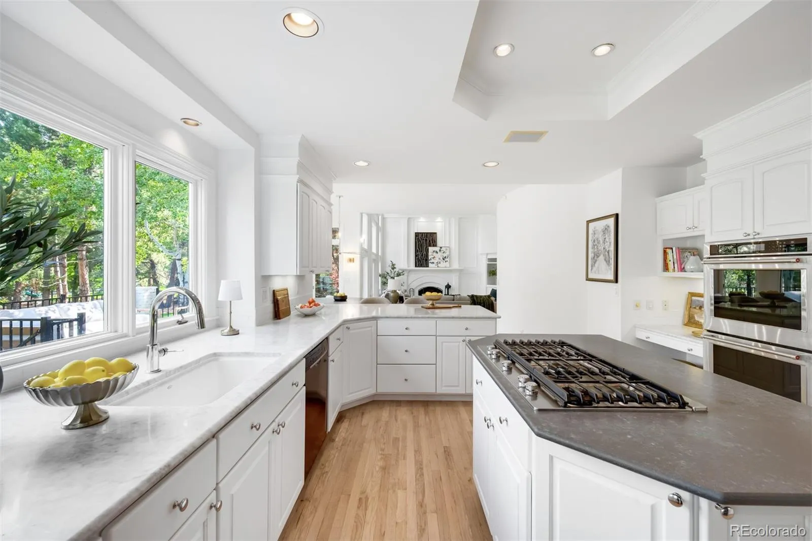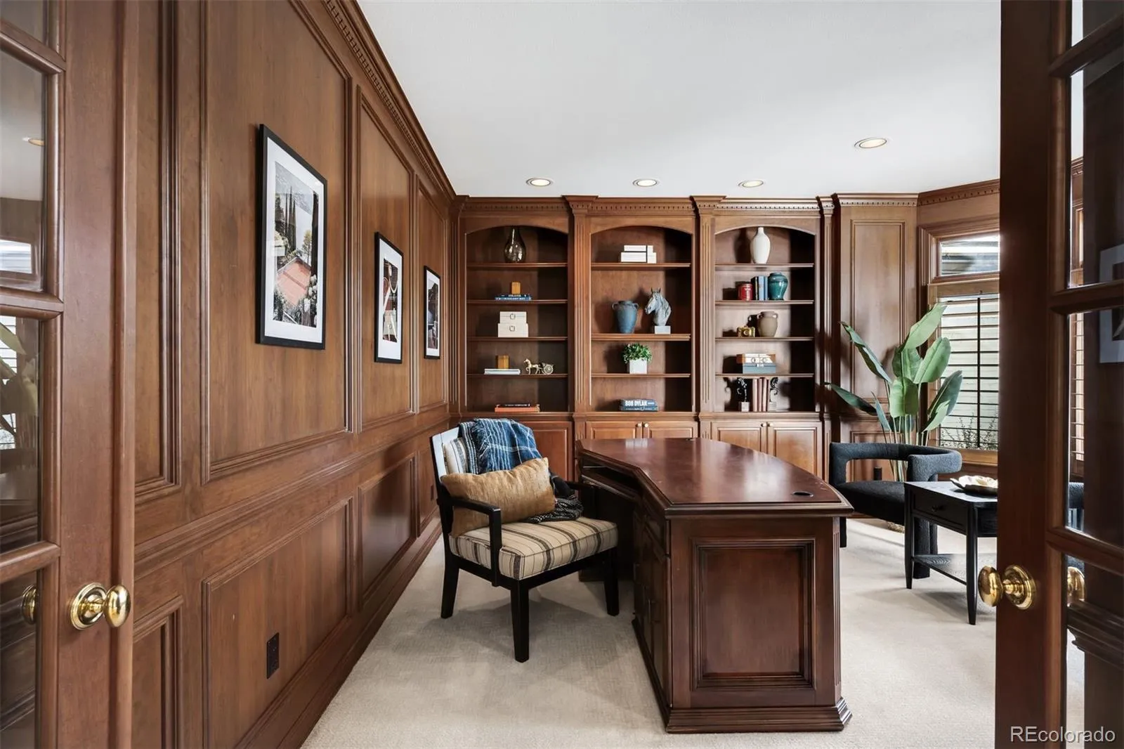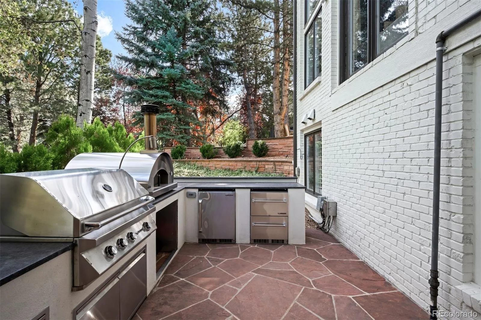 From the moment you arrive, you’re greeted by an undeniable sense of grandeur. The circular driveway, gracefully lined w/ mature trees, leads you toward a home that radiates both privacy & presence, a rare balance of retreat & refinement. Step inside & you are instantly swept into a world of elevated living. A stunning Murano glass chandelier floats above the grand marble foyer, casting a warm glow across the gleaming floors. A coffered-ceiling dining room transitions seamlessly into a sunken living room, where a marble-framed gas fireplace adds warmth & elegance. Across the foyer, the family room invites relaxed gatherings w/ a wood-burning fireplace & soaring windows that bathe the space in natural light. The kitchen is as functional as it is beautiful, a chef’s haven w/ marble countertops, farmhouse sink, & a butler’s pantry linking the kitchen to the dining room, making hosting seamless. A richly appointed office, wrapped in cherry wood paneling, is a quiet space perfect for work, study, or reflection. Upstairs, the primary suite is a luxurious haven. A spacious bedroom opens to a private parlor w/ a gas fireplace, while a 5-piece bath offers serene views. 3 additional bedrooms include a private en-suite & a shared bath. The newly remodeled lower level is a destination all its own. Imagine movie nights in your private theater w/ projector & surround sound, a pool table, gym, & a 2nd primary suite w/ full bath—perfect for guests or multigenerational living. Set on nearly 1 acre, the backyard unfolds like a private resort. Multiple fountains & mature trees create a lush, secluded escape while a river rock water feature weaves gently through the landscape, bringing the sound of a mountain stream to your doorstep. The outdoor kitchen, complete w/ a Fontana Forni pizza oven, Twin Eagles BBQ, refrigerator, & cooling drawers, makes alfresco dining effortless. It is where memories are made, where elegance meets everyday life—this is Cherry Hills living at its finest.