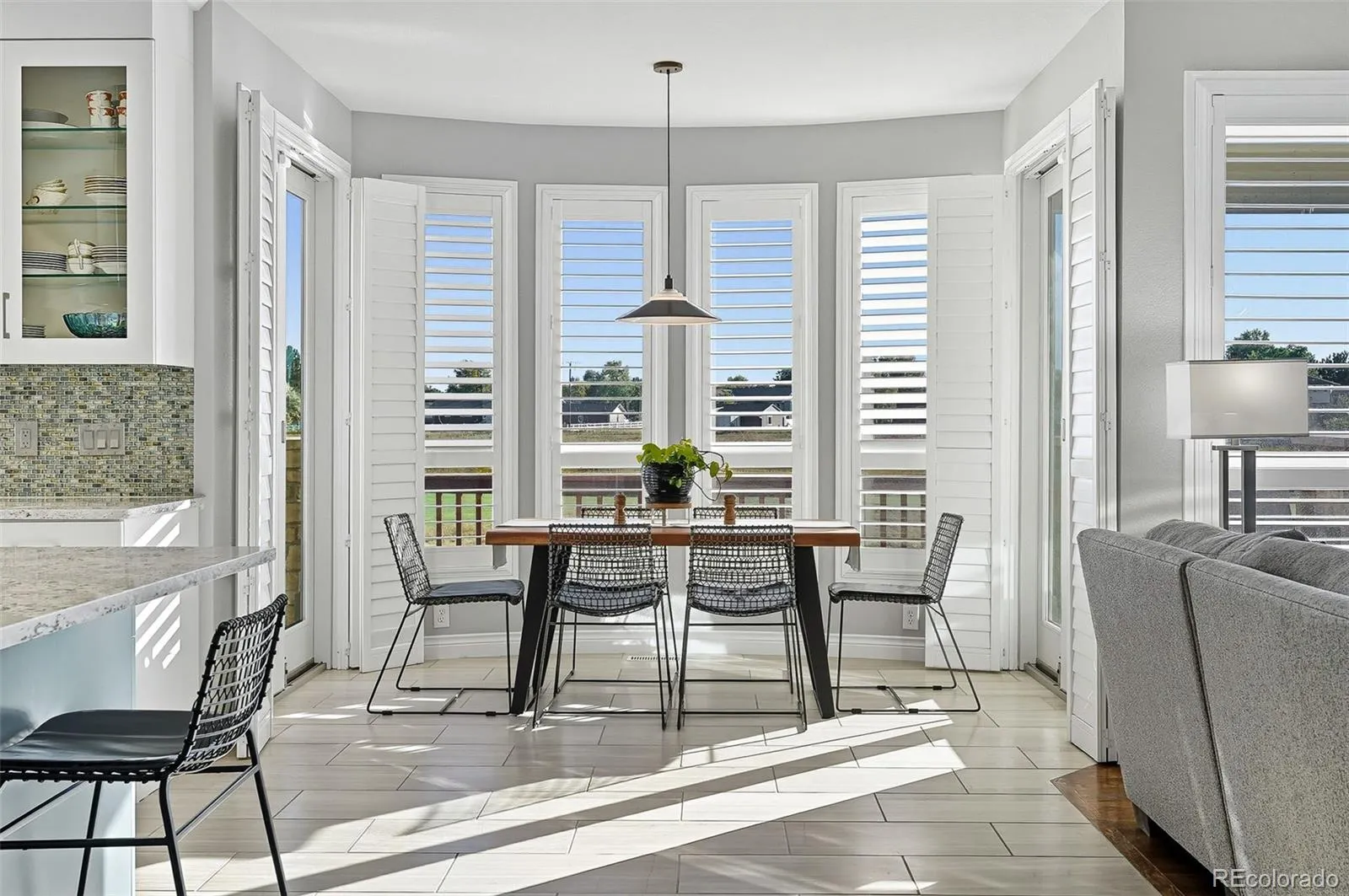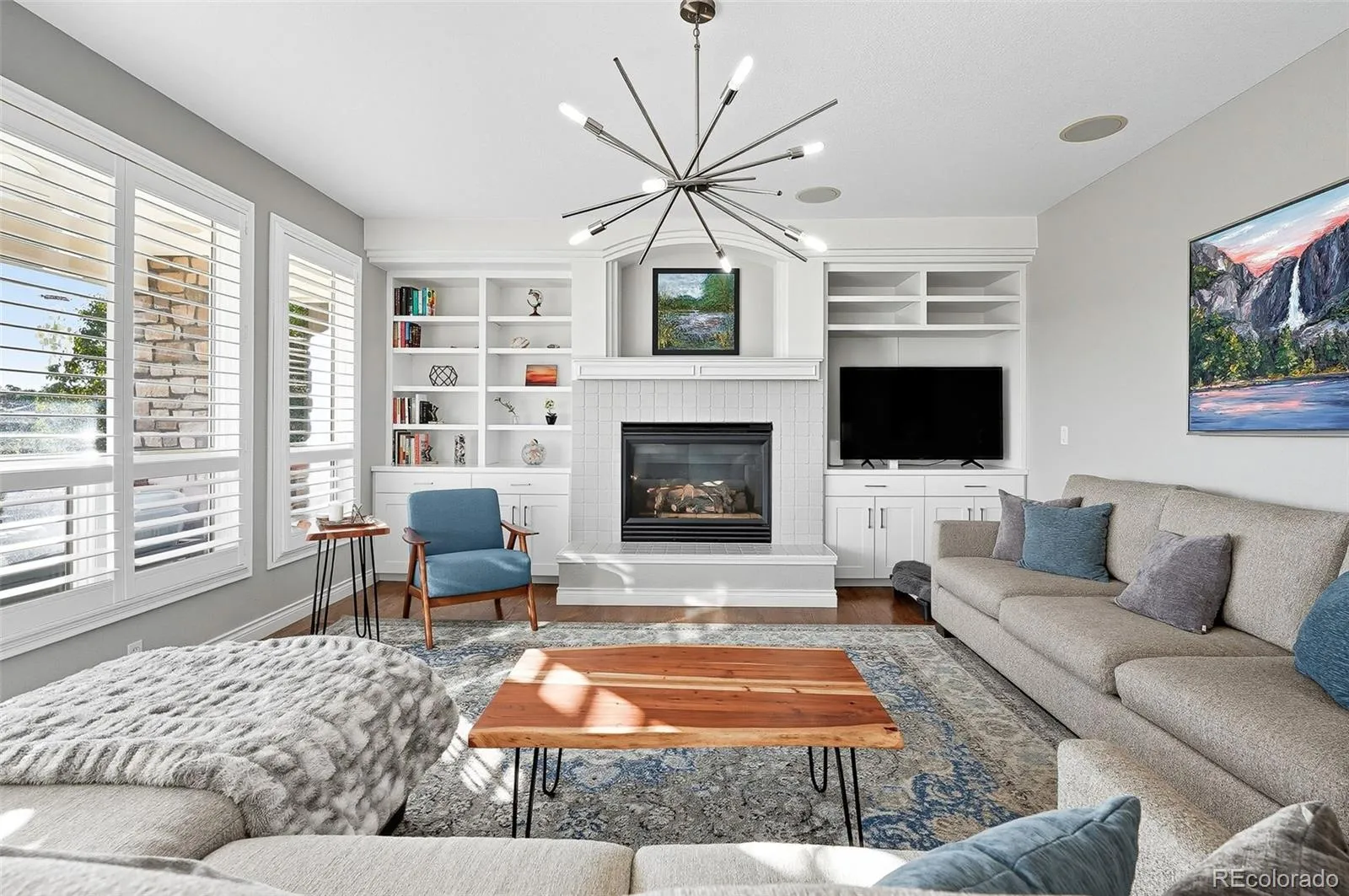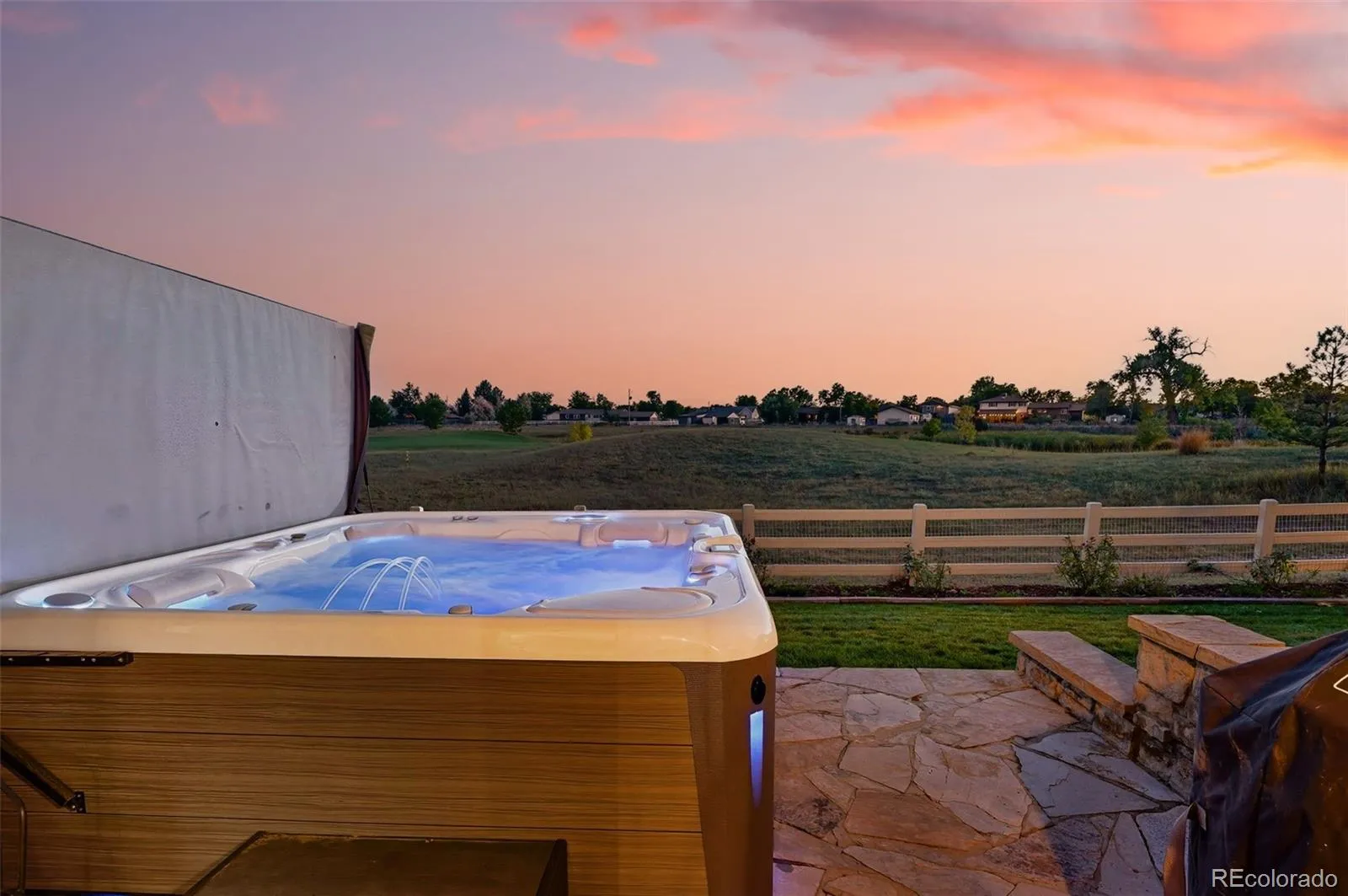 This exceptional residence in the prestigious Broadlands neighborhood blends timeless elegance with modern sophistication. Nestled on a private oversized lot overlooking the golf course, the home features an open floor plan filled with soaring ceilings, abundant natural light, and refined finishes throughout. The upper level offers a coveted layout with four of the home’s five spacious bedrooms, including a Jr. en-suite, two bedrooms with a shared bath, and a lavish primary retreat with a cozy sitting area, dual walk-in closets, and a five-piece bath designed for indulgence and comfort. On the main floor, thoughtful updates elevate every space. Rich hardwood floors flow seamlessly into a private office and a beautifully refreshed kitchen with crisp white cabinetry, striking quartz countertops, and an expansive high-end appliance suite—perfect for everyday living or grand entertaining. The walk-out basement is designed for relaxation, featuring a guest suite with a walk-in steam shower, flex space, a stylish full bar, and a generous recreation room, creating an ideal space for gatherings. Outdoor living is equally impressive, with multiple spaces crafted for both relaxation and entertaining. On the upper-level wraparound deck, enjoy expansive dining and lounge areas, or unwind on the lower patio in the private hot tub—all framed by sweeping golf course vistas and breathtaking mountain views. A welcoming front porch completes the charm, offering an ideal blend of luxury and lifestyle. Broadlands residents enjoy exceptional amenities, including a pool, playground, basketball court, and expansive trails, plus access to the community center with an indoor pool and waterpark, outdoor pool, and a variety of activities—all paired with unmatched convenience to shops, dining, major highways, DIA, Boulder, and the mountains. The community is also served by the award-winning Adams 12 school district, making this home an outstanding choice for both lifestyle and location.
