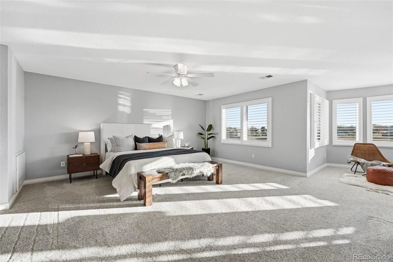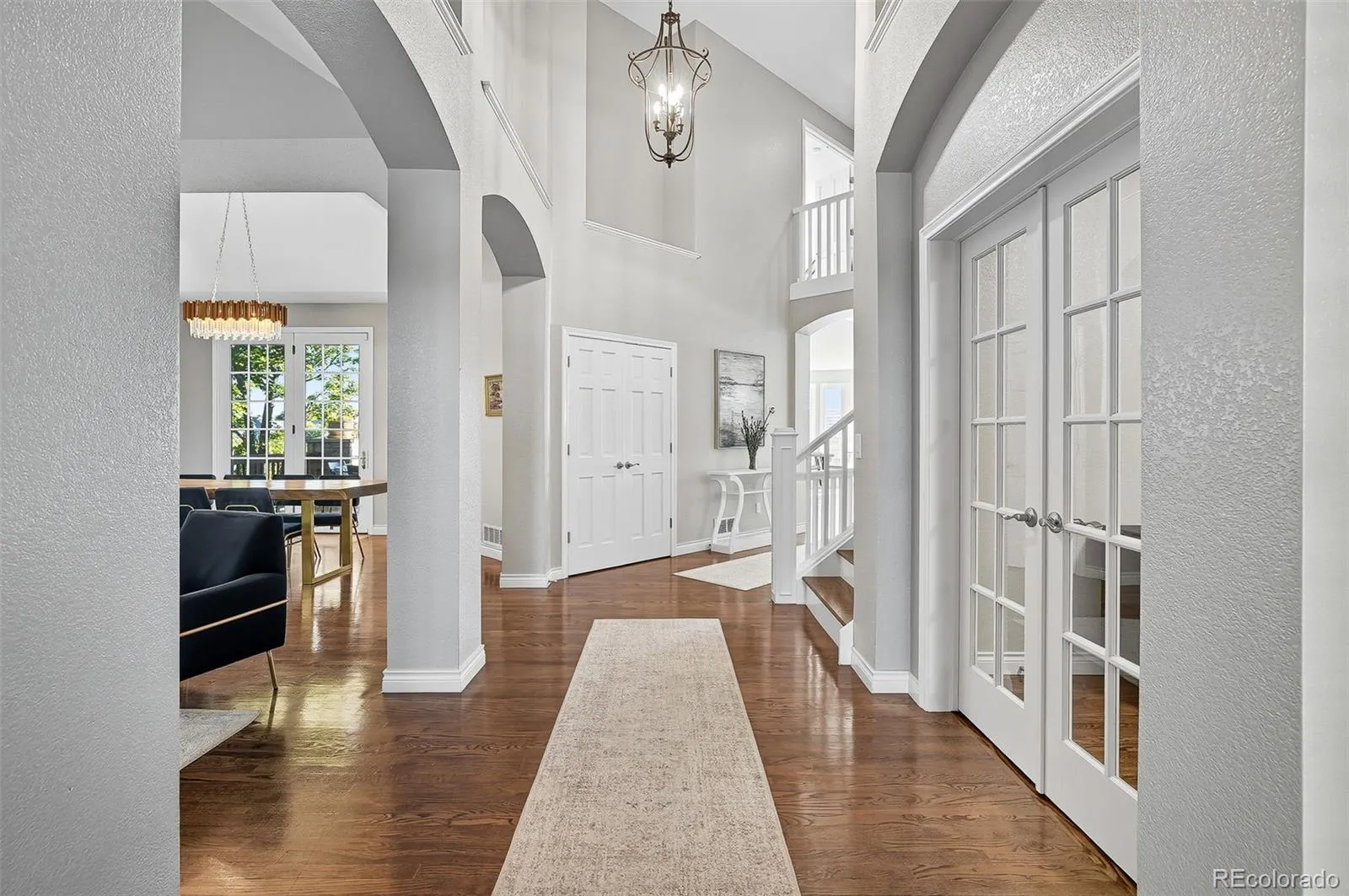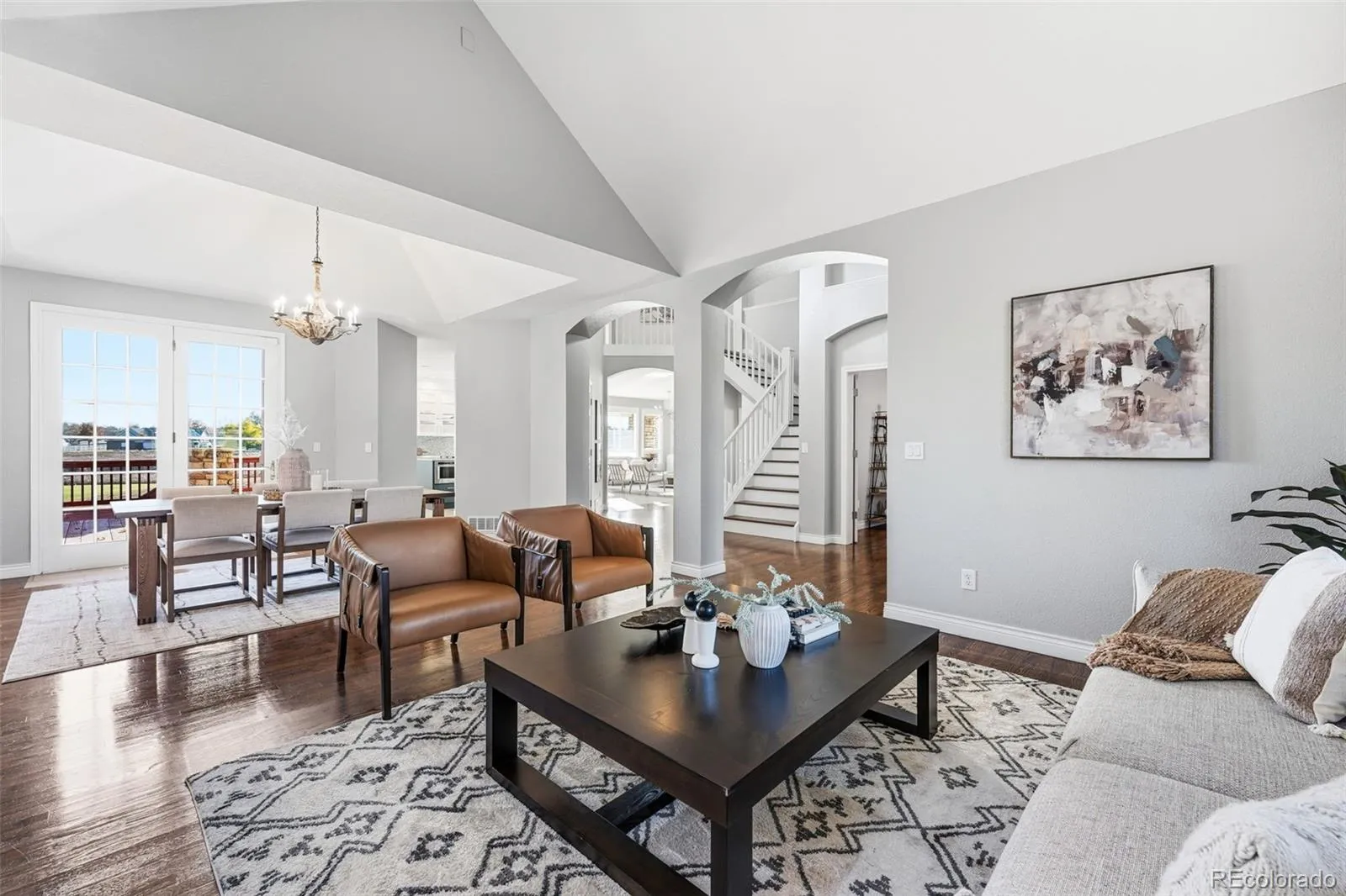 This exceptional residence in the prestigious Broadlands neighborhood blends timeless elegance with modern sophistication. Nestled on a private oversized lot overlooking the golf course, the home features an open floor plan filled with soaring ceilings, abundant natural light, and refined finishes throughout. The upper level offers a coveted layout with four of the home’s five spacious bedrooms, including a Jr. en-suite, two bedrooms with a shared bath, and a lavish primary retreat with a cozy sitting area, dual walk-in closets, and a five-piece bath designed for indulgence and comfort. On the main floor, thoughtful updates elevate every space. Rich hardwood floors flow seamlessly into a private office and a beautifully refreshed kitchen with crisp white cabinetry, striking quartz countertops, and an expansive high-end appliance suite—perfect for everyday living or grand entertaining. The walk-out basement is designed for relaxation, featuring a guest suite with a walk-in steam shower, flex space, a stylish full bar, and a generous recreation room, creating an ideal space for gatherings. Outdoor living is equally impressive, with multiple spaces crafted for both relaxation and entertaining. On the upper-level wraparound deck, enjoy expansive dining and lounge areas, or unwind on the lower patio in the private hot tub—all framed by sweeping golf course vistas and breathtaking mountain views. A welcoming front porch completes the charm, offering an ideal blend of luxury and lifestyle. Broadlands residents enjoy exceptional amenities, including a pool, playground, basketball court, and expansive trails, plus access to the community center with an indoor pool and waterpark, outdoor pool, and a variety of activities—all paired with unmatched convenience to shops, dining, major highways, DIA, Boulder, and the mountains. The community is also served by the award-winning Adams 12 school district, making this home an outstanding choice for both lifestyle and location.