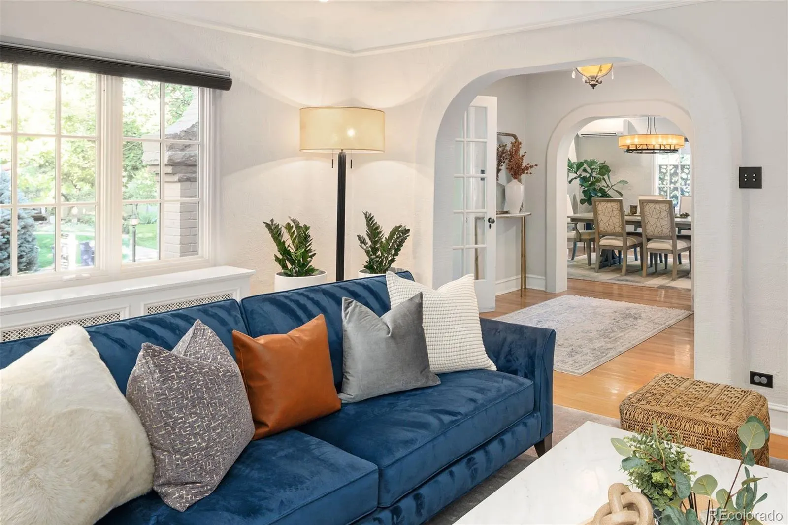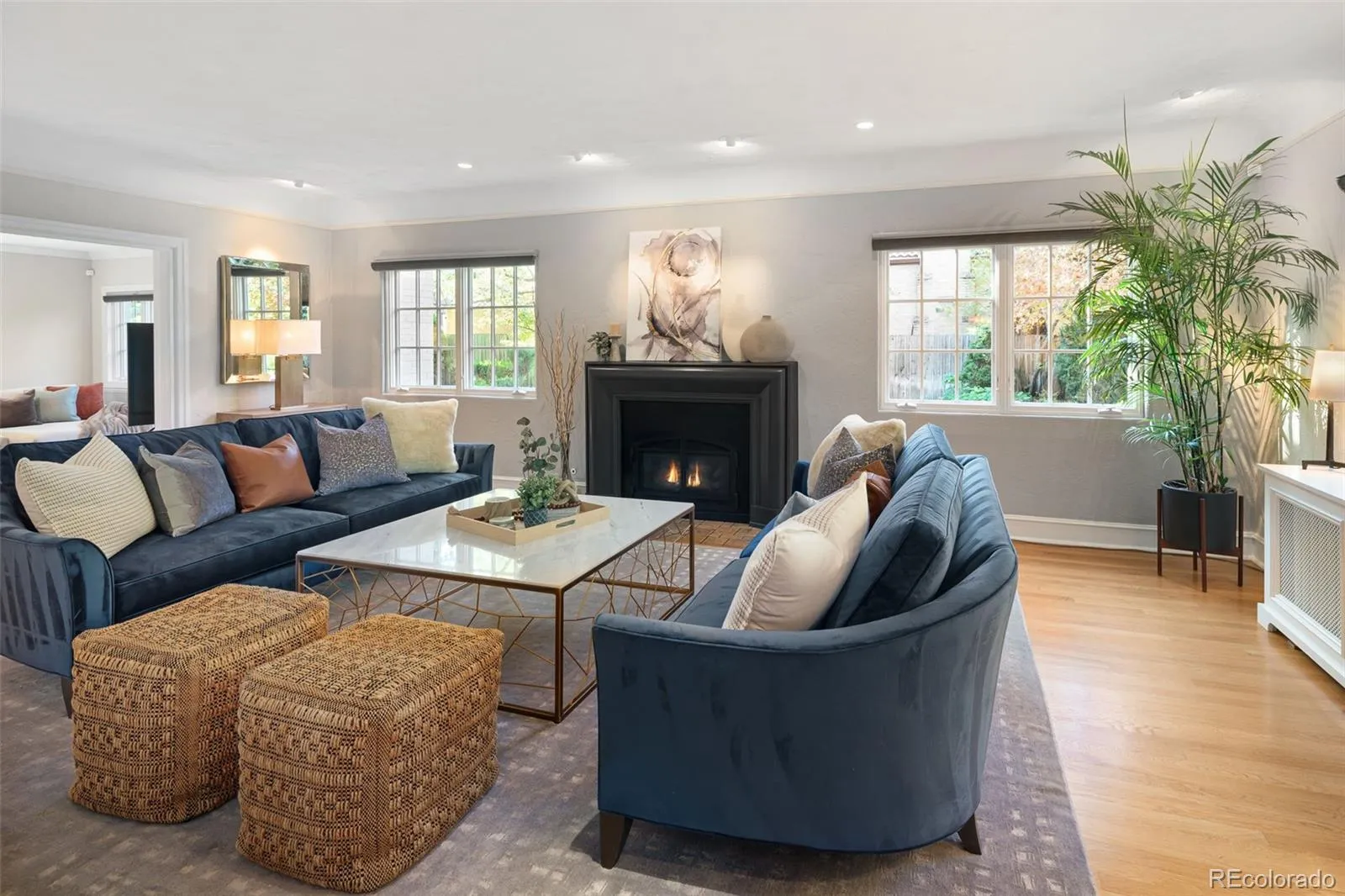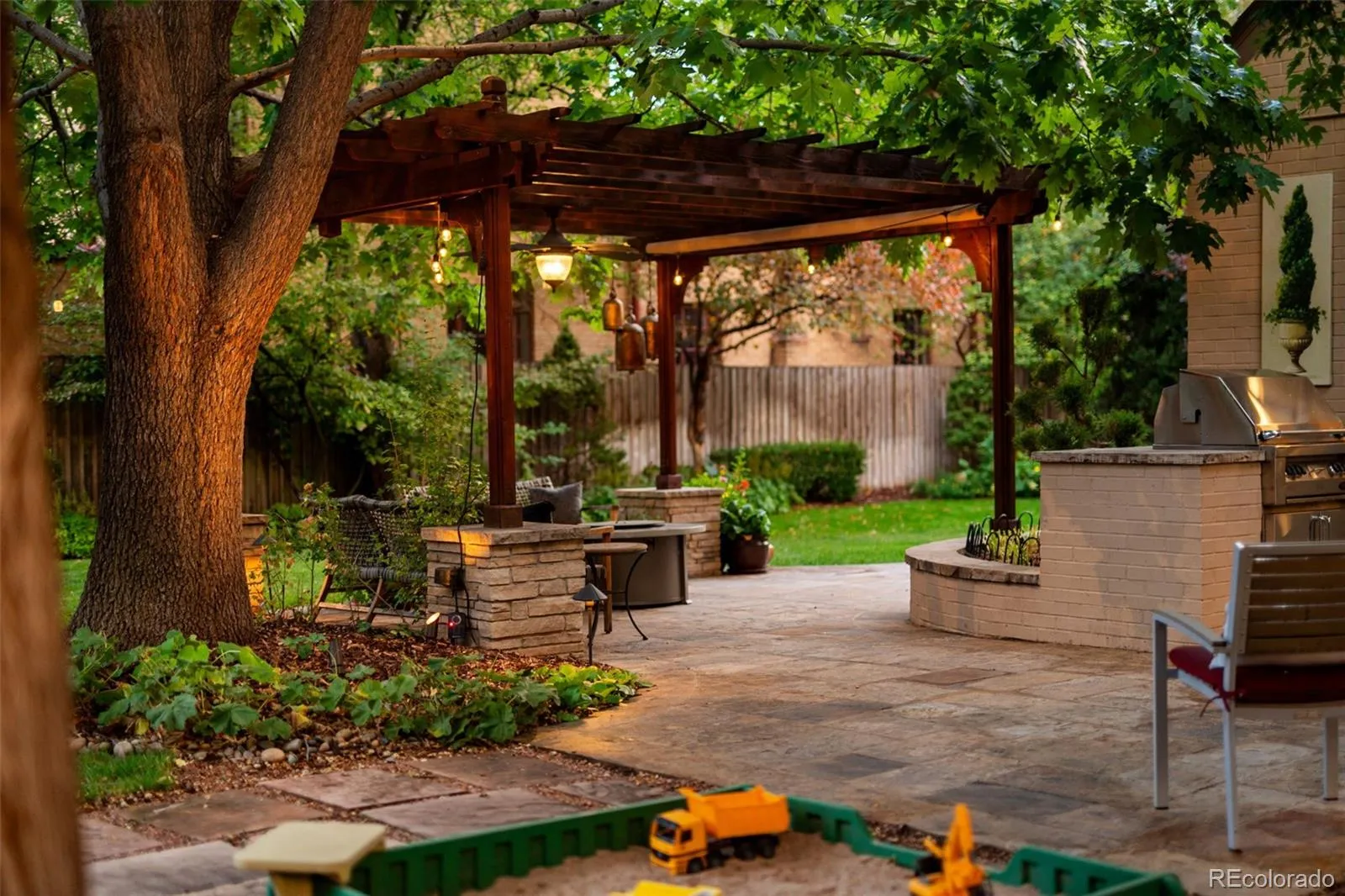 Welcome to this timeless 1930 Hilltop Tudor, rich in architectural character and set on a beautiful tree-lined street just one block from Cranmer Park. Situated on a generous 10,300 square foot lot, this 4,000+ sq. ft. home offers 5 bedrooms and 4 baths, blending original charm with thoughtful updates. Inside, every room has its own unique details — from graceful arches to wrought iron railings all make this home special. The expanded and updated layout is ideal for entertaining, with a sun-filled kitchen featuring hardwood floors, a large island, and open connection to the dining room with views of lush foliage. The living and family rooms open to the professionally landscaped backyard, complete with covered patio, built-in BBQ, firepit, iron fencing, and flagstone accents — an inviting space for gathering. Upstairs, the primary suite has two walk-in closets and a stunning new 5-piece bath with Classentino Porcelain finishes and a walk-in shower. Three additional bedrooms, a full bath, and laundry complete the second floor. The finished basement offers a re-carpeted guest suite with full bath, bonus room, and storage. A 2-car attached garage connects through a mudroom for everyday convenience. Recent upgrades include: a brand-new luxury primary bath, new Primary fireplace, custom radiator covers throughout, mini-split AC on the main level, updated lighting inside and out, fresh paint, new basement carpet, stainless refrigerator, hardscaping, and outdoor awning. The location is unbeatable — just moments to Cranmer Park’s stunning sunsets, close to Graland Country Day and Steck Elementary, Robinson Park, and neighborhood favorites like Park Burger and High Point Creamery. Close to Cherry Creek for world-class dining and shopping. This is a rare Hilltop sanctuary that perfectly combines history, character, and modern comfort.