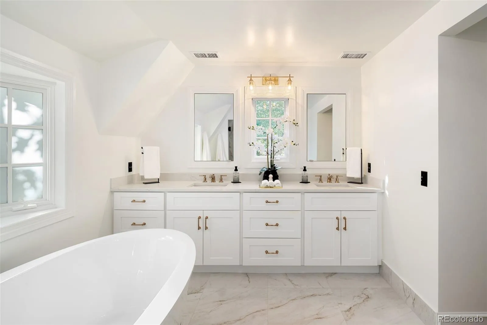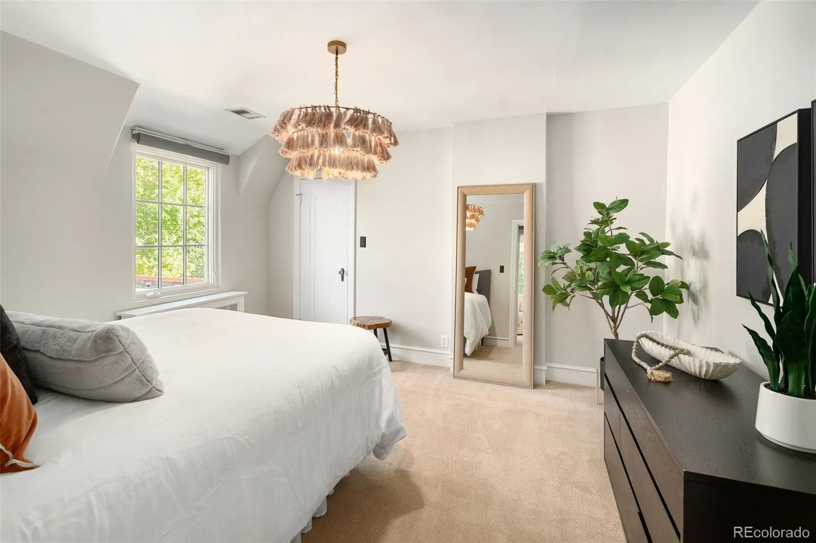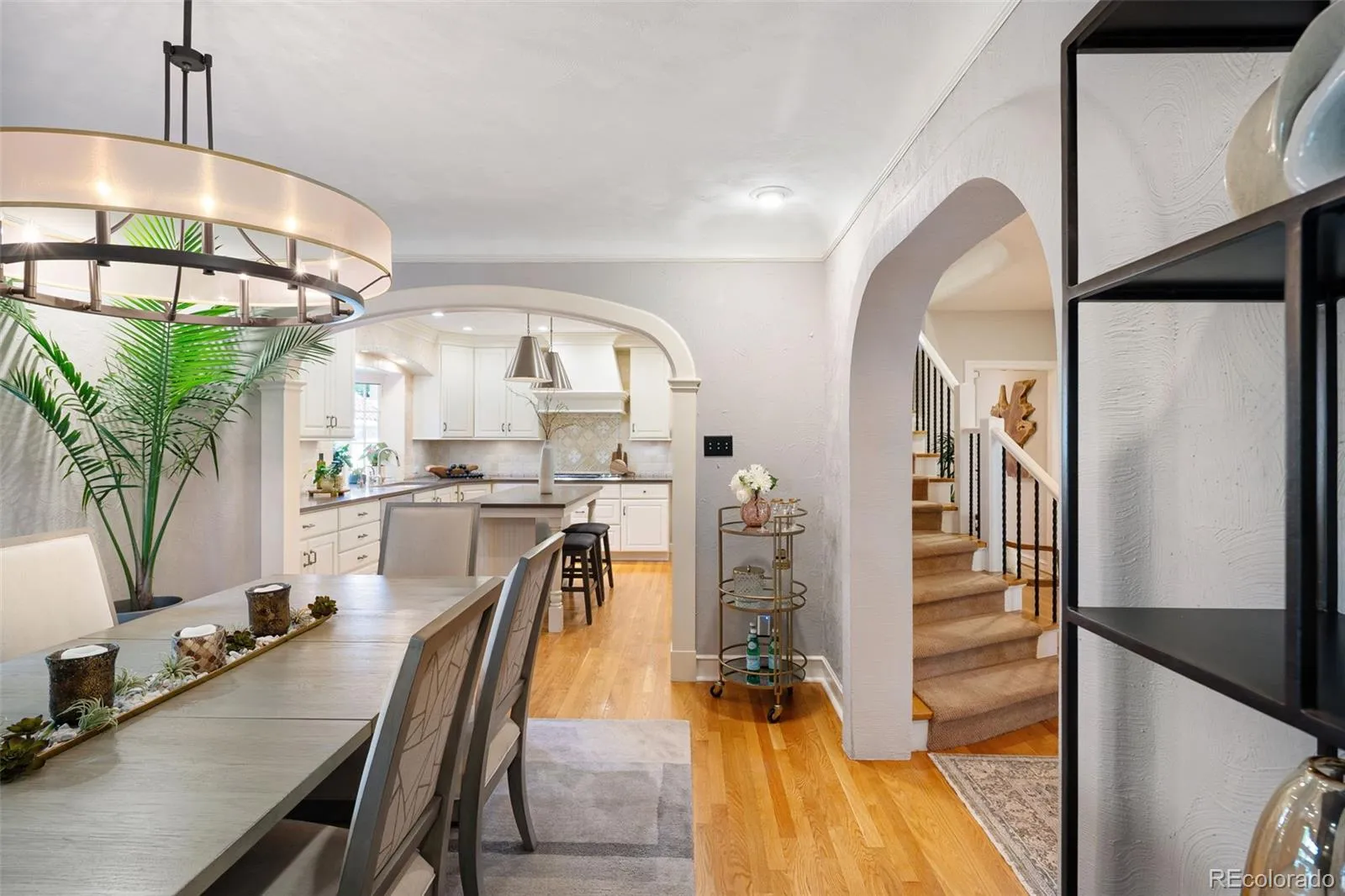 Welcome to this timeless 1930 Hilltop Tudor, rich in architectural character and set on a beautiful tree-lined street just one block from Cranmer Park. Situated on a generous 10,300 square foot lot, this 4,000+ sq. ft. home offers 5 bedrooms and 4 baths, blending original charm with thoughtful updates. Inside, every room has its own unique details — from graceful arches to wrought iron railings all make this home special. The expanded and updated layout is ideal for entertaining, with a sun-filled kitchen featuring hardwood floors, a large island, and open connection to the dining room with views of lush foliage. The living and family rooms open to the professionally landscaped backyard, complete with covered patio, built-in BBQ, firepit, iron fencing, and flagstone accents — an inviting space for gathering. Upstairs, the primary suite has two walk-in closets and a stunning new 5-piece bath with Classentino Porcelain finishes and a walk-in shower. Three additional bedrooms, a full bath, and laundry complete the second floor. The finished basement offers a re-carpeted guest suite with full bath, bonus room, and storage. A 2-car attached garage connects through a mudroom for everyday convenience. Recent upgrades include: a brand-new luxury primary bath, new Primary fireplace, custom radiator covers throughout, mini-split AC on the main level, updated lighting inside and out, fresh paint, new basement carpet, stainless refrigerator, hardscaping, and outdoor awning. The location is unbeatable — just moments to Cranmer Park’s stunning sunsets, close to Graland Country Day and Steck Elementary, Robinson Park, and neighborhood favorites like Park Burger and High Point Creamery. Close to Cherry Creek for world-class dining and shopping. This is a rare Hilltop sanctuary that perfectly combines history, character, and modern comfort.