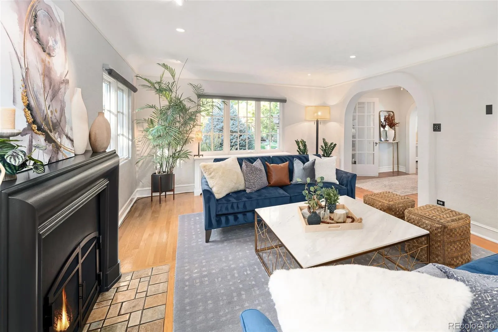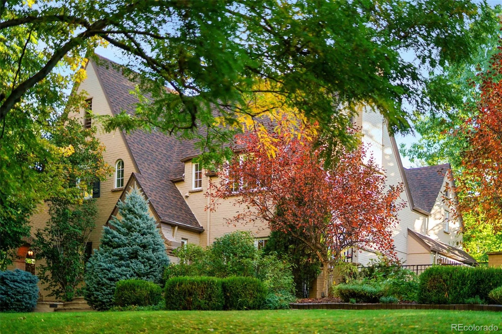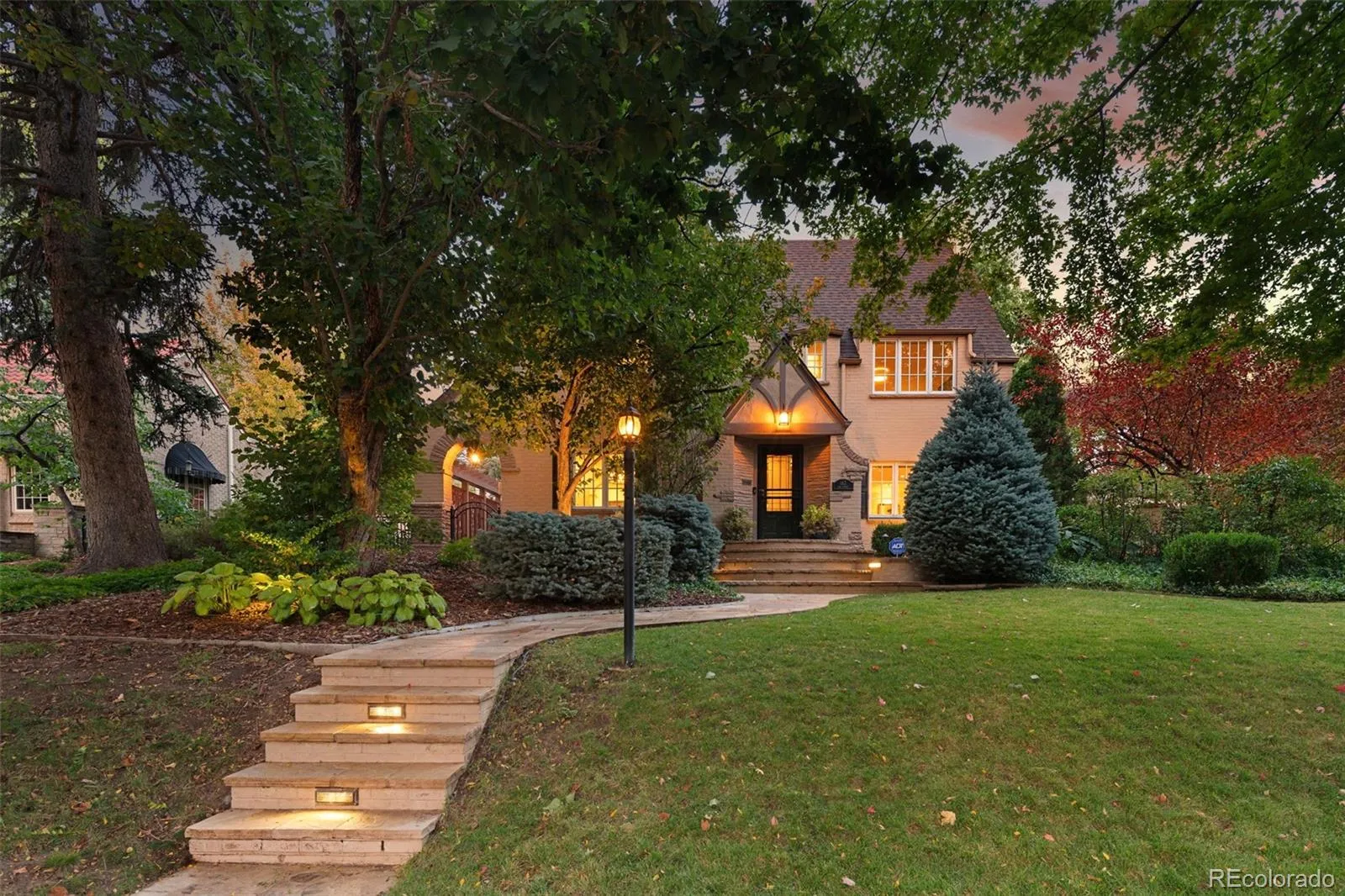 Welcome to this timeless 1930 Hilltop Tudor, rich in architectural character and set on a beautiful tree-lined street just one block from Cranmer Park. Situated on a generous 10,300 square foot lot, this 4,000+ sq. ft. home offers 5 bedrooms and 4 baths, blending original charm with thoughtful updates. Inside, every room has its own unique details — from graceful arches to wrought iron railings all make this home special. The expanded and updated layout is ideal for entertaining, with a sun-filled kitchen featuring hardwood floors, a large island, and open connection to the dining room with views of lush foliage. The living and family rooms open to the professionally landscaped backyard, complete with covered patio, built-in BBQ, firepit, iron fencing, and flagstone accents — an inviting space for gathering. Upstairs, the primary suite has two walk-in closets and a stunning new 5-piece bath with Classentino Porcelain finishes and a walk-in shower. Three additional bedrooms, a full bath, and laundry complete the second floor. The finished basement offers a re-carpeted guest suite with full bath, bonus room, and storage. A 2-car attached garage connects through a mudroom for everyday convenience. Recent upgrades include: a brand-new luxury primary bath, new Primary fireplace, custom radiator covers throughout, mini-split AC on the main level, updated lighting inside and out, fresh paint, new basement carpet, stainless refrigerator, hardscaping, and outdoor awning. The location is unbeatable — just moments to Cranmer Park’s stunning sunsets, close to Graland Country Day and Steck Elementary, Robinson Park, and neighborhood favorites like Park Burger and High Point Creamery. Close to Cherry Creek for world-class dining and shopping. This is a rare Hilltop sanctuary that perfectly combines history, character, and modern comfort.