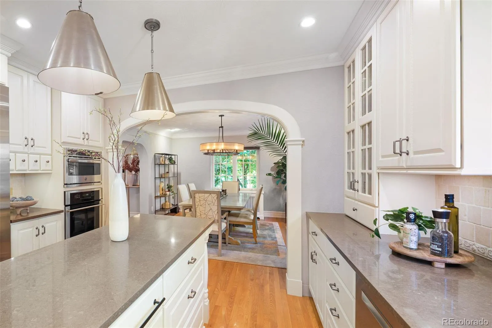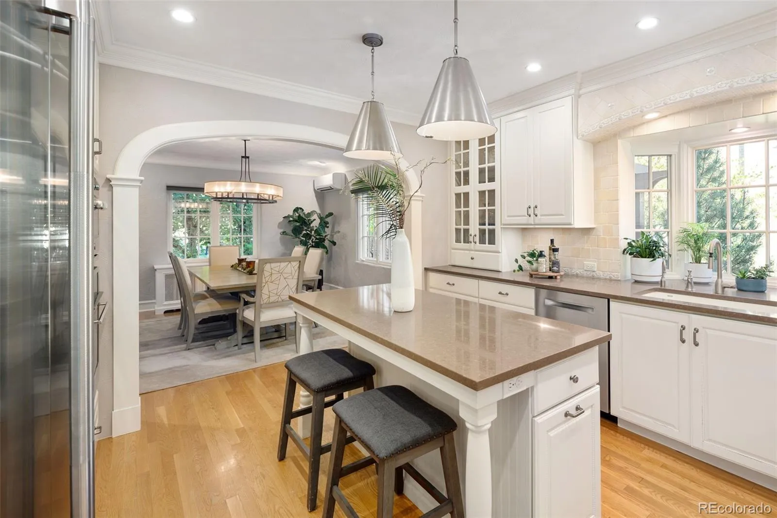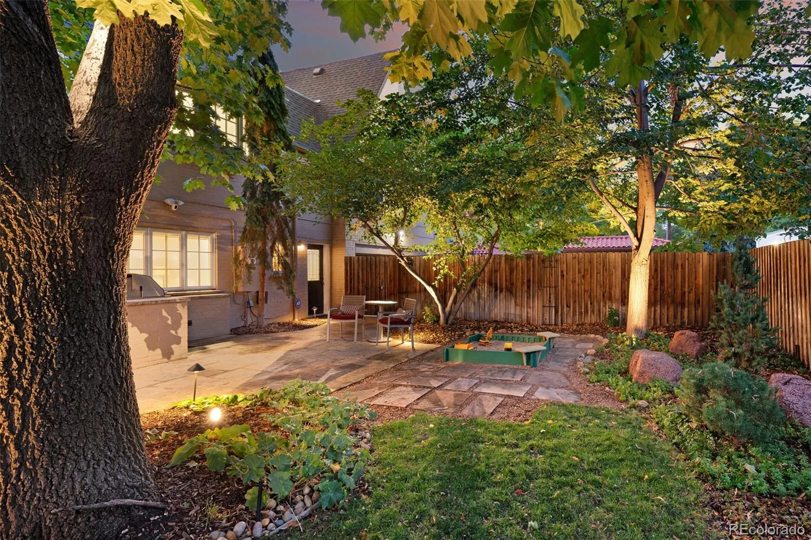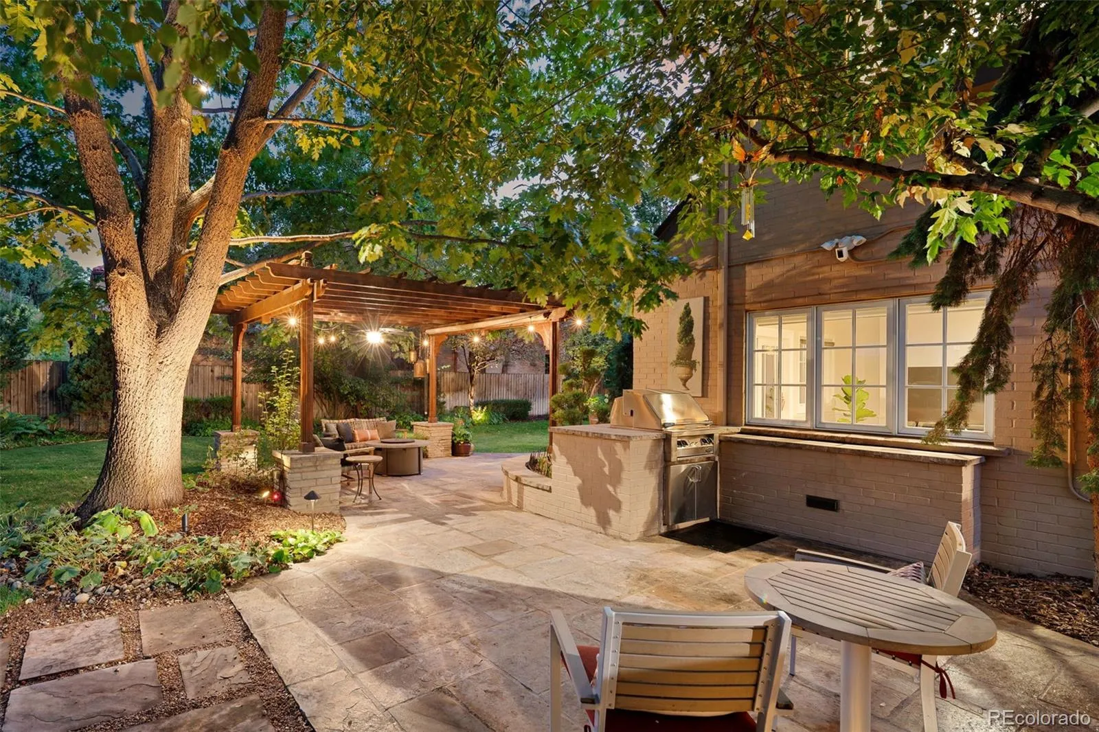 Welcome to this timeless 1930 Hilltop Tudor, rich in architectural character and set on a beautiful tree-lined street just one block from Cranmer Park. Situated on a generous 10,300 square foot lot, this 4,000+ sq. ft. home offers 5 bedrooms and 4 baths, blending original charm with thoughtful updates. Inside, every room has its own unique details — from graceful arches to wrought iron railings all make this home special. The expanded and updated layout is ideal for entertaining, with a sun-filled kitchen featuring hardwood floors, a large island, and open connection to the dining room with views of lush foliage. The living and family rooms open to the professionally landscaped backyard, complete with covered patio, built-in BBQ, firepit, iron fencing, and flagstone accents — an inviting space for gathering. Upstairs, the primary suite has two walk-in closets and a stunning new 5-piece bath with Classentino Porcelain finishes and a walk-in shower. Three additional bedrooms, a full bath, and laundry complete the second floor. The finished basement offers a re-carpeted guest suite with full bath, bonus room, and storage. A 2-car attached garage connects through a mudroom for everyday convenience. Recent upgrades include: a brand-new luxury primary bath, new Primary fireplace, custom radiator covers throughout, mini-split AC on the main level, updated lighting inside and out, fresh paint, new basement carpet, stainless refrigerator, hardscaping, and outdoor awning. The location is unbeatable — just moments to Cranmer Park’s stunning sunsets, close to Graland Country Day and Steck Elementary, Robinson Park, and neighborhood favorites like Park Burger and High Point Creamery. Close to Cherry Creek for world-class dining and shopping. This is a rare Hilltop sanctuary that perfectly combines history, character, and modern comfort.
