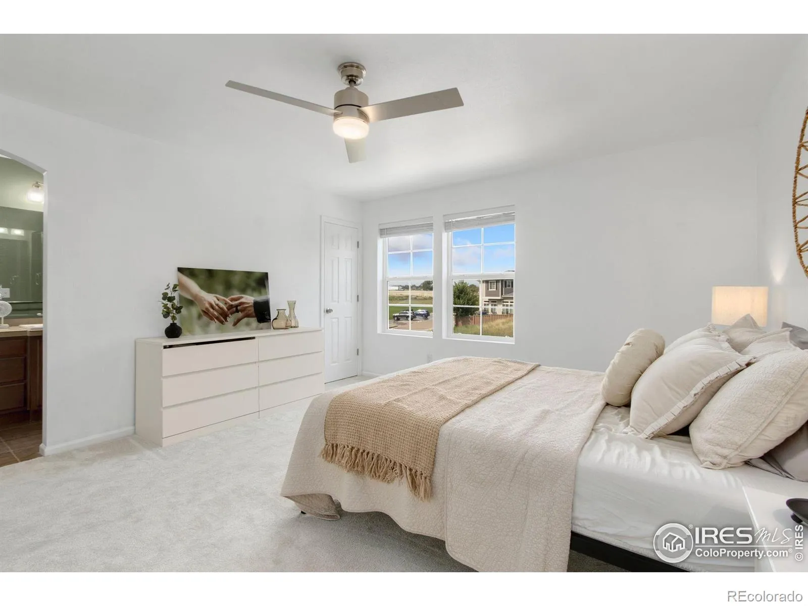 Experience a beautifully updated 3 bedroom home located in the sought-after Thompson River Ranch community in Johnstown. With neutral colors, newer flooring and carpet throughout, and a charmingly renovated kitchen, this home offers contemporary comfort with room to grow. Step inside to a main level featuring two separate living spaces bathed in natural light, a half bathroom, and an eat-in kitchen adorned with a serene color palette, newly installed concrete countertops, a granite composite sink, and modern hardware. Gather around the brand new extended kitchen island that enhances the functionality of the original floor plan, providing additional space for storage and entertainment. Upstairs is an airy primary bedroom featuring a walk-in closet and an en suite bathroom with a dual vanity and a spa-like walk-in shower. Just down the hall are two secondary bedrooms, a full bathroom, and a dedicated laundry space. An unfinished basement offers endless potential to expand with possibilities of a home gym, media room, or an additional bedroom. Enjoy a fully fenced backyard shaded by a mature tree, ideal for relaxing, gardening in the raised beds, or hosting summer gatherings. Venture to the neighborhood pool and park for an evening of play just two blocks away. Only minutes from Loveland, Thompson River Ranch offers two swimming pools, three playgrounds, a disc golf course, paved walking and biking trails, Riverview PK-8 school within the neighborhood, a clubhouse with a fitness facility and gathering space, and a variety of community events for residents like Food Truck Fridays in the summer and holiday celebrations. Love where you live in this vibrant community that provides immediate commutes to I-25 and shopping and entertainment at Centerra. Take advantage of a 1% LENDER-PAID CREDIT (based on the loan amount) to apply toward closing costs or an interest rate reduction when financing through our preferred lender.