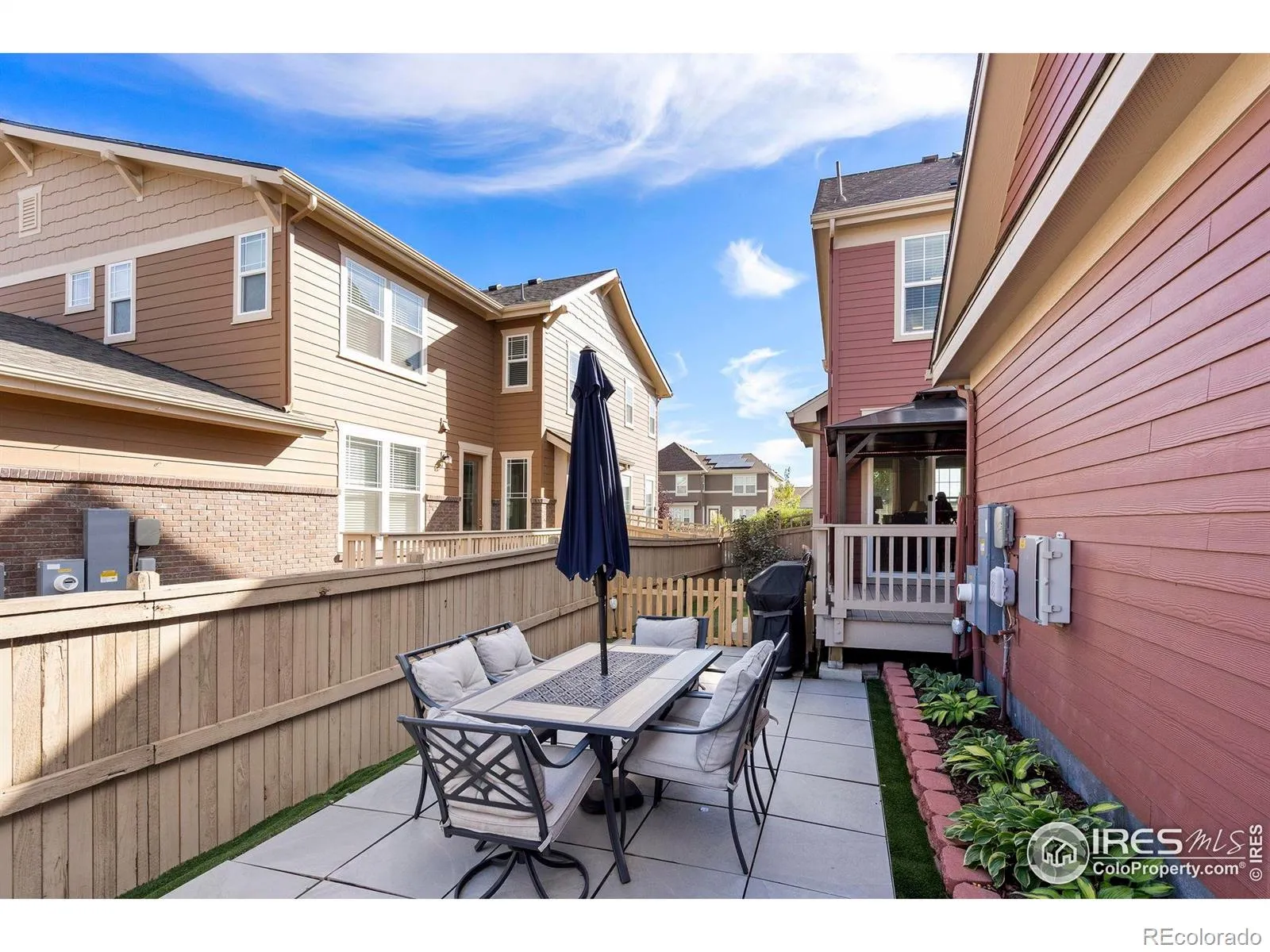 Welcome home to this outstanding, like new, paired home in the desirable Compass community. Well-designed open floor plan that offers plenty of natural light. Tastefully appointed home featuring LVP flooring(main) 9 foot ceilings(main), 8 foot doors(main), custom 8 foot retractable storm door, Ring camera security system, abundance of tall windows with 2″ custom blinds, and Sherwin Williams designer paint. Functional kitchen boasts granite counters, 42″ cabinets, complimenting backsplash, SS appliances, gas range/oven, pantry, and built-in desk off kitchen. Loft/office area could be modified to create a 3rd bedroom. Unfinished basement(850 sq ft)with 9 foot ceilings ready for your vision. Oversized 2 car garage(475 sq ft)with alley access. Extended outdoor living space includes Trex deck, gazebo(negotiable), large stone tile patio area, and enclosed wood fenced yard. Beautiful landscaping front and back. Enjoy all the neighborhood parks and paved walking trails. Unbelievable location with easy access to Boulder, Denver, DIA, and close to Erie’s charming downtown. Perfectly positioned in the highly ranked Boulder Valley School District. Leased solar panels(currently at $38.00 month)saves on utilities. See QR code for more home features. Set up a showing today to see this well-maintained and ready to move into home.