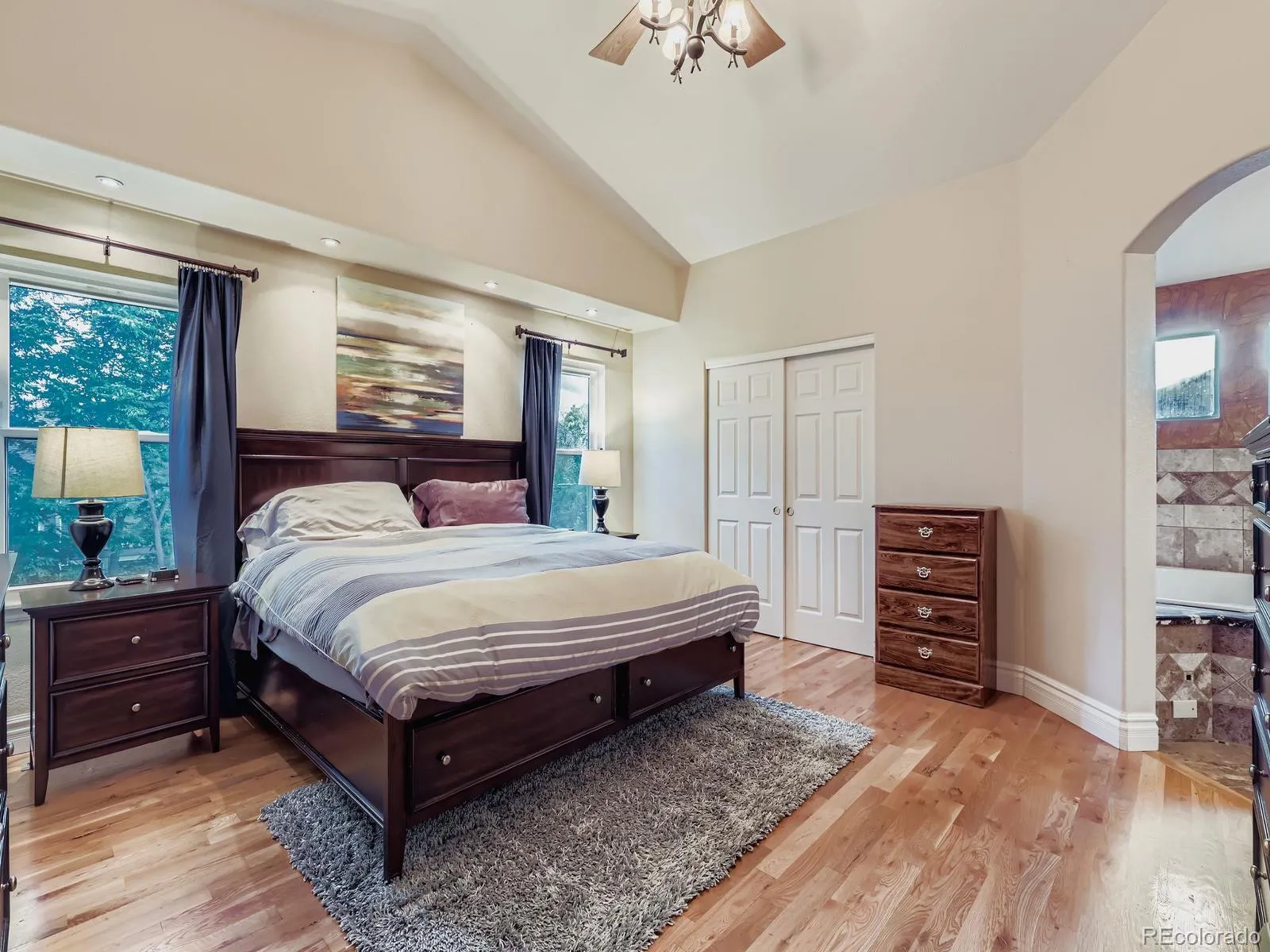 Upstairs, the primary suite is a retreat with vaulted ceilings, a spa-like 5-piece bath, and walk-in closet. Three additional bedrooms and another full bath complete the upper level.