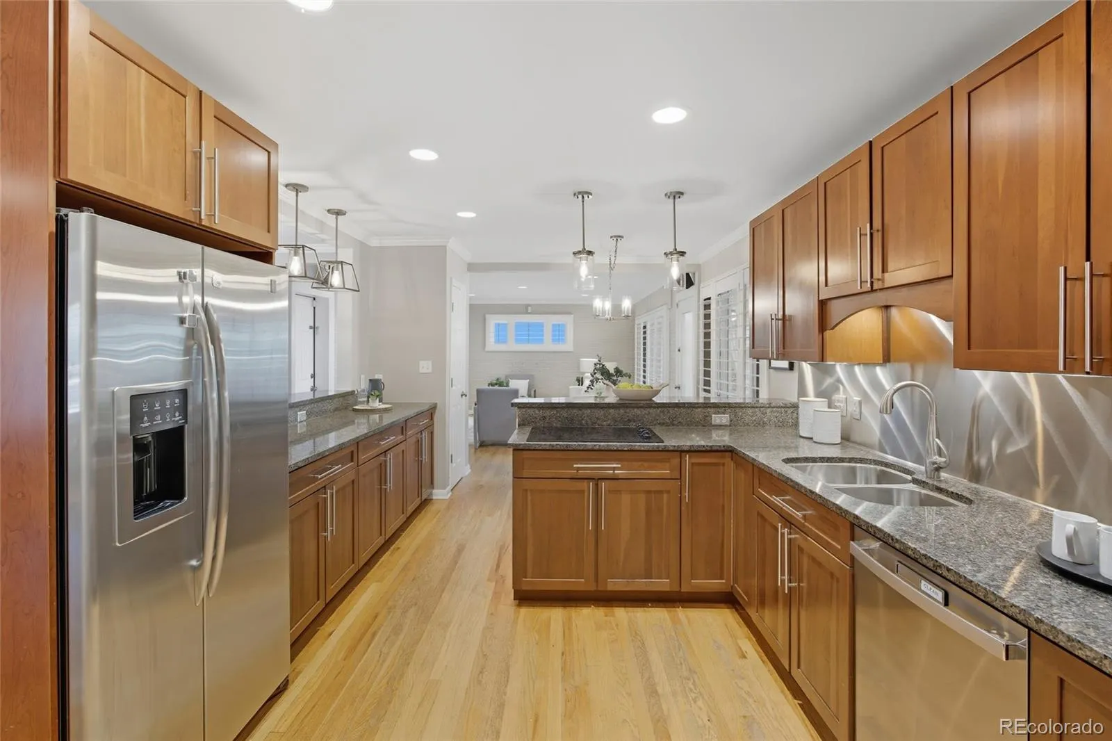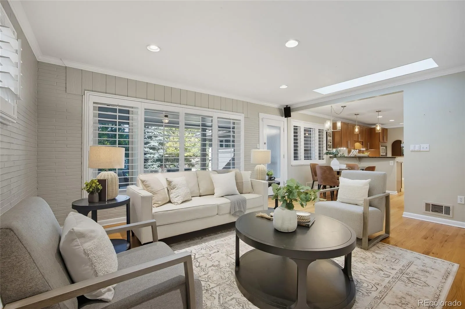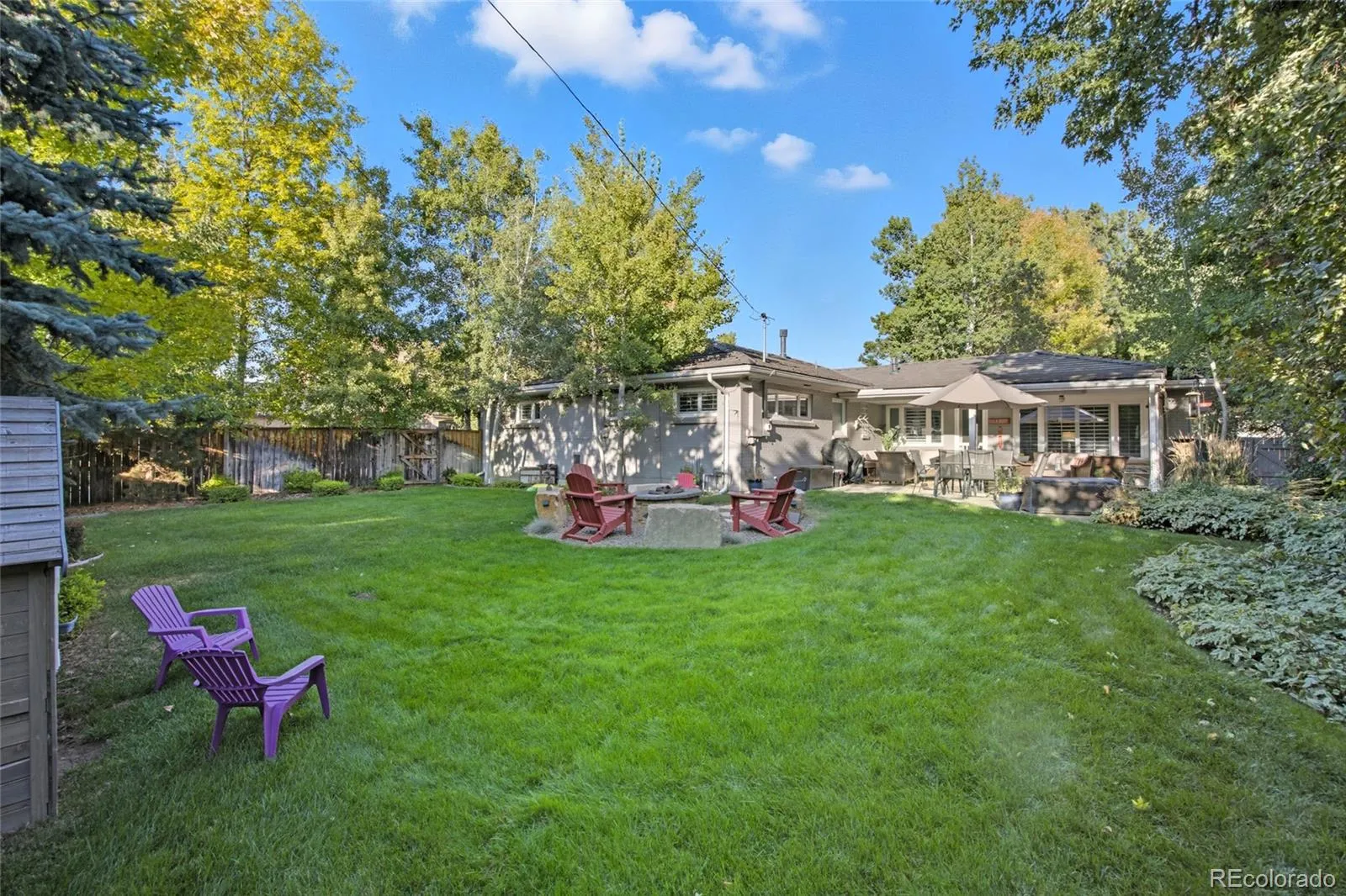 Welcome to Crestmoor Park! Nestled on a beautiful, tree-lined, corner lot near the park, this charming 4-bed, 3-bath brick ranch sits on a nearly 12,000 square foot lot-offering space to relax, gather & feel inspired. This home has been in the original homeowner’s family for over 72 yrs & it’s a unique & rare opportunity to own a home that has been lovingly cared for over many decades. Step inside to a warm & inviting living room with a cozy gas fireplace & sun-filled corner windows. The updated kitchen, w/ its timeless cabinetry & newer appliances, opens to a lovely breakfast nook & elegant dining room-perfect for hosting intimate dinner parties or family gatherings. A cozy family room w/ original brick details looks out onto the private outdoor space that includes a gorgeous gas firepit and an expansive covered patio, ideal for entertaining year-round! 3 bedrooms on the main level provide flexibility—whether you need room for family, guests, or a quiet home office. The primary suite is a true retreat, featuring a beautifully renovated bath w/ a walk-in shower & an expansive custom walk-in closet. Downstairs, the finished basement includes a non-conforming bedroom w/ a spacious closet and built-in Murphy bed, a beautiful bathroom with spacious walk-in shower/steam room, and a large storage area. Featuring hardwood floors throughout, central AC, gorgeous landscaping and concrete tile roof. Beyond your doorstep, enjoy the quiet tree-lined streets of Crestmoor, which lead to the exclusive Crestmoor Swim & Tennis Club—where membership is coveted by and expedited for homeowners of this wonderful community. Truly walkable, this home provides an amazing lifestyle – a short stroll to the park, top rated schools, and easy access to shopping and dining at nearby Cherry Creek, Boulevard One and Lowry. enjoy this move-in ready single-story home as-is, or make it uniquely yours with the enormous amount of expansion potential —all in one of Denver’s most coveted neighborhoods.