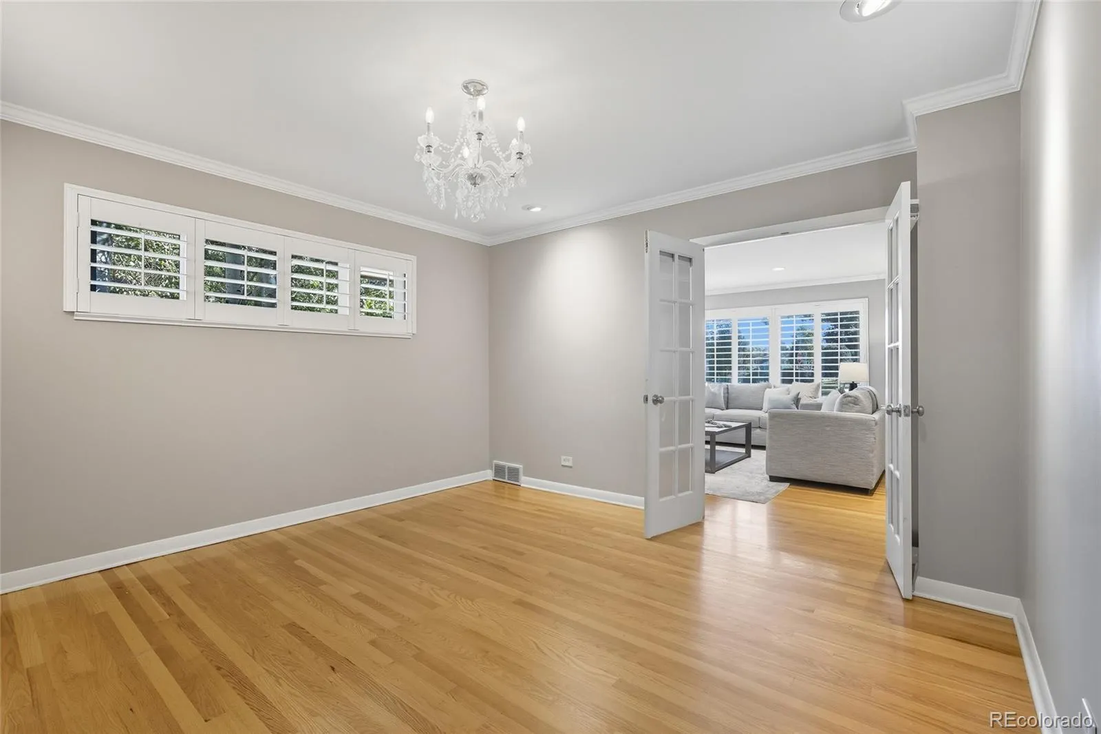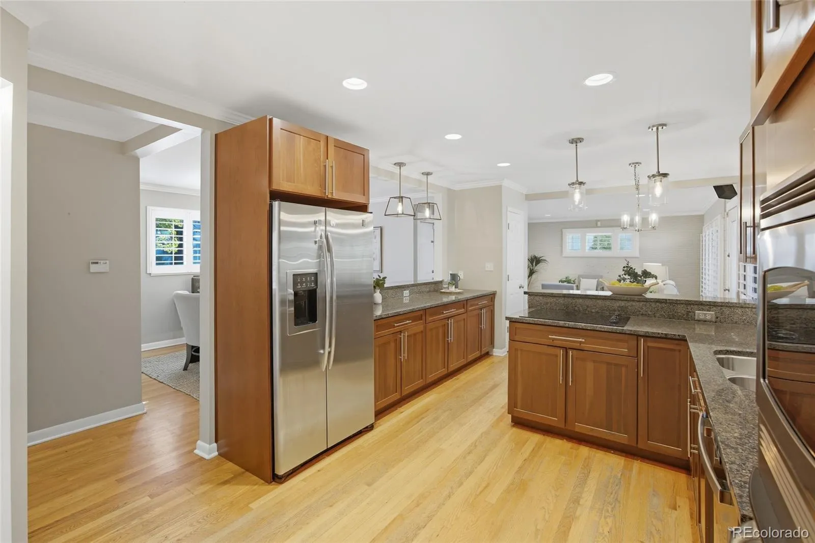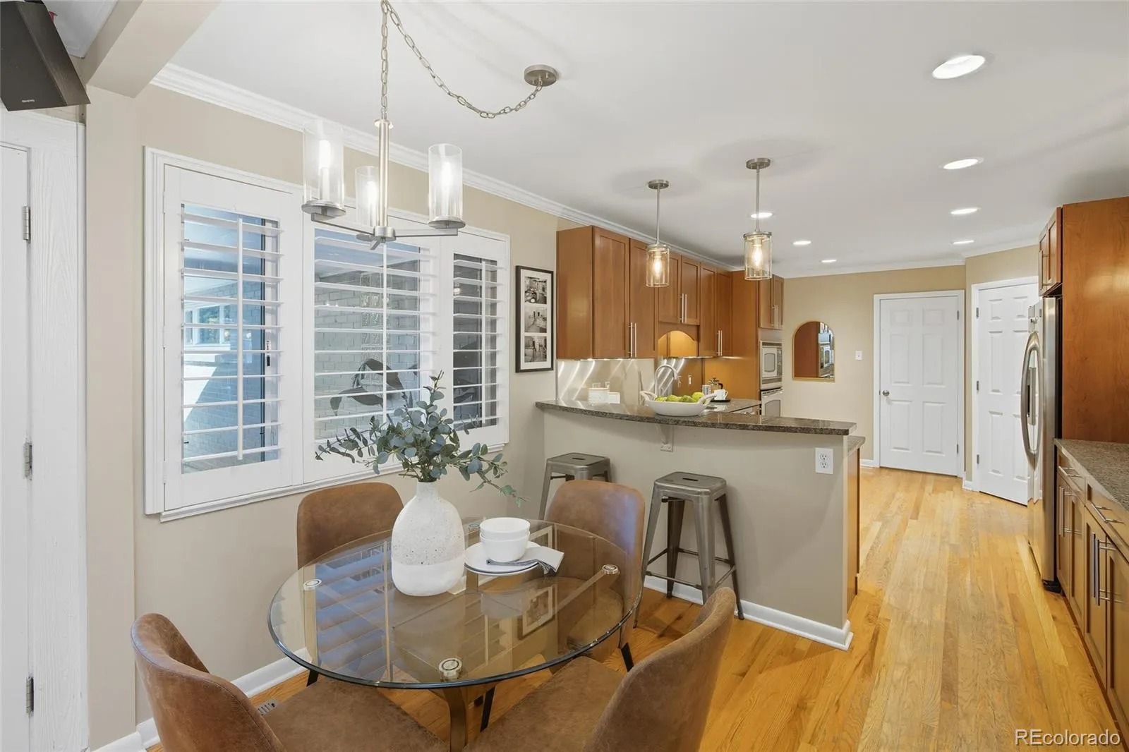 Welcome to Crestmoor Park! Nestled on a beautiful, tree-lined, corner lot near the park, this charming 4-bed, 3-bath brick ranch sits on a nearly 12,000 square foot lot-offering space to relax, gather & feel inspired. This home has been in the original homeowner’s family for over 72 yrs & it’s a unique & rare opportunity to own a home that has been lovingly cared for over many decades. Step inside to a warm & inviting living room with a cozy gas fireplace & sun-filled corner windows. The updated kitchen, w/ its timeless cabinetry & newer appliances, opens to a lovely breakfast nook & elegant dining room-perfect for hosting intimate dinner parties or family gatherings. A cozy family room w/ original brick details looks out onto the private outdoor space that includes a gorgeous gas firepit and an expansive covered patio, ideal for entertaining year-round! 3 bedrooms on the main level provide flexibility—whether you need room for family, guests, or a quiet home office. The primary suite is a true retreat, featuring a beautifully renovated bath w/ a walk-in shower & an expansive custom walk-in closet. Downstairs, the finished basement includes a non-conforming bedroom w/ a spacious closet and built-in Murphy bed, a beautiful bathroom with spacious walk-in shower/steam room, and a large storage area. Featuring hardwood floors throughout, central AC, gorgeous landscaping and concrete tile roof. Beyond your doorstep, enjoy the quiet tree-lined streets of Crestmoor, which lead to the exclusive Crestmoor Swim & Tennis Club—where membership is coveted by and expedited for homeowners of this wonderful community. Truly walkable, this home provides an amazing lifestyle – a short stroll to the park, top rated schools, and easy access to shopping and dining at nearby Cherry Creek, Boulevard One and Lowry. enjoy this move-in ready single-story home as-is, or make it uniquely yours with the enormous amount of expansion potential —all in one of Denver’s most coveted neighborhoods.