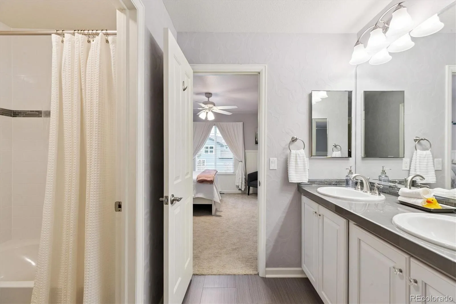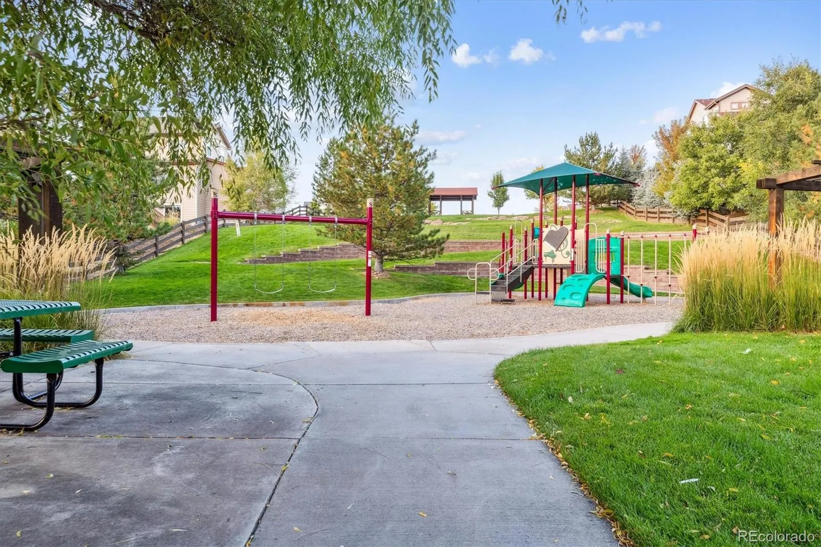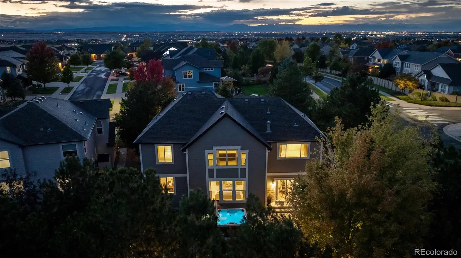 Spectacular 2-story corner-lot beauty tucked away on a quiet street, backing to miles of open space & trails in beautiful Canterberry Crossing one of Parker’s premier neighborhoods! Professionally finished yard with walkways, garden beds, and fencing offers the perfect outdoor retreat. Step inside to a bright completely updated open-concept floorplan featuring extensive luxury vinyl plank floors. This former model home offers gourmet kitchen boasting stunning cherry cabinets, granite countertops, stainless steel appliances, a gas cooktop island + breakfast bar, double oven, and loads of natural light. The inviting family room has a cozy gas fireplace, open concept living and surround sound. Main level also offers a den/study including practical built-ins with French doors. Elegant formal living or dining room, charming powder bath, and a spacious laundry/mud room with wash sink, storage, and garage access. Upstairs, the expansive primary suite is a true retreat with a double-sided fireplace, spa-like 5-piece bath with heated floors, soaking tub, glass shower, dual vanities, and a massive walk-in closet. Three additional bedrooms up, including an ensuite guest room with private bath, plus roomy secondary bedrooms with walk-in closets & ceiling fans and shared jack n’ jill bath. The recently finished basement is designed for entertaining with a massive great room, kids’ bonus room, (non conforming) guest suite & beautiful 3/4 shower bath. Don’t miss the unfinished storage for all your gear. Tankless H2O heater, large efficient furnace. Large 3-car garage completes this home! Unmatched quality, detail, and location—don’t miss this opportunity! Community amenities include a clubhouse, swimming pool, and tennis courts. Walking distance to Frontier Valley Elementary (~0.5 miles), Cimarron Middle School (~0.3 miles), and Legend High School (~0.7 miles). HOA dues covering snow removal, grounds, trash, recycling, and common-area maintenance.