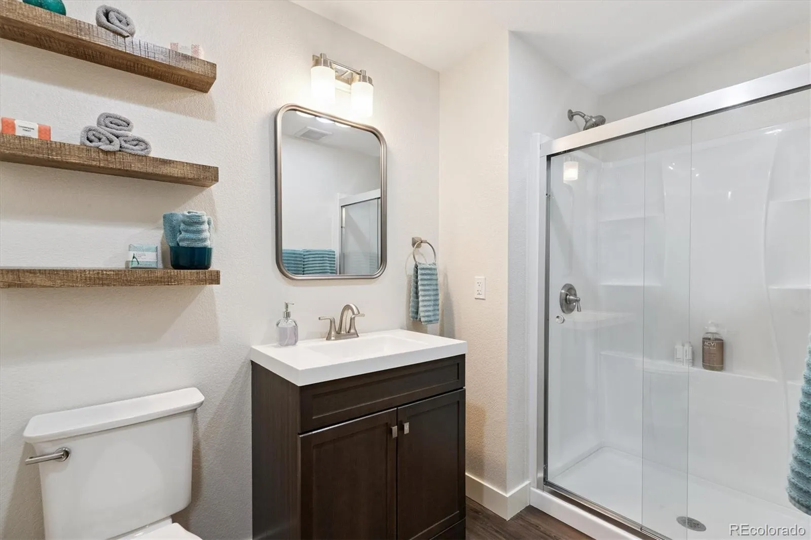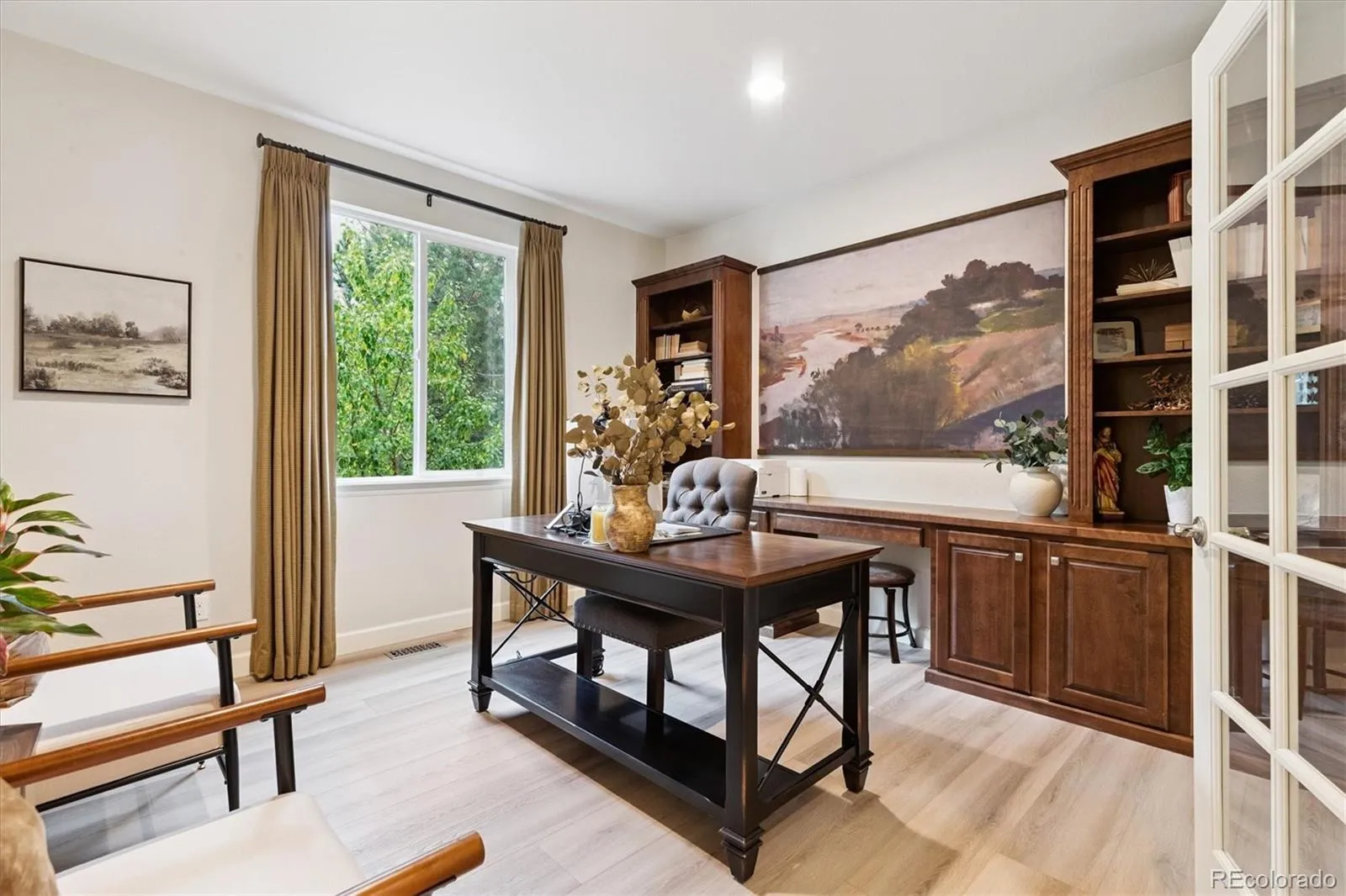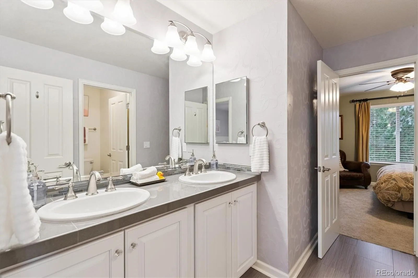 Spectacular 2-story corner-lot beauty tucked away on a quiet street, backing to miles of open space & trails in beautiful Canterberry Crossing one of Parker’s premier neighborhoods! Professionally finished yard with walkways, garden beds, and fencing offers the perfect outdoor retreat. Step inside to a bright completely updated open-concept floorplan featuring extensive luxury vinyl plank floors. This former model home offers gourmet kitchen boasting stunning cherry cabinets, granite countertops, stainless steel appliances, a gas cooktop island + breakfast bar, double oven, and loads of natural light. The inviting family room has a cozy gas fireplace, open concept living and surround sound. Main level also offers a den/study including practical built-ins with French doors. Elegant formal living or dining room, charming powder bath, and a spacious laundry/mud room with wash sink, storage, and garage access. Upstairs, the expansive primary suite is a true retreat with a double-sided fireplace, spa-like 5-piece bath with heated floors, soaking tub, glass shower, dual vanities, and a massive walk-in closet. Three additional bedrooms up, including an ensuite guest room with private bath, plus roomy secondary bedrooms with walk-in closets & ceiling fans and shared jack n’ jill bath. The recently finished basement is designed for entertaining with a massive great room, kids’ bonus room, (non conforming) guest suite & beautiful 3/4 shower bath. Don’t miss the unfinished storage for all your gear. Tankless H2O heater, large efficient furnace. Large 3-car garage completes this home! Unmatched quality, detail, and location—don’t miss this opportunity! Community amenities include a clubhouse, swimming pool, and tennis courts. Walking distance to Frontier Valley Elementary (~0.5 miles), Cimarron Middle School (~0.3 miles), and Legend High School (~0.7 miles). HOA dues covering snow removal, grounds, trash, recycling, and common-area maintenance.