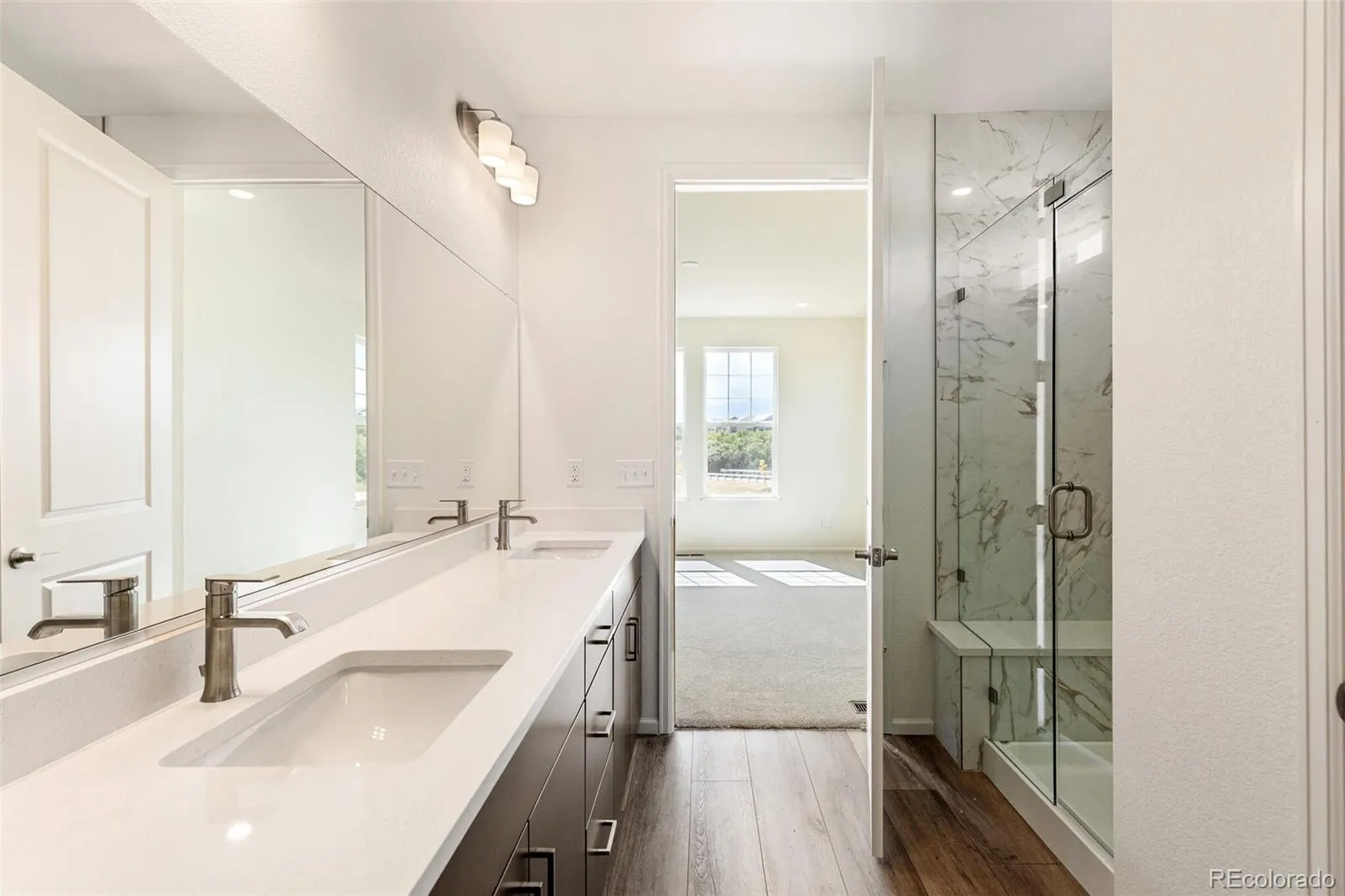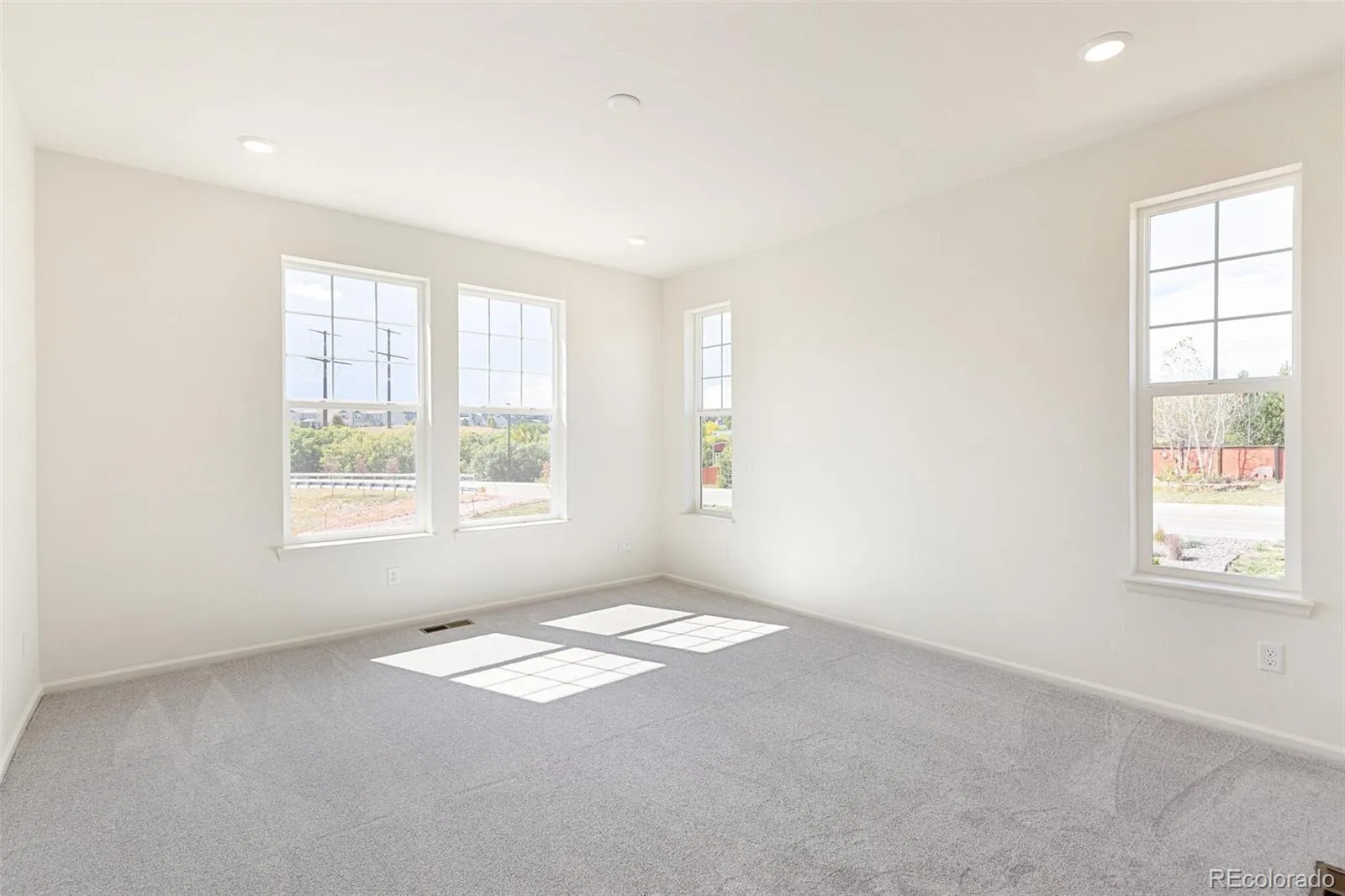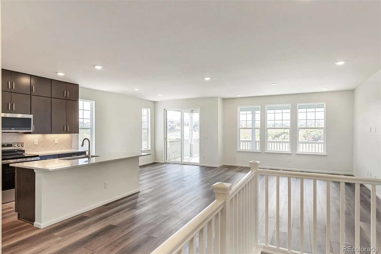 This one story finished basement home is surrounded by nature with panoramic views on a large corner lot at the end of a cul-de-sac. Inside, discover an open floor plan with 9ft ceilings. This spacious great room for friends and family gatherings as you are able to walk directly out to the oversized covered deck which is an extension of living space. On the main floor the stylish kitchen boasts of a large island, Whole House 1951 Lubbock Full Overlay Slab Panel Slate Stained Maple Cabinets. Frost White Quartz counter tops accented a beautiful natural backsplash. GE stainless steel electric range, dishwasher, microwave. On the main floor the primary suite showcases large walk-in closet, and a connecting spacious primary bathroom with a large seated walk in shower. Welcome home as it is both nature and city, work and play, adventure, and leisure. Nature is right out your door. You can enjoy walking and hiking trails that wind through the entire community. If you just want to sit and relax, within walking distance is the Swim Club/pool. The Swim Club (Clubhouse ) is a warm gathering space, big screen TV, and fireplace. Terrain also offers the Dog Bone Park where you can unleash your 4-legged family members and let them run free. Also enjoy Wrangler Park with tennis courts, a picnic pavilion, playgrounds, and play fields. Centrally located on the plateau is Ravenwood Park with spectacular views, playground, and a long in-ground slide. The Listing Team represents builder/seller as a Transaction Broker