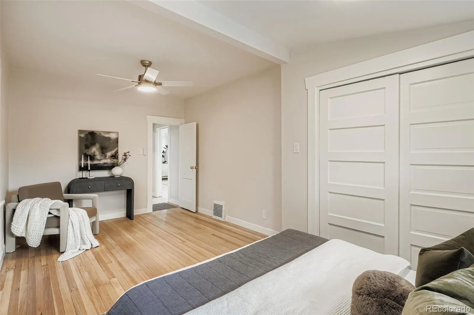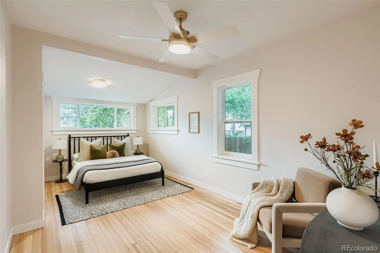 Open House Saturday 10/4 from 12-2pm. Beautifully remodeled historic 4br 2ba bungalow in Whittier with mountain views! Perched on a spacious 6250 sqft corner lot, this home has been thoughtfully renovated top to bottom: brand new white shaker cabinets, quartz countertops, tile backsplash, Cosmo appliances, and a huge new pantry with shelving and workspace. Refinished original hardwoods, original solid wood doors, and new 5″ baseboards bring charm and warmth throughout the main level. The oversized primary bedroom fits a king bed with ease. Enjoy new windows upstairs and 3 new egress windows plus reglazed originals with new hardware downstairs. The basement boasts over 7 foot ceilings, egress in family room, newly poured concrete floors, carpeted bedrooms, both with egress, a 5-piece luxury bath with freestanding soaking tub, LED mirror, and original cedar closet. All-new can lights, sputnik and rattan fixtures, switches and outlets, plus central AC, furnace, hot water heater, and updated panel and plumbing. Cozy up to the refreshed fireplace, belly up to the bar, or relax in the freshly landscaped backyard with luscious green grass & new cedar fencing, gates, and electrical for lighting or a fire pit. Refinished front porch, newly landscaped yards, and an attached oversized 1-car garage complete the package. Walk to RiNo, Five Points, & City Park, and just minutes to Downtown.