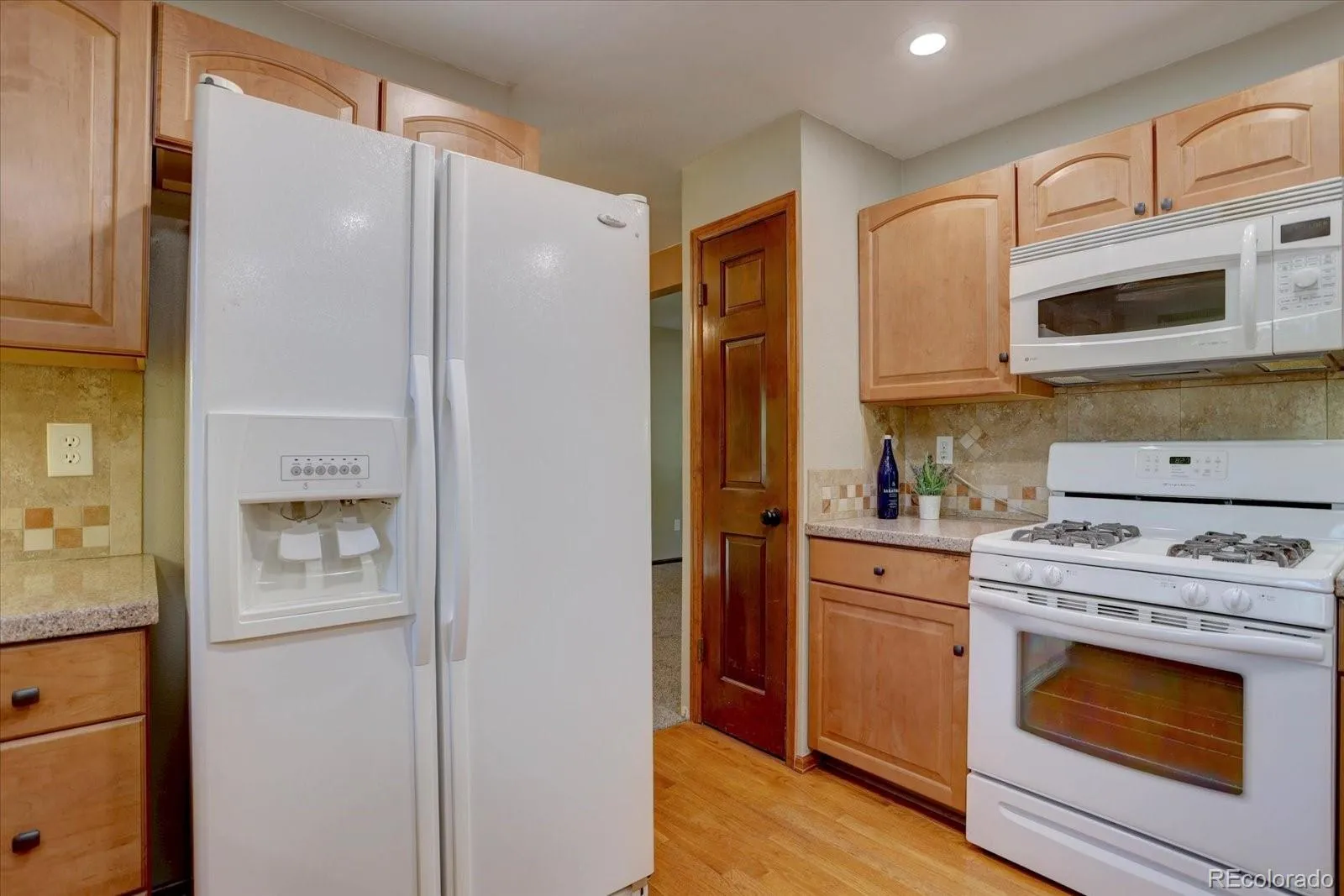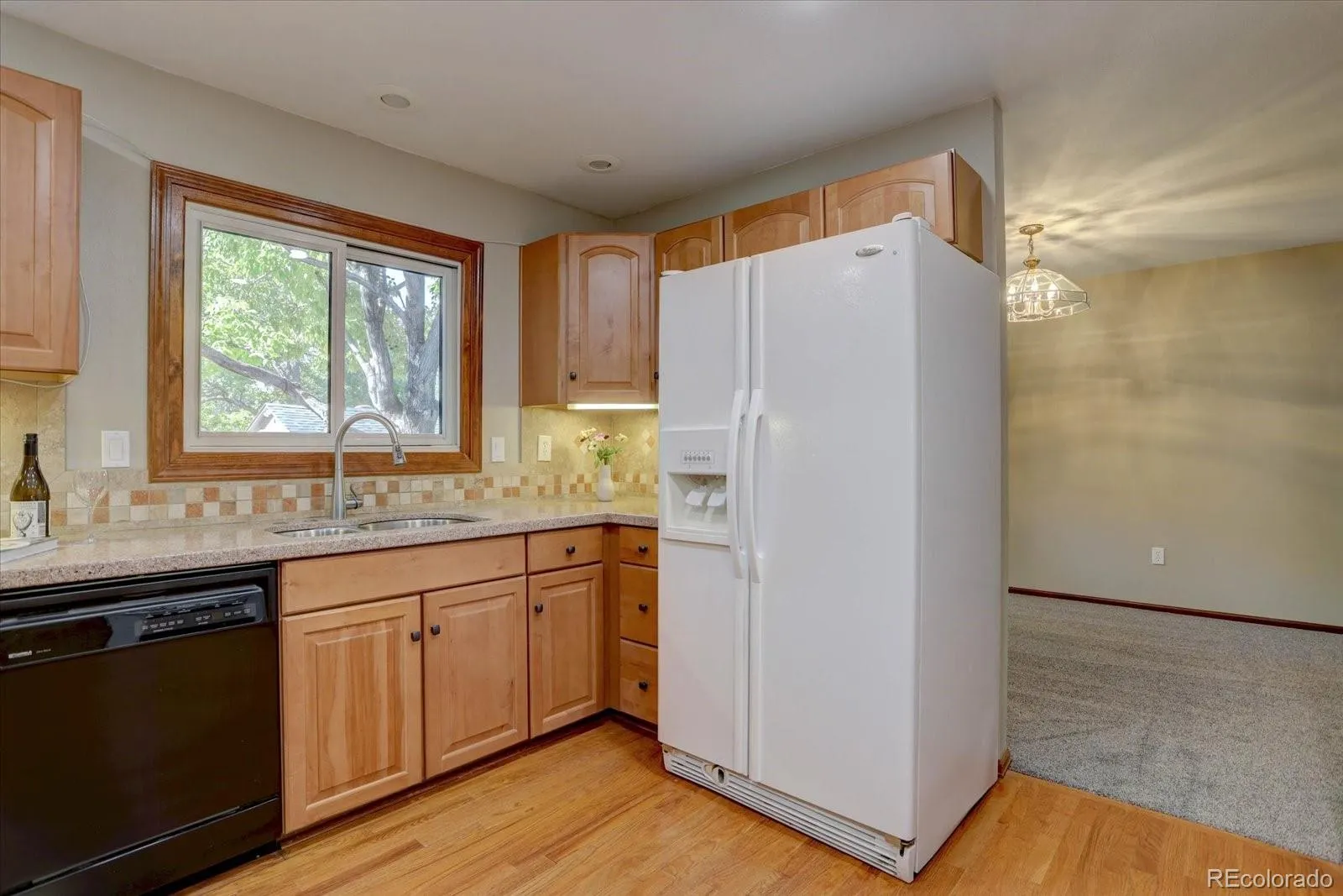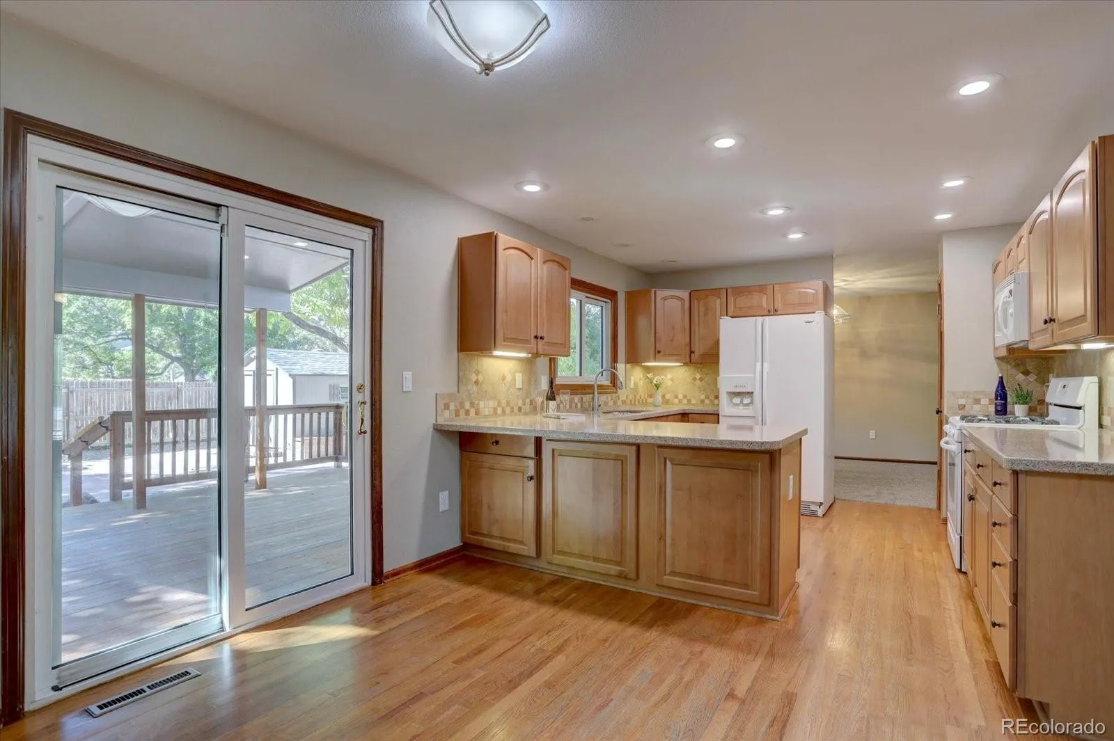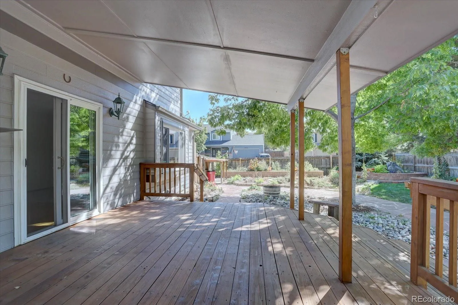 Step onto the welcoming covered front patio and into a spacious entryway that opens to a bright living room with a bay window and cozy window seat overlooking the front yard. The dining room is perfectly situated just off the kitchen, which features updated cabinets, quartz countertops with a stylish tile backsplash, recessed and under-cabinet lighting, a pantry with pull-out drawers, and a sliding glass door leading to the recently re-stained covered deck. A cozy family room with a wood-burning fireplace and a convenient half bath complete the main floor.