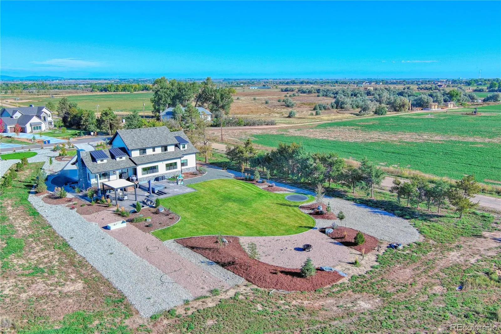 Modern Luxury with Majestic Mountain Views located in Longmont. Set on just over an acre, this striking modern residence offers a rare combination of elevated design, privacy, and panoramic views of the Rocky Mountains. Built for those who value both form and function, the open-concept layout features expansive living spaces filled with natural light, soaring ceilings, and sleek architectural lines. The fully finished basement expands the home’s versatility with two additional bedrooms, generous living space, and endless potential for guest quarters, a home gym, and a media room. The professionally landscaped backyard is a true showpiece—ideal for entertaining or unwinding; offering multiple outdoor lounge areas, room for a custom fire pit or spa, and unobstructed views that stretch for miles. Tucked away in a quiet enclave yet within 15 minutes of vibrant downtown Longmont, top-rated schools, trails, and Boulder amenities, this home delivers an unmatched lifestyle of peace and luxury and is complete with Jelly Fish lighting.