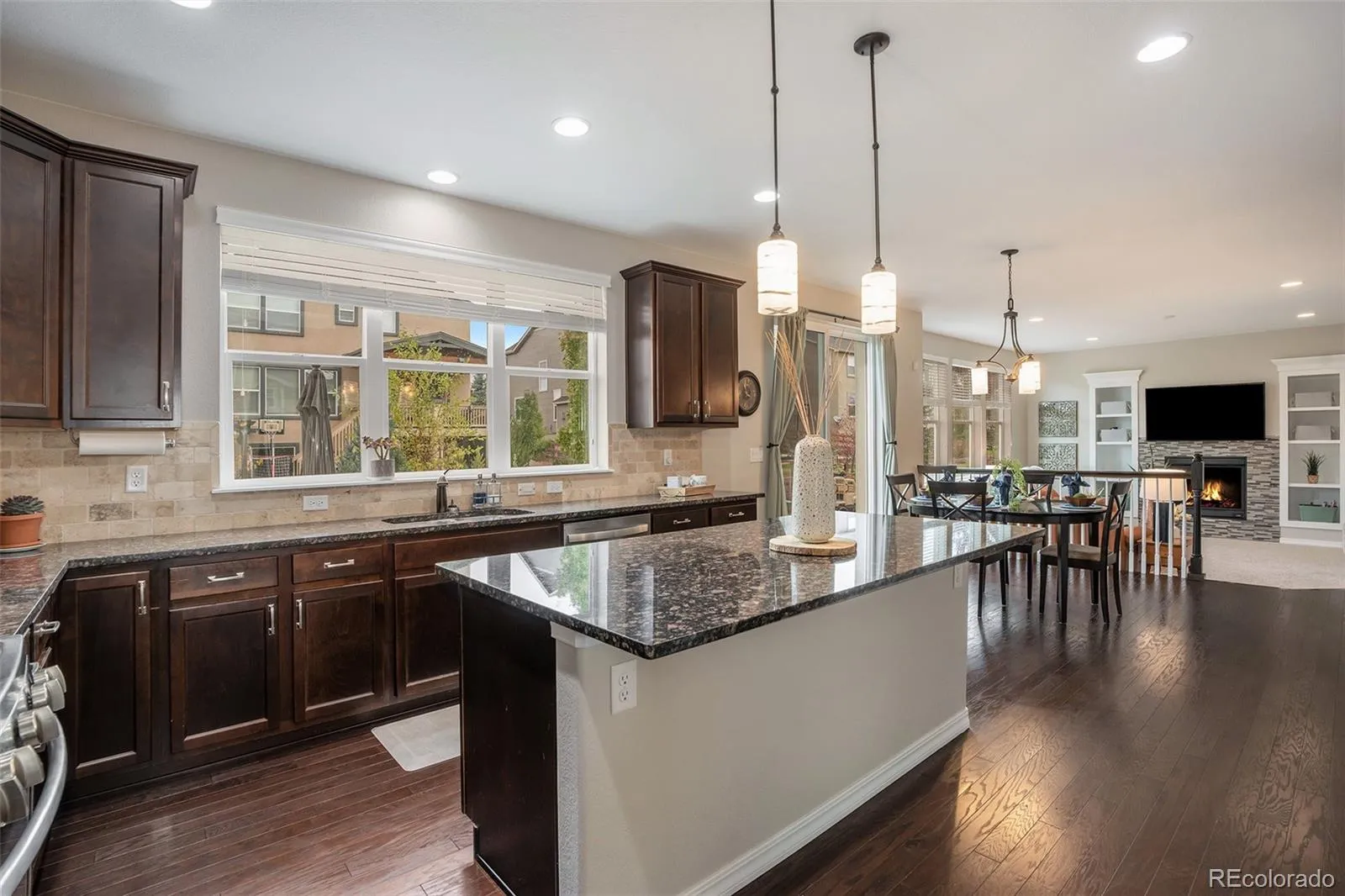 OPEN HOUSE SATURDAY, OCTOBER 4TH 11AM-1PM***Don’t miss this must-see home located on a quiet cul-de-sac in the highly sought-after Wolf Ranch community! The moment you step inside, you are greeted with a grand entry, a sweeping staircase, and high ceilings, setting the tone for elegance and spacious living. Beautiful wood floors flow through the entry, kitchen, and dining areas, welcoming you into an open-concept great room that’s ideal for entertaining. The gourmet kitchen is a chef’s dream with granite countertops, a stylish tile backsplash, a gas range, a large kitchen island, pantry, and elegant 42” cabinetry with crown molding. The kitchen and nook flow right into the great room featuring a gas fireplace with tile surround. A large functional dining room, a main-level dedicated office, plus a mudroom with built-in shelves completes the main floor. Upstairs, you’ll find a luxurious primary suite with a 5-piece bath, double vanity, contemporary tile shower, soaking tub, and walk-in closet. Three additional spacious upper-level bedrooms, one with its own private bath and walk-in closet, and two sharing a Jack and Jill bath with individual vanities. An upper-level laundry with utility sink adds extra convenience. The finished basement offers 9’ ceilings, a stylish wet bar, a huge family/rec room wired for surround sound, an additional bedroom with walk-in closet and a full bath, perfect for entertaining or multi-generational living. Outside, relax and enjoy the mountain view from the stamped concrete patio with fenced yard, a 3 car tandem garage, plus a South facing driveway which allows for snow melt! The community features a pool and clubhouse, parks, and top-rated schools, so don’t miss your opportunity!