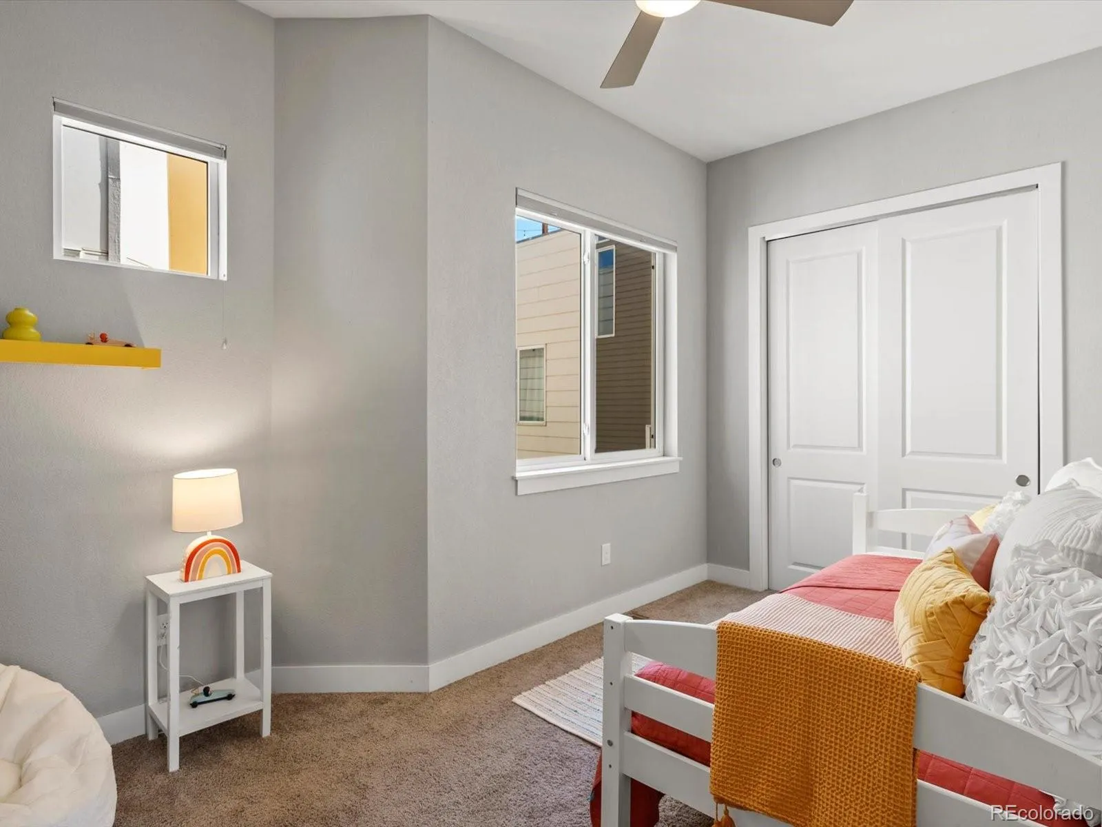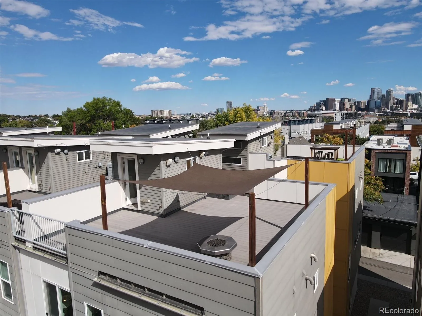 Modern livability & gorgeous finishes make this chic townhome your perfect new home! Open floor plan is full of natural light accented by dark wood floors and luxe lighting. Kitchen has quartz counters, kitchen aide appliances & great layout for your inner chef. Voluminous primary suite with walk-in closet & spa-like bathroom with rain shower head. Additional spacious bedroom on 2nd floor. The huge rooftop deck has breathtaking views of the Front Range, plus captivating city & mountain views. Get ready to host all of your parties here! Gas & water lines on the deck make entertaining a breeze! Over sized 2 car garage with EV charging. Walk friendly neighborhood to restaurants, breweries, Sloan's Lake, or Jeff Park.