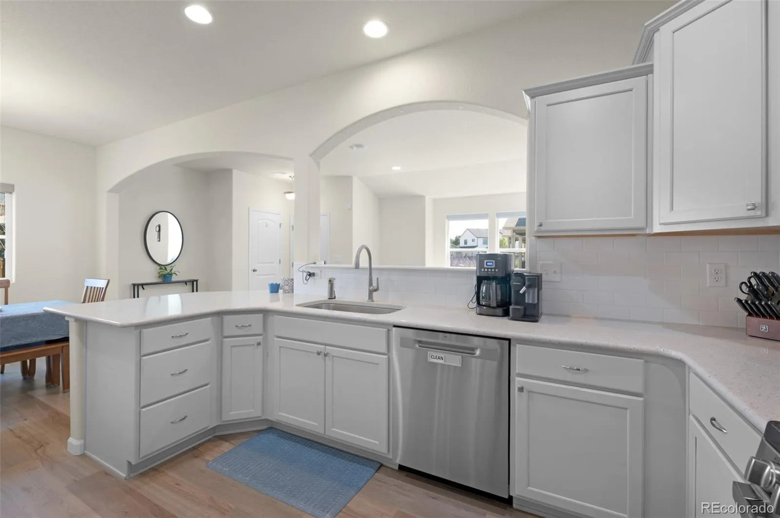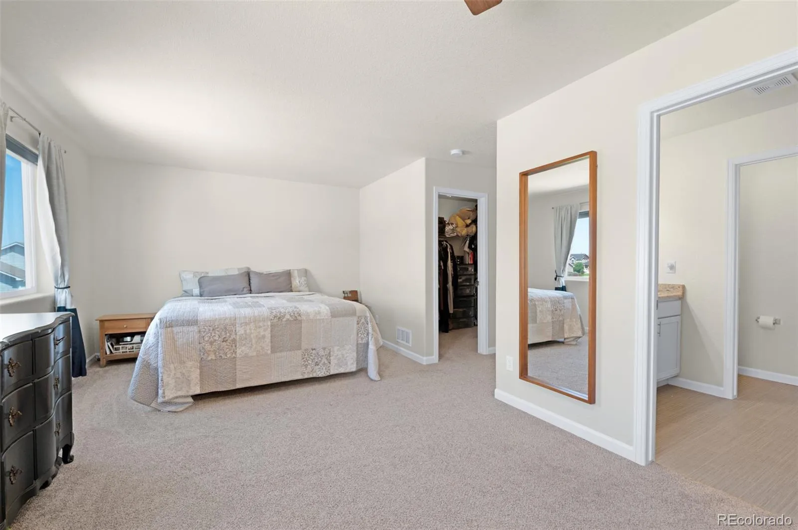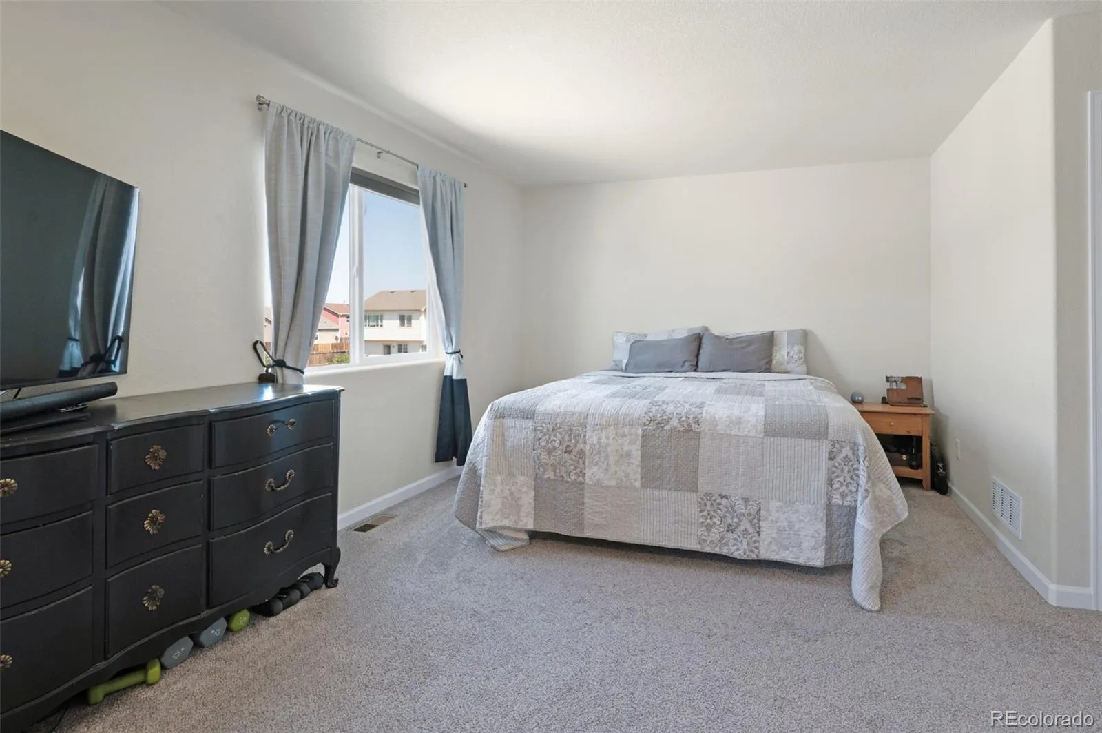 Nearly-new end unit in Lorson Ranch delivers light, space, and low-maintenance living—perfect for busy weekdays and easy weekends. A covered front porch sets the tone; inside, 9-ft ceilings and luxury vinyl plank tie together an open kitchen/living/dining designed for gatherings. The kitchen shines with granite, stainless appliances, gas range, pantry, and crown-topped cabinetry. Just off the kitchen, the attached 2-car garage with epoxy floor keeps gear organized. Upstairs, all three bedrooms have walk-in closets; the oversized primary retreat adds flex space for a reading nook, WFH desk, or Peloton, plus a stylish en-suite. Upper-level laundry = everyday convenience. Outside, enjoy a private patio and quick access to neighborhood green spaces/playgrounds and nearby shopping/dining. Built in 2022, move-in ready with central A/C and smart-home touches. The HOA handles snow & trash—so you can lock, leave, and live well.