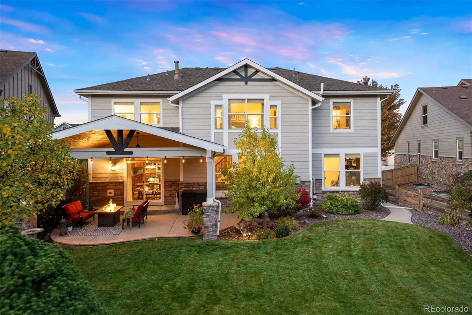 Beautifully positioned in Firelight, this 5-bed, 5-bath home offers an ideal floor plan with space for every lifestyle. The main level features a private office overlooking the lush backyard—perfect for working while enjoying the seasons—along with a spacious kitchen and dining area designed for gatherings. Upstairs, four bedrooms and three baths include a luxurious primary suite with a large walk-in closet with built-ins, a Jack-and-Jill bath connecting two bedrooms, and a fourth bedroom with an en suite. The finished basement expands the living options with a bedroom, bath, bar, and two versatile flex spaces ideal for play, fitness, or movie nights.
