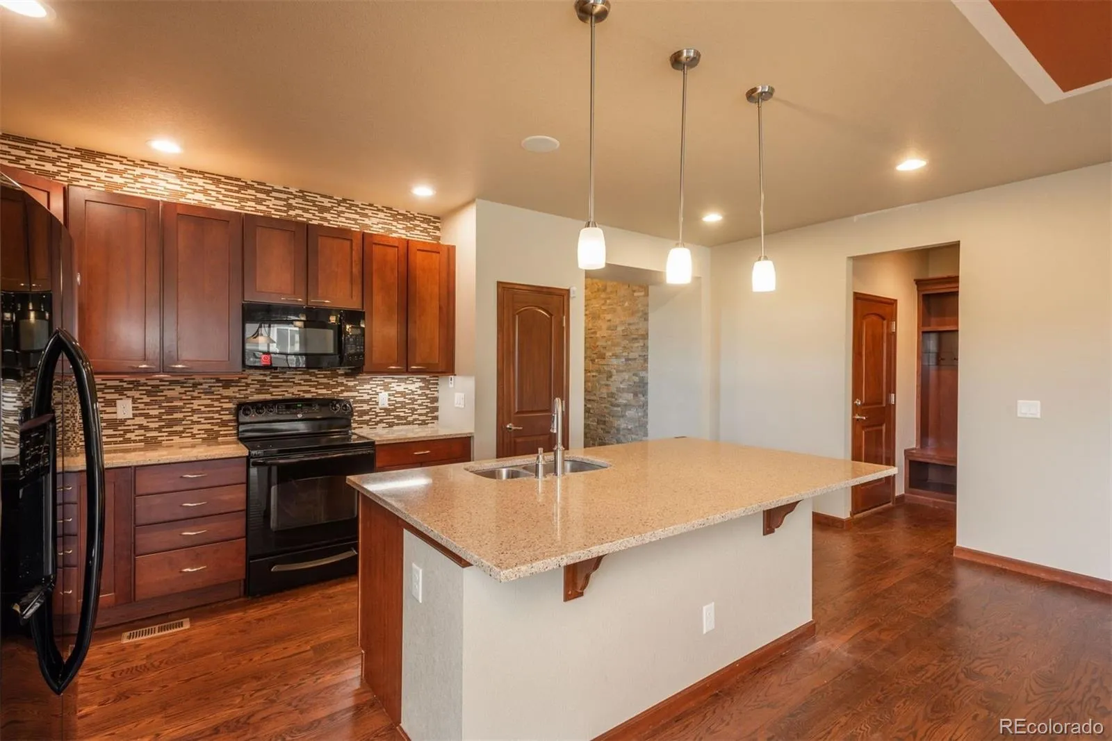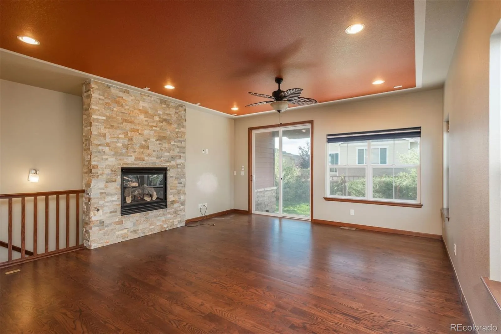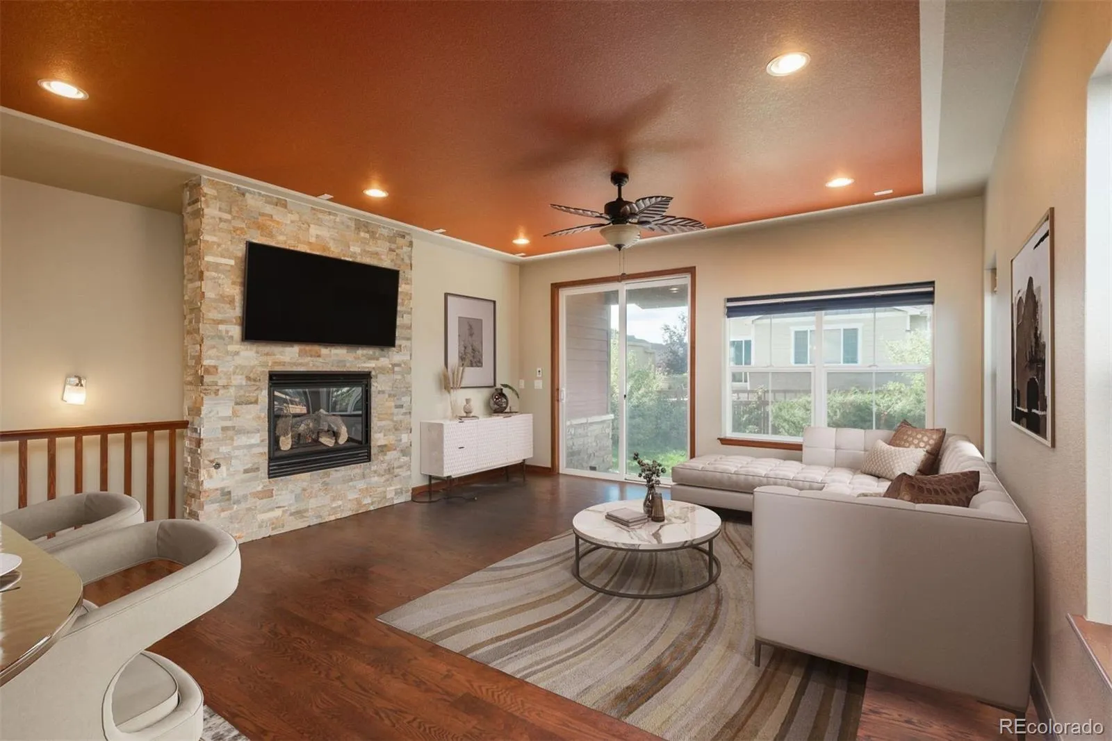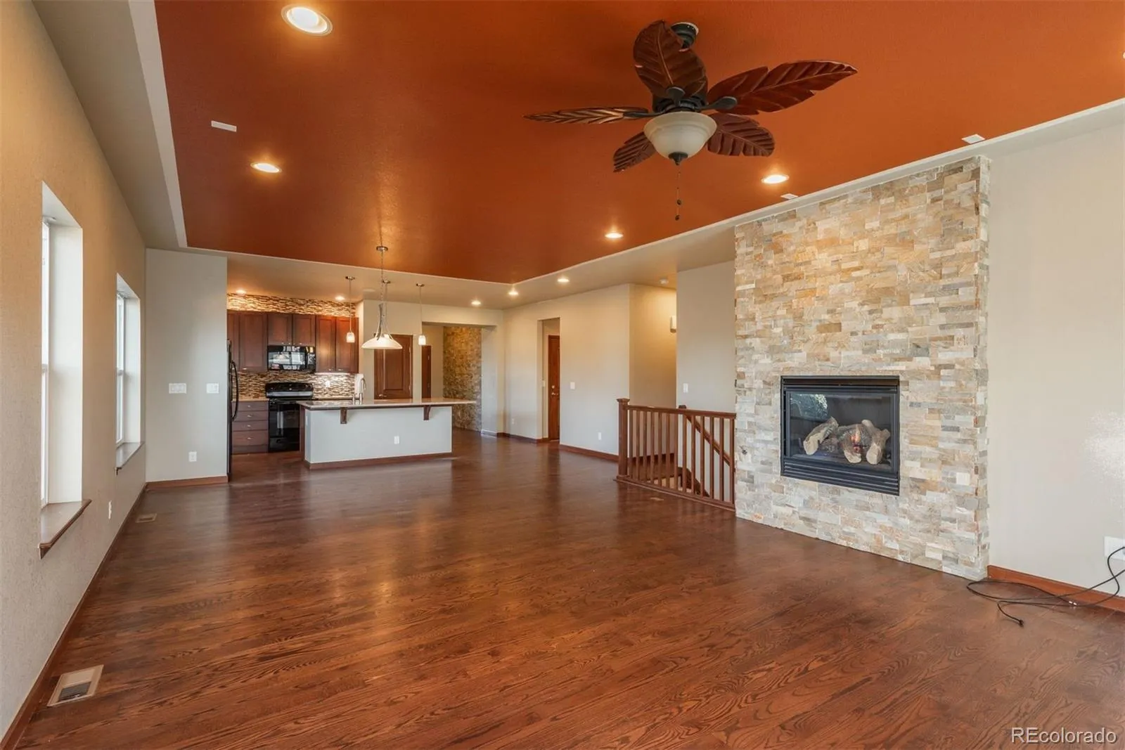 Welcome to this beautifully appointed corner-lot model home nestled in the heart of Aurora’s vibrant Painted Prairie community, where thoughtful design blends seamlessly with everyday comfort and convenience. From the moment you step inside, you’re welcomed by a warm and inviting entryway that flows effortlessly into the main living areas. Rich engineered hardwood flooring stretches across the main level, leading you to an expansive living room anchored by a stunning custom stone fireplace offering both elegance and a cozy focal point. Just off the main hallway, a private study provides a quiet space ideal for working from home or managing day-to-day tasks. The open-concept kitchen serves as the true heart of the home, featuring sleek quartz countertops, upgraded cabinetry, and high-end finishes. Perfectly integrated with the dining and living areas, this space is designed for both effortless entertaining and relaxed everyday living. The primary suite is conveniently located on the main floor, offering a peaceful retreat complete with an en suite bath and a generous walk-in closet. Downstairs, the finished basement continues the home’s elevated feel with a large recreation or media area, an additional bedroom with a full bathroom, ideal for guests, and a versatile unfinished space ready to be transformed into a fourth bedroom, home gym, or creative studio. Set in one of the Denver Metro area’s most exciting neo-traditional communities, this once model home offers direct access to 129 acres of open space, parks, trails, and community gardens. You’re also just minutes from the future Town Center, local dining options, The Gaylord Resort, and Denver International Airport.