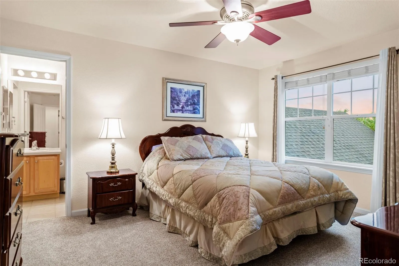 Huge 20K Price Improvement! Nestled at the end of a peaceful cul-de-sac on nearly a quarter-acre lot with mountain views, this meticulously maintained 5-bedroom, 5-bathroom home (plus main floor study) checks all the boxes—with a fully finished walk-out basement and highly functional floorplan designed for both everyday comfort and effortless entertaining. The main level features a grand entryway, gleaming hardwood floors, a spacious formal dining room, and an open-concept living area anchored by a cozy gas fireplace. The gourmet kitchen is a chef’s dream—offering ample granite counter space, a large center island with breakfast bar seating, a sunny nook, 42” honey oak cabinets, and black appliances—all with direct access to the expansive outdoor deck. The main floor also includes a private home office with French doors, an oversized 8′ x 12.5′ mudroom, and a unique split 3-car garage setup with an oversized 2-car plus a separate carriage garage. Upstairs, you’ll find a massive 15′ x 21′ primary retreat with a spa-inspired 5-piece bath, soaking tub, glass shower, dual vanities, and a jaw-dropping 13′ x 15′ walk-in closet. A generously sized secondary bedroom features its own ensuite and walk-in closet, while two additional bedrooms share a full Jack-and-Jill bath. The walk-out basement offers bonus living space galore—including a large rec room, dedicated game area, wet bar with fridge and microwave, a private guest suite with adjacent ¾ bath, and a 14.5′ x 35′ storage room. Step outside to a covered patio and fully landscaped backyard with mature trees and shrubs—perfect for relaxing or entertaining year-round. Big-ticket updates include newer Andersen double pane windows, furnace, A/C, and tankless water heater (2021), plus a new Class 4 impact-resistant roof installed in 2022. Located within top-rated Cherry Creek Schools and minutes from shopping, dining, parks, trails, and everything you need—this is a rock-solid home in a truly exceptional location!