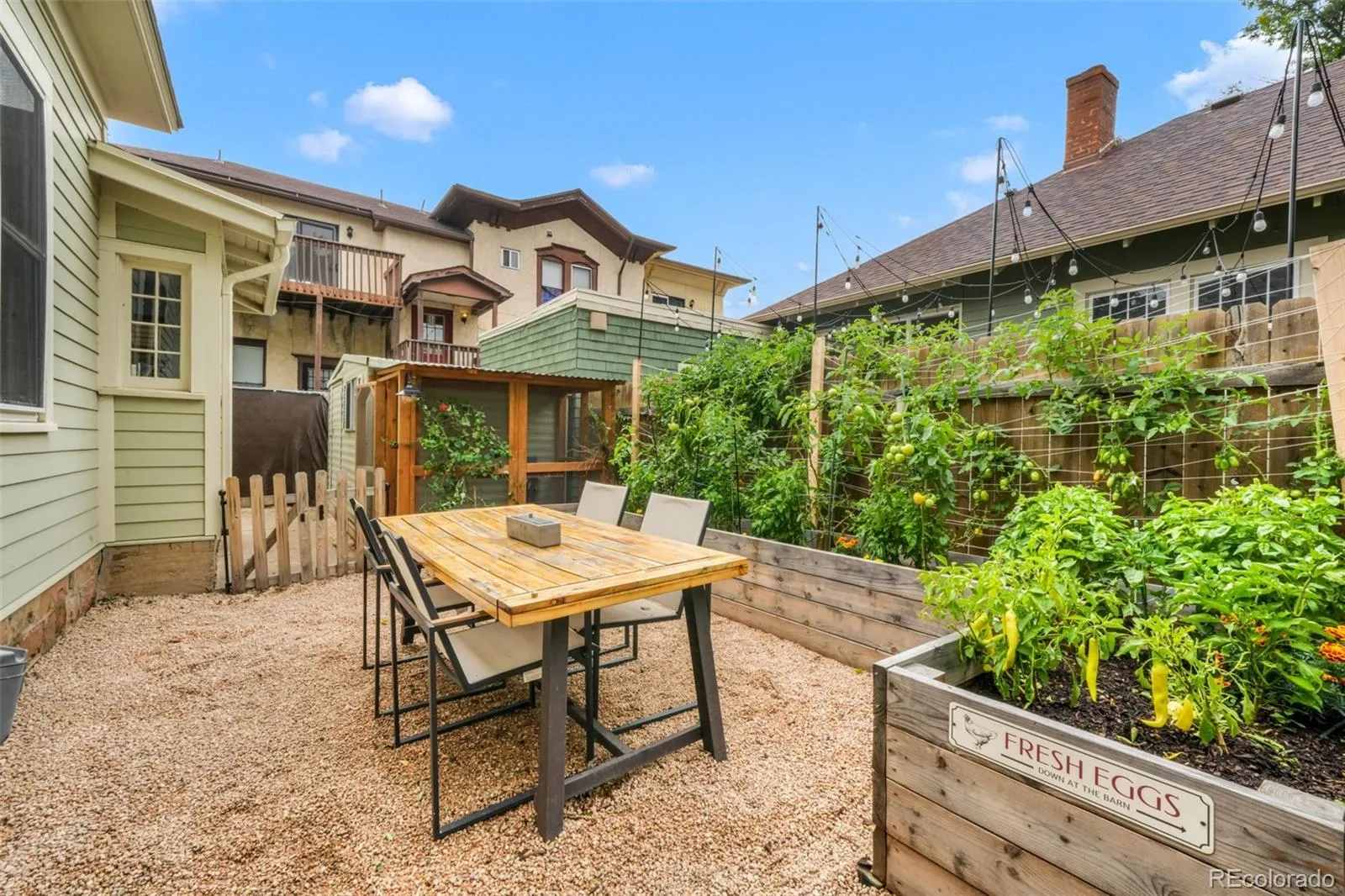 Welcome to this beautifully updated Craftsman cottage located in the heart of Colorado Springs’ highly sought-after Old North End neighborhood. A perfect blend of classic charm and modern sophistication, this home effortlessly combines the timeless elegance of its original design with the thoughtful updates and conveniences of today’s lifestyle.From the moment you arrive, you’ll be captivated by the home’s inviting curb appeal, complete with a new front fence, lush landscaping, and raised garden beds. Step inside to discover warm hardwood floors, intricate original woodwork, tall ceilings, and custom molding that reflect the historic character of the home. The spacious front living room offers stunning views of Pikes Peak and provides a welcoming space filled with natural light, ideal for both everyday living and entertaining.The fully remodeled kitchen is a true centerpiece, featuring sleek stainless steel appliances including a gas range with downdraft hood, dishwasher, and refrigerator. Custom cabinetry, quartz countertops, and a reverse osmosis water system offer a perfect balance of beauty and functionality. Adjacent to the kitchen, a dedicated dining area with hardwood floors and classic trim.The primary suite is filled with light and features a generous custom walk-in closet with built-in shelving. The newly renovated bathroom includes a deep soaking tub, elegant custom tile, and all-new fixtures. A large, updated mudroom and laundry room at the rear of the house provides extra storage and leads out to the patio. Here, you’ll find even more to love, including a chicken coop and space to garden, relax, or entertain. This home has been meticulously maintained with key updates including a new electrical panel and wiring, central air conditioning, high-efficiency furnace, sprinkler system, updated siding, and fresh paint inside and out. Every detail has been thoughtfully curated to preserve the home’s character while offering peace of mind and modern comfort.