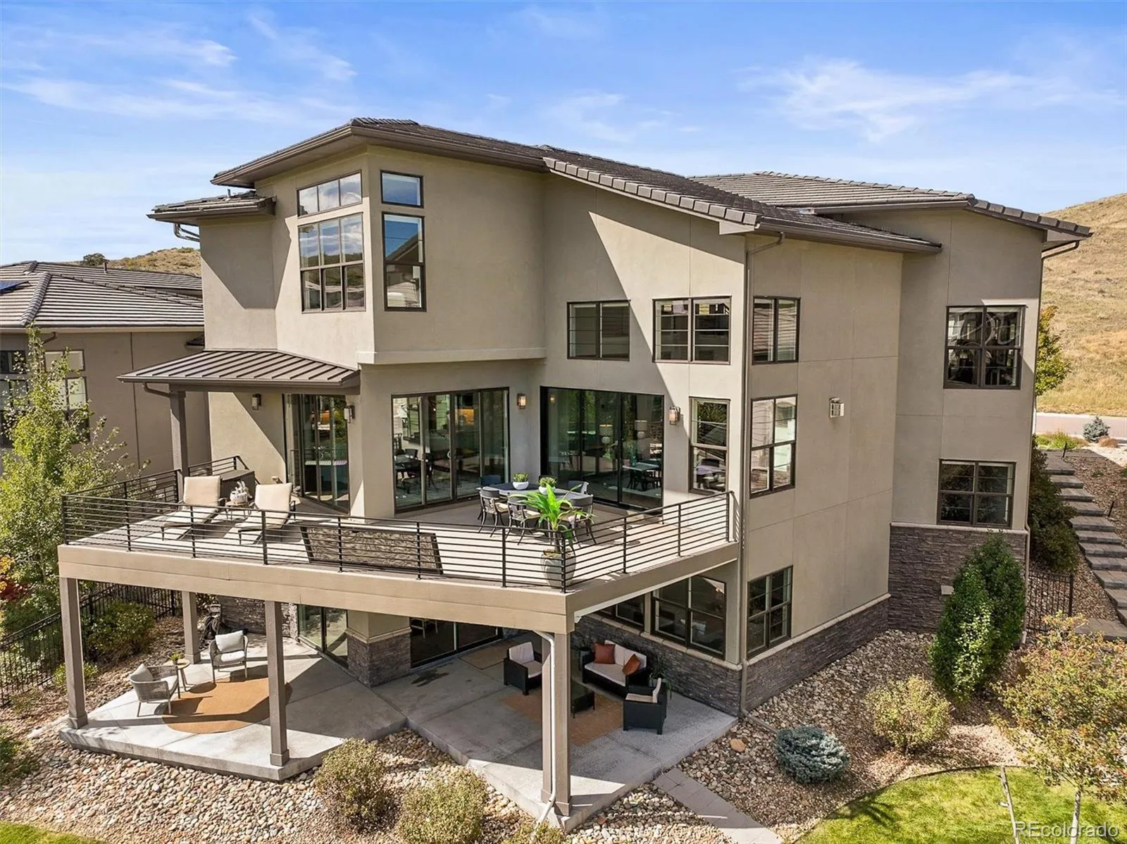 Vacant! Easy to Show! Shows like a model home. Welcome to 10814 Bluffside Drive in The Retreat at RidgeGate in Lone Tree, where luxury meets nature. This stunning home backs to open space along Cottonwood Creek and showcases breathtaking views of the bluff. With 6 bedrooms, 5 baths, 2 offices, and an oversized 3-car garage, this home perfectly balances elegance and livability. The main floor features hardwood floors, formal dining room, butler’s pantry/bar, and a 2-story great room with a dramatic floor-to-ceiling tiled fireplace wall. The gourmet kitchen offers Wolf appliances—including a 6-burner Viking gas cooktop, Viking double ovens, microwave, Asko dishwasher, Sub-Zero refrigerator, quartz countertops, and a spacious eating area. Expand your living space outdoors with the 1,062 sq ft grand tree deck, accessible through three sliding doors including a Tri-fold sliding door, ideal for entertaining or relaxing while enjoying Colorado’s natural beauty. Upstairs, discover a study/piano room, loft, and a luxurious primary suite featuring tall ceilings, a spa-style 5-piece bath, free-standing tub, super-shower, and custom walk-in closet with access to the upstairs laundry. Additional bedrooms include an ensuite, plus two more with a Jack-and-Jill bath. The walkout basement extends your lifestyle with an office/gym, family room, playroom, full kitchen with pantry, second laundry, two bedrooms, and a dual-vanity bath, perfect for guests or multi-generational living. The concrete patio features an under-deck drainage system, making it a comfortable outdoor living space year-round. Great storage room and whole house humidifier. Ideally located near The Bluffs Regional Park, Lone Tree Rec Center, Park Meadows Mall, Skyridge Hospital, and DTC, this home offers unparalleled elegance and convenience with access to shopping, dining, trails, and light rail. Only lived in 2 years! Check out the drone fly through showing the home furnished: https://tinyurl.com/Bluffside