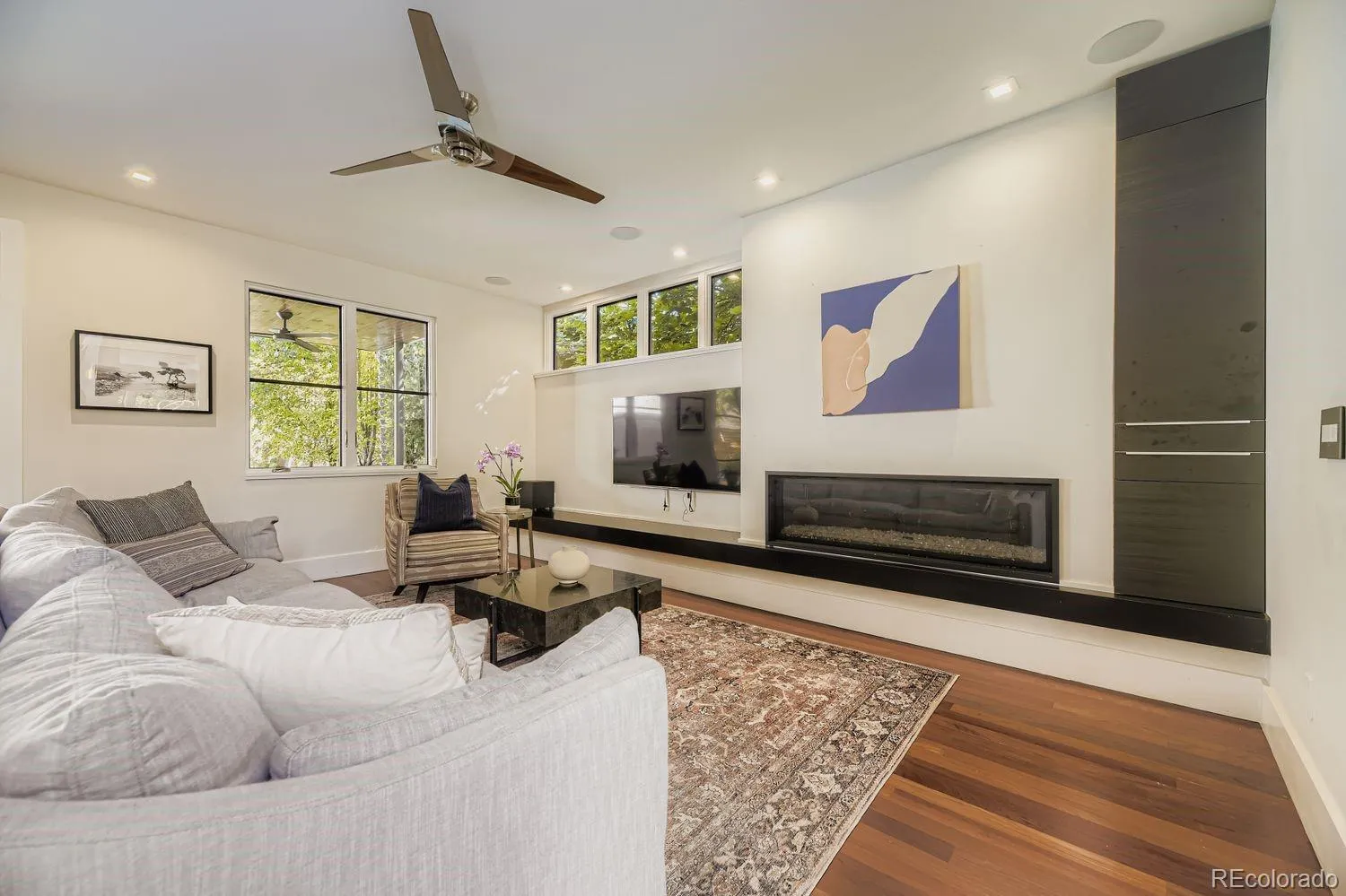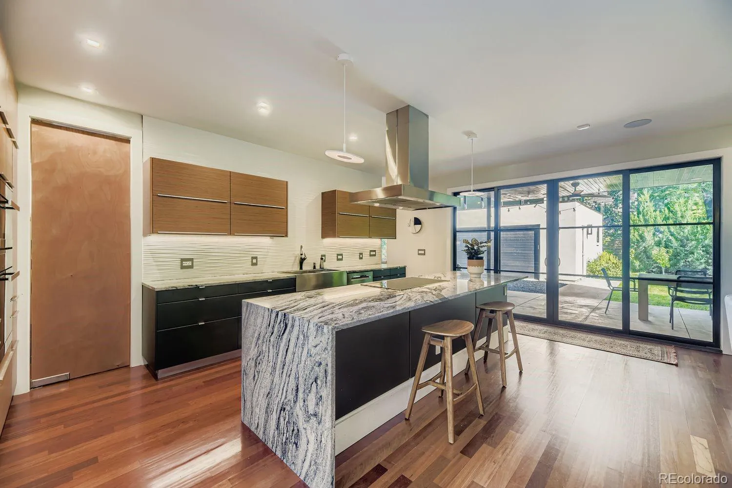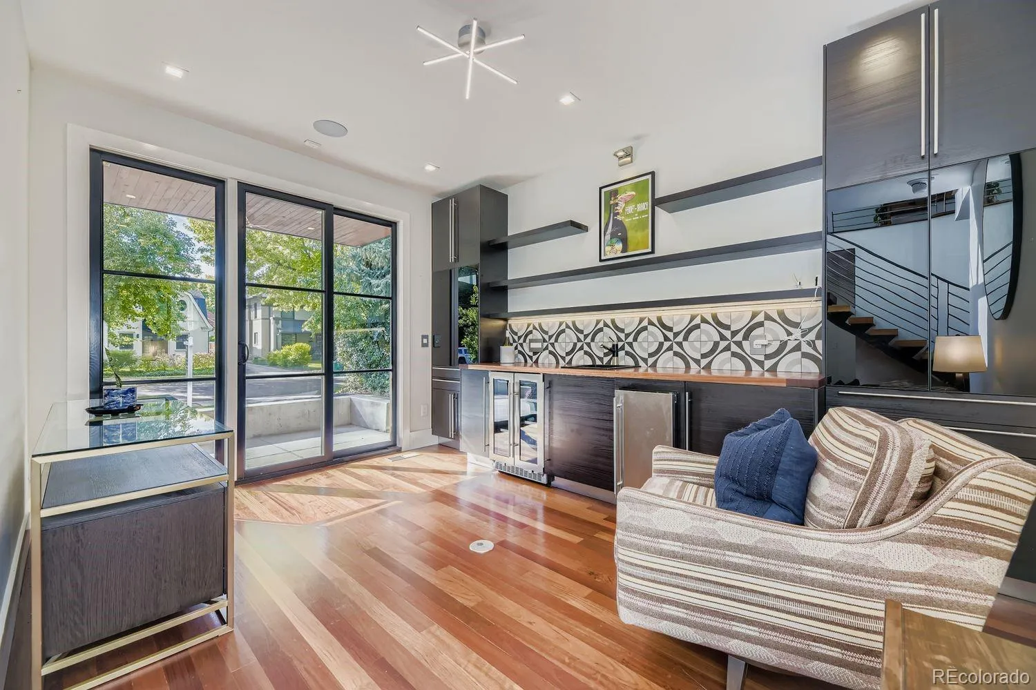 OPEN, LIGHT, SPACIOUS, CUSTOM design by renowned architect STEVE BARSCH. One of PARK HILL’s BEST BLOCKS & built to integrate indoor-outdoor living on all levels; oversized sliding doors open to the back yard, a 20ft focal window highlights western sunset hues and Clerestory Windows are throughout to optimize privacy while enjoying natural light. Stainless-Granite Waterfall Island Chef’s Kitchen has commercial grade Liebherr, Miele Appliances and a new Bosch dishwasher, including micro/convection oven upper & steam injection oven lower, induction cooktop w/Hood, Euro-Cabinetry and large walk-in pantry. Entertaining Room with built in bar, ice maker, beverage cooler, sink and 126 Bottle Blackened Glass Wine Storage (could be main floor office). Spacious and private primary suite with a 5 Piece Bath, zero-entry, walk in closet. The upper loft opens to a wrap around outdoor covered balcony with tree top views. New carpet in bedrooms.