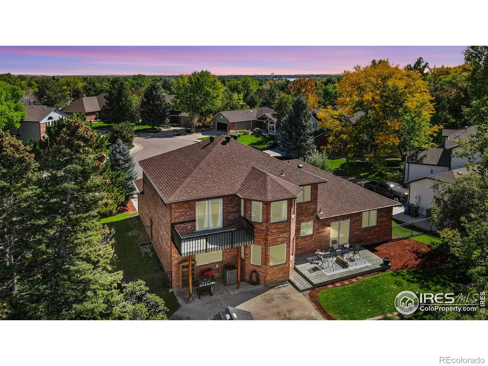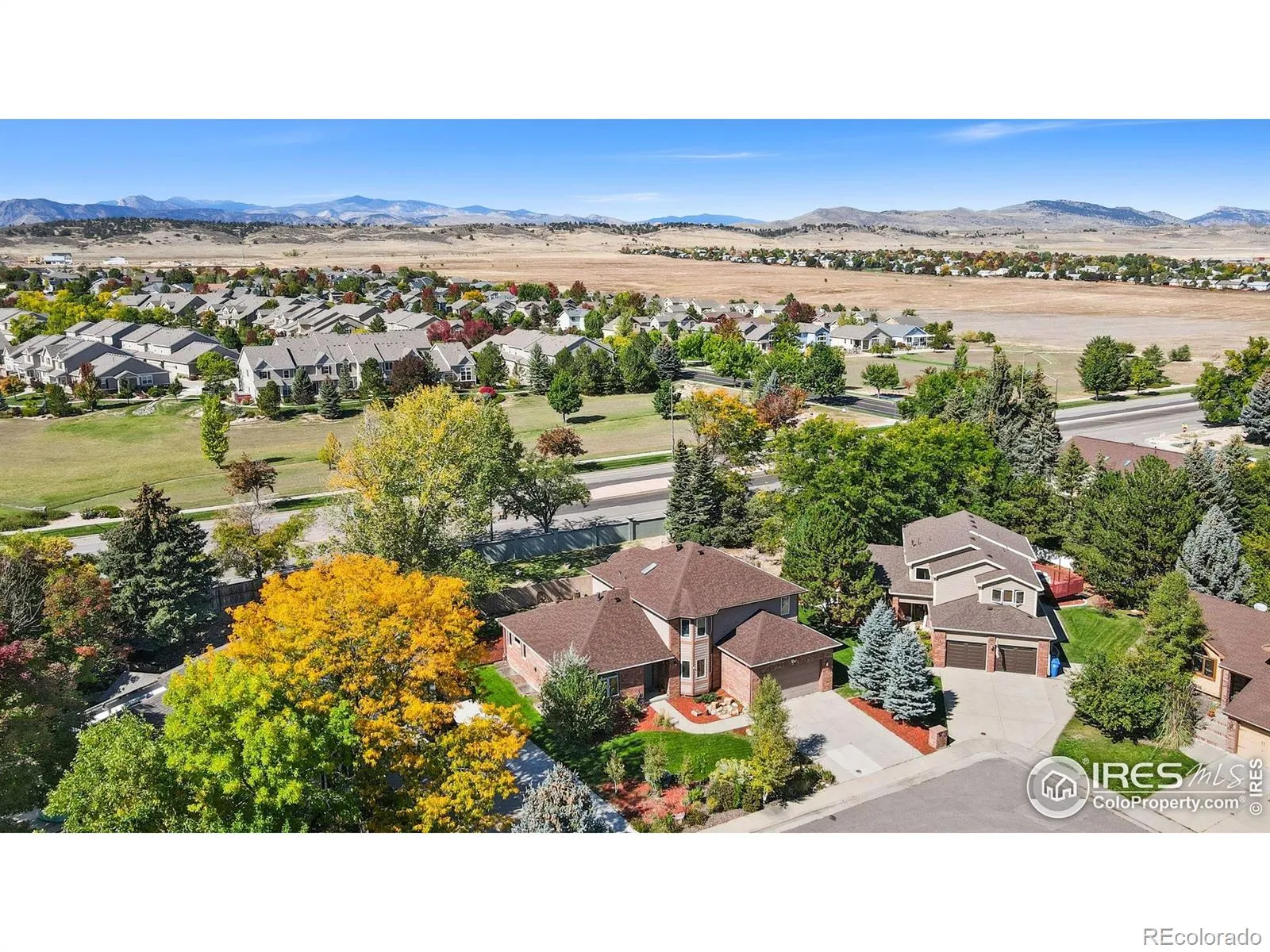 All-brick charmer on a cul-de-sac! This gorgeous home in the Fairway West neighborhood impresses with timeless curb appeal featuring a recently updated roof, and a professionally landscaped front yard that welcomes you as you arrive. The main floor was designed for entertaining, offering an open-concept layout with high ceilings, large windows that flood the space with natural light, and seamless flow between the living areas. The kitchen comes complete with stainless steel appliances, generous prep space, and abundant storage to keep everything organized and within reach. Choose a casual breakfast nook with a bay window overlooking the backyard, or enjoy the formal dining area with its own bay window facing the front. A spacious office with French doors adds flexibility to the space and can easily double as an additional bedroom. Upstairs, the home continues to impress with three generously-sized bedrooms, each featuring walk-in closets. The primary suite stands out with its vaulted ceilings, direct access to a private balcony with mountain views, and a luxurious 5-piece ensuite bathroom. Plus, a sunny, window-wrapped alcove is the perfect spot to relax with a good book or your morning coffee. The huge unfinished basement provides extensive space for expansion or additional storage, offering the potential to customize this area to suit your lifestyle needs. The fenced backyard is ready for gatherings with a raised deck and concrete patio. The large 3-car tandem garage offers ample space for vehicles, storage, or even a workshop. Located with convenient access to Loveland’s numerous amenities and hotspots, this home is just minutes away from downtown, The Olde Course, and Lake Loveland, providing easy access to recreational activities, shopping, and dining. No HOA or Metro District!