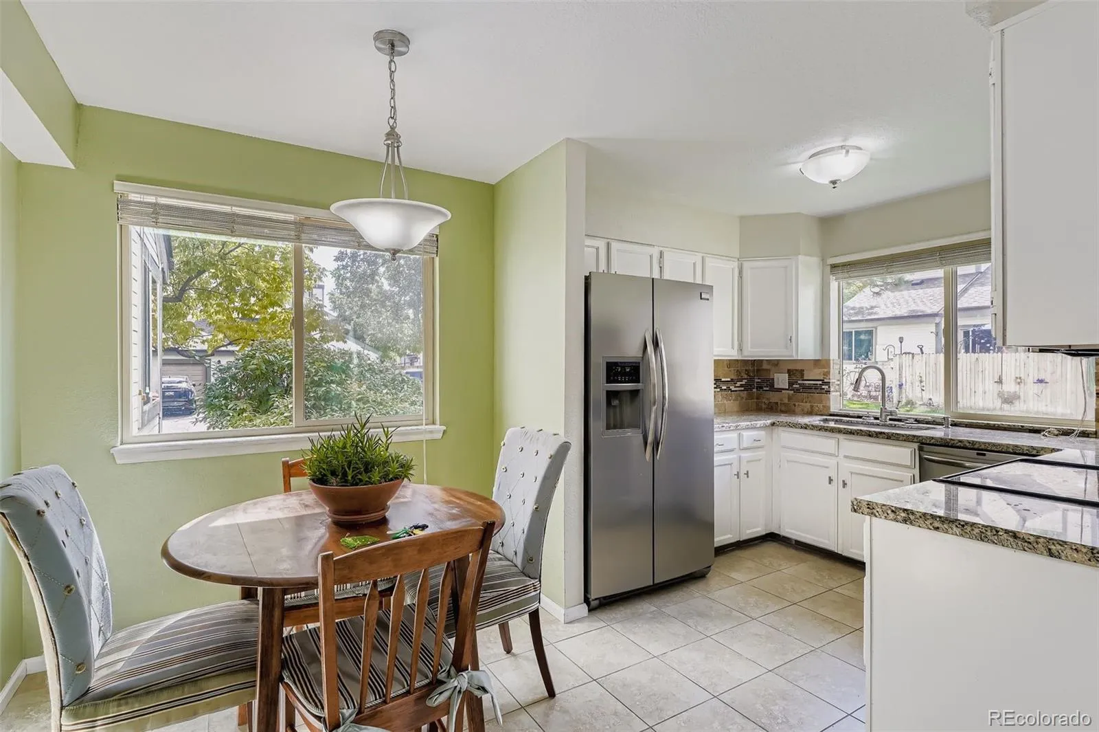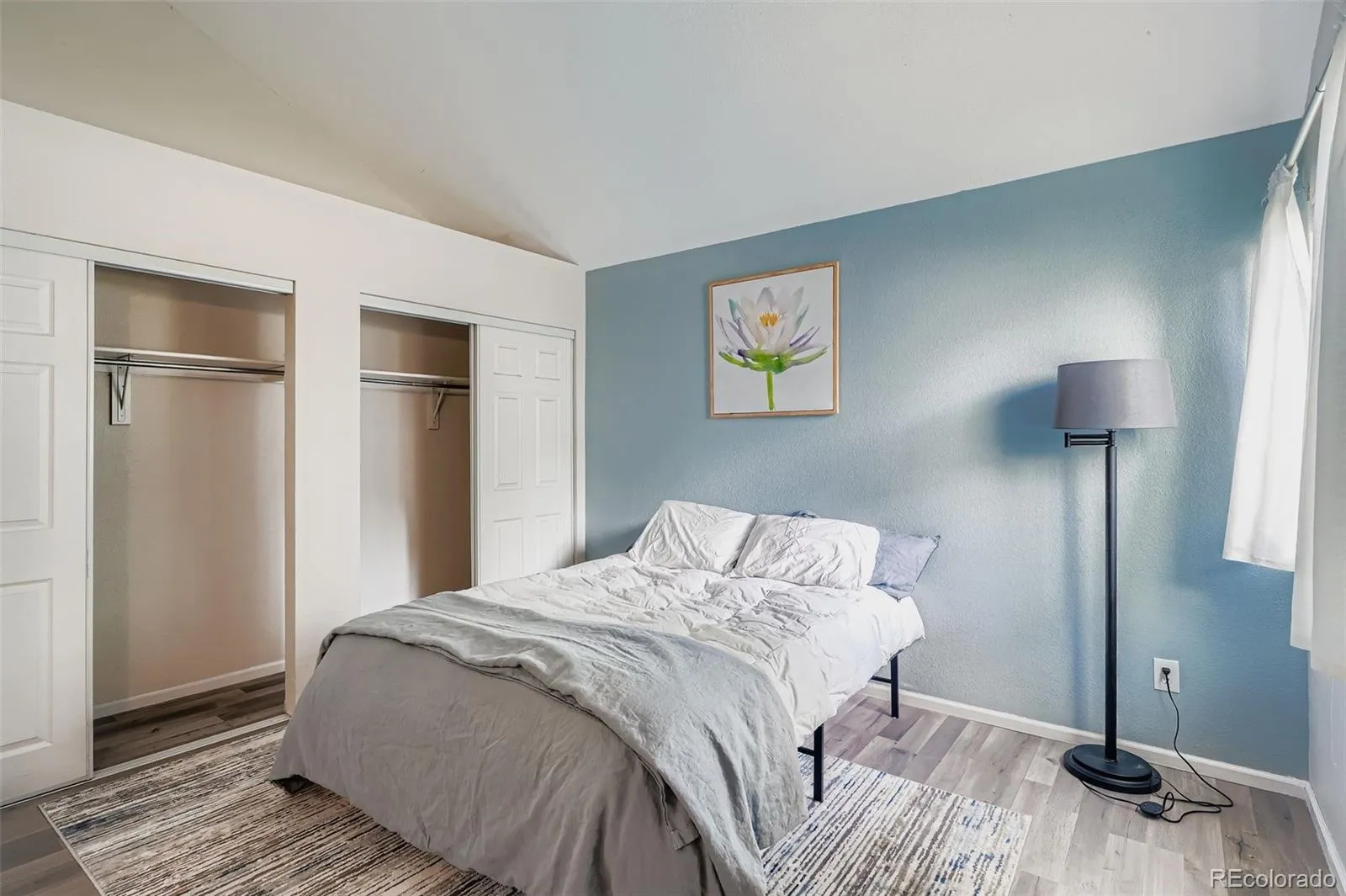 Bright & Charming Townhome in the Heart of Littleton. This beautifully updated townhome combines comfort, style, and natural light throughout. The main level boasts vaulted ceilings, new hardwood floors throughout the entire main living area, a cozy fireplace with a charming white mantel above nestled in the corner of the living room creating warmth and ambiance. The fully remodeled kitchen features granite countertops, tile backsplash, crisp white cabinetry, stainless steel appliances, showered by lots of natural light. Flowing from the kitchen a sunny dining area perfect for entertaining or a cozy eating space. The spacious main-level bedroom offers double closets, an en suite bath with newer cabinetry, charming lighting, and a Euro-style semi-frameless glass shower with beautiful accent tile. Upstairs, the second bedroom is filled with natural light from skylights and includes a large closet plus a full bath with a large white double vanity, granite countertop, modern light fixtures and mirrors with classic white tile accenting the bathtub surround. Additional highlights include a large family room on the main level, A private fully fenced patio with sliding glass door, perfect for cozy evenings and an extra hangout when entertaining guests, laundry area, brand new roof and gutters and an attached one-car garage with plenty of storage space above. This townhome is bright, inviting, and move-in ready—waiting for its next chapter!