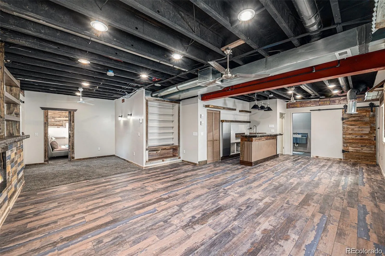 But the real showstopper? The seriously cool basement. With industrial-chic vibes, custom reclaimed wood finishes, a built-in bar, electric fireplace, open shelving, and a stylish updated bath—it’s the perfect space to entertain, unwind, or simply escape the ordinary.