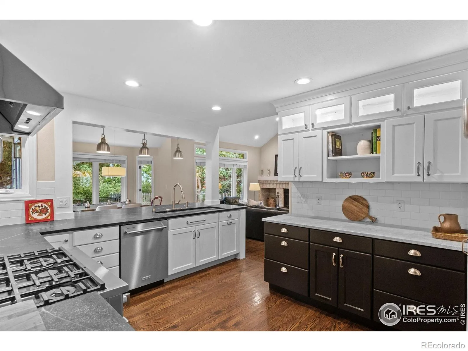 Tucked away in a quiet cul-de-sac in the heart of Boulder, this exquisite two-story home offers low-maintenance luxury living on an oversized private lot. With more than 4,400 sq. ft. of thoughtfully designed living space, every detail feels refined and welcoming.The home includes 7 spacious bedrooms: 4 on the upper level, with a serene primary suite, a second ensuite bedroom, & two more bedrooms sharing an adjacent bath. On the main floor you’ll find a flexible bedroom/office with a full bath close by. The lower level features two additional bedrooms with wonderful natural light, plus a full bathroom. The open-concept main floor family room is anchored by french doors, vaulted ceilings & a rare-for-Boulder real wood-burning fireplace. High-end finishes shine here as throughout the home, with exceptional craftsmanship, custom lighting, fresh paint, & an extended outdoor living area designed for year-round entertaining. The formal dining room & the perennial sunlit living room are both gracious in scale, offering refined settings for elegant entertaining as well as serene everyday living. The kitchen is designed for both everyday cooking & elevated gatherings, featuring a new professional gas range, oversized farm sink, counter-height seating at the soapstone island, & a cozy banquette for casual meals or conversation. The upstairs private primary suite, accessed by grand double doors, is a true retreat with an oversized walk-in closet, dual vanities, a freestanding stone resin soaking tub, & a frameless glass shower. Additional highlights a complete kitchen in the bright daylight basement, ideal for an au pair or multi-generational living; an organized mudroom; & a spacious three-car garage with custom built-ins. Perfect for working from home or simply spreading out, this home balances comfort & flexibility. Furnishings are negotiable. Adjacent to Boulder’s bike/walk trails, easy access to hiking, local playgrounds, shops, & restaurants. A rare Boulder property.
