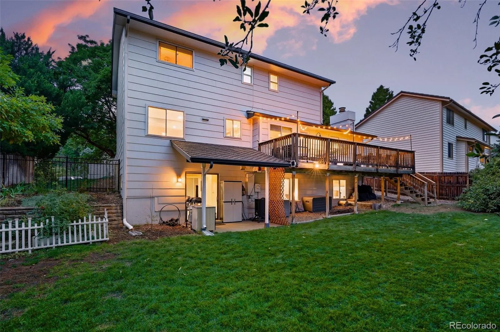 Get ready to fall in love with this captivating open concept single-family haven nestled in the heart of the coveted Cherry Creek Vista neighborhood! Situated on sprawling 8,712-square-foot lot, boasting 4 bedrooms and 3 bathrooms – a perfect retreat for those craving a slice of suburban bliss, just minutes from the bustling Denver Tech Center (DTC) and top-notch Cherry Creek School District schools. Step inside and be wowed by a bright, open-concept layout that radiates warmth! The show stopping recently remodeled designer kitchen features sleek quartz countertops, top-tier stainless steel appliances, and a generous island with stylish bar seating – your new hub for epic gatherings. Flooded with natural light from large windows, the space flows into a cozy living room anchored by a stunning stone fireplace, perfect for cozy nights in. The primary suite is your personal sanctuary with an en-suite bathroom and walk-in closet, while three additional bedrooms offer endless possibilities for guests, a home office, or your creative haven. Outside, prepare to be enchanted! The expansive backyard is a lush paradise with mature trees, a charming covered patio, and a deck twinkling with string lights – ideal for unforgettable al fresco dinners or serene evenings. A 2-car attached garage adds practicality, and the low-maintenance exterior keeps your curb appeal on point. Just a few short blocks to Cottonwood Elementary, close to Cherry Creek State Park and easy access to to all Colorado has to offer.