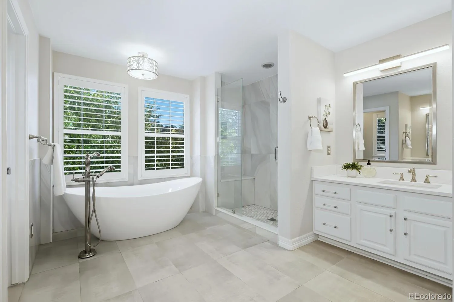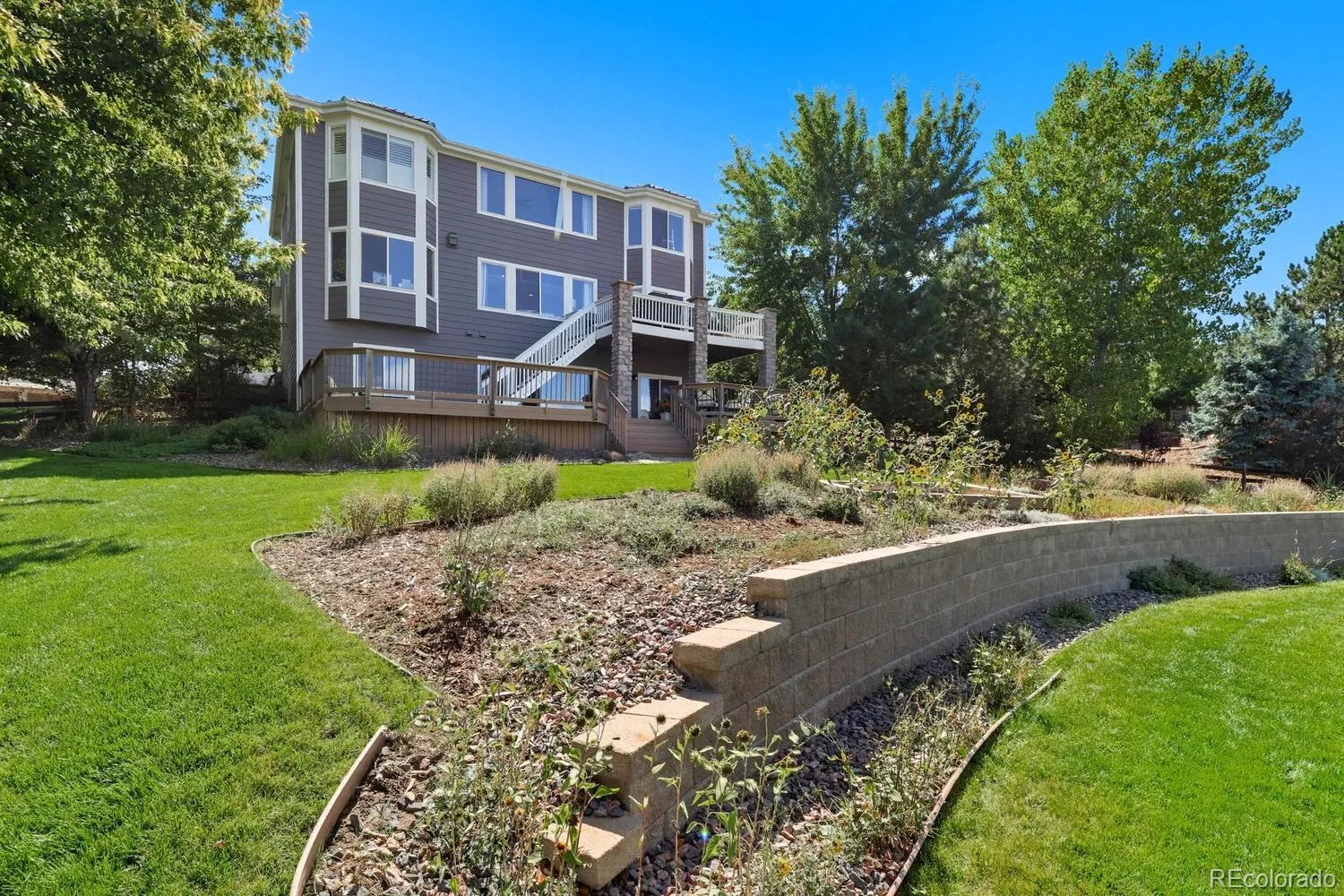 Luxury Living with Panoramic Mountain Views! Stunning 5 Bedroom, 4 Bathroom home spanning 4,645 SF, perfectly positioned on a serene .56-acre park-like lot with lush landscaping, mature trees and breathtaking open space and mountain views! A freshly painted interior (September 2025) and newer exterior paint provide a move-in ready appeal, while the unfinished walk-out basement offers endless possibilities for customization. An inviting front porch welcomes you into the formal Living/Dining Room ideal for hosting family gatherings. A spacious family room with soaring ceilings, a wall of windows framing panoramic views and cozy fireplace seamlessly flows into the gourmet Kitchen. Designed for both function and style, the Kitchen boasts granite counters, tile backsplash, stainless appliances – gas cooktop/double oven, island, breakfast bar seating, walk-in pantry and a sunny eating area. A versatile Bedroom with adjacent 3/4 Bathroom, perfect for guests or a private Study/Home Office, plus a Laundry Room and 3-Car Attached Garage completes the main level. Upstairs, discover three generously sized secondary Bedrooms with access to a Full Bathroom – including one with an en-suite 3/4 bath. The Primary Suite boasts peaceful mountain views, space for a sitting area, dual walk-in closets and an updated Spa Bathroom with free-standing soaking tub, dual quartz vanities, custom frameless glass shower and designer tile, finishes and fixtures. Step outside to enjoy the tranquil deck and patio spaces surrounded by manicured landscaping—an ideal setting for outdoor entertaining, casual living or quiet relaxation. Convenient access to Downtown Castle Rock, outlet shopping, dining, parks, playgrounds, area schools and major routes including I-25 and Santa Fe Drive. Combining one-of-a-kind panoramic mountain views, a thoughtful layout designed for comfortable family living and an unbeatable Castle Rock location, this home truly has it all!