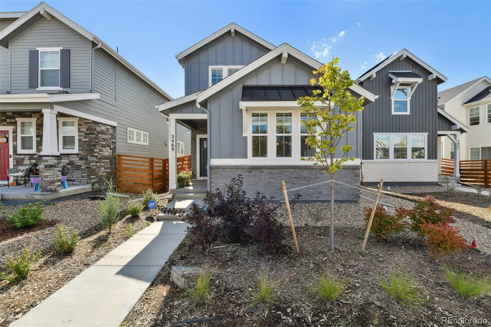 Welcome to this stunning 2024-built home in the desirable Aurora Highlands! This modern 3-bedroom, 2.5-bath residence offers an open, bright floor plan with plenty of space for comfortable living and entertaining. The main floor features a spacious living room that flows seamlessly into the dining area and contemporary kitchen, complete with a large island, stainless steel appliances, and a view of the patio—perfect for indoor-outdoor living. Down the hall, you’ll find a sun-filled office with double-door entry and a convenient half bathroom. Upstairs, enjoy a versatile loft area ideal for a hangout or study space, along with a thoughtfully designed layout featuring a spacious primary suite with walk-in closet and ensuite bathroom with dual sinks and walk-in shower. Two additional bedrooms and a full bathroom are positioned separately for privacy and convenience. The unfinished basement offers plenty of room to customize to your lifestyle. Additional highlights include an attached 2-car garage and location in a master-planned community with a park, pool, playground, and scenic trails. Commuting is a breeze with easy access to E-470 and I-70, and Denver International Airport is just 11 miles away. Modern, functional, and full of light—this home is ready to welcome its next owners!
